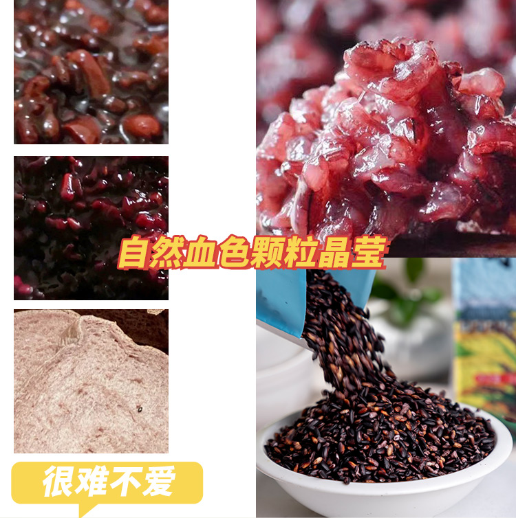 血米是未经驯化的水稻种子,外壳不用打磨,呈紫黑颜色,含有花青素,蛋白质、多种微量元素。