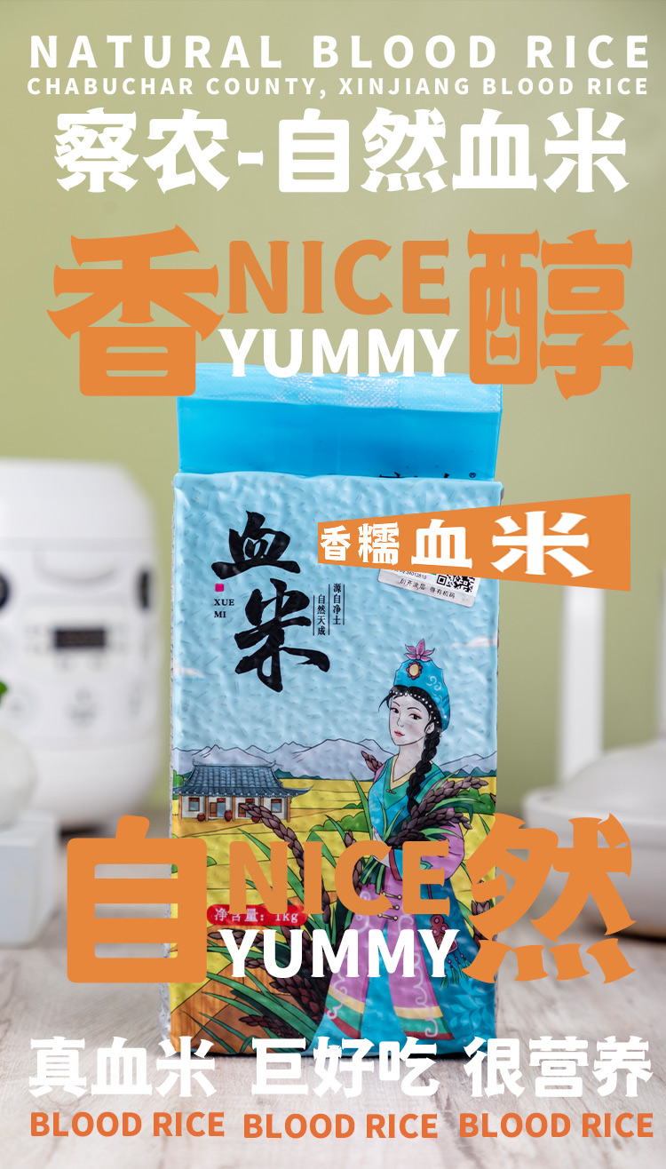 “丝路血糯米”,又称“黑贡米”。它是新疆的特产,血米是一种未经驯化的水稻。种子外壳不用打磨,呈紫黑颜色,含有花青素,蛋白质、多种微量元素,是一种难得的高营养附加值食物。