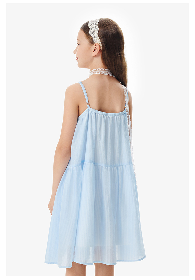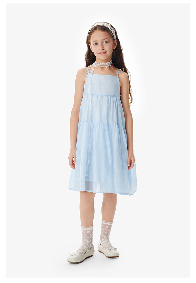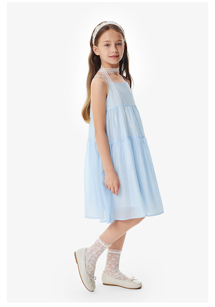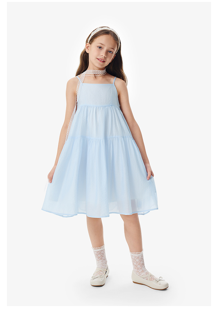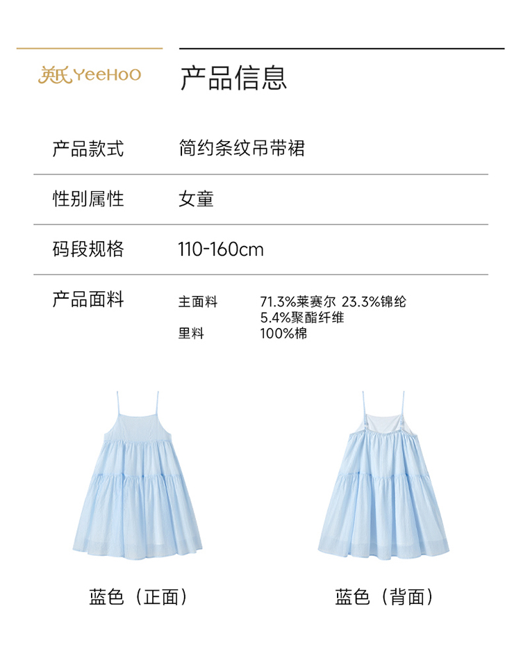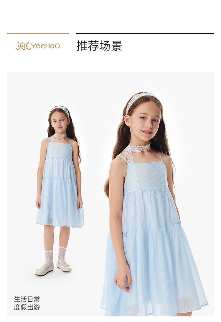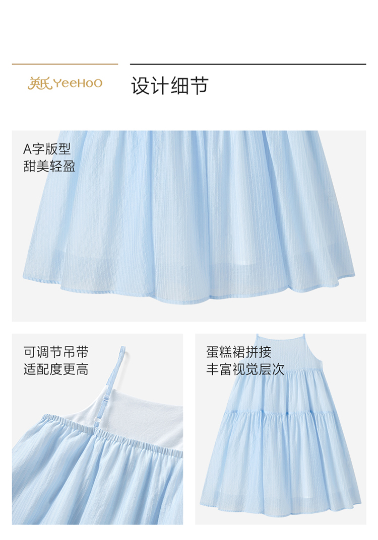 【莱赛尔】英氏儿童裙子女童透气连衣裙夏季吊带方领休闲简约连衣裙