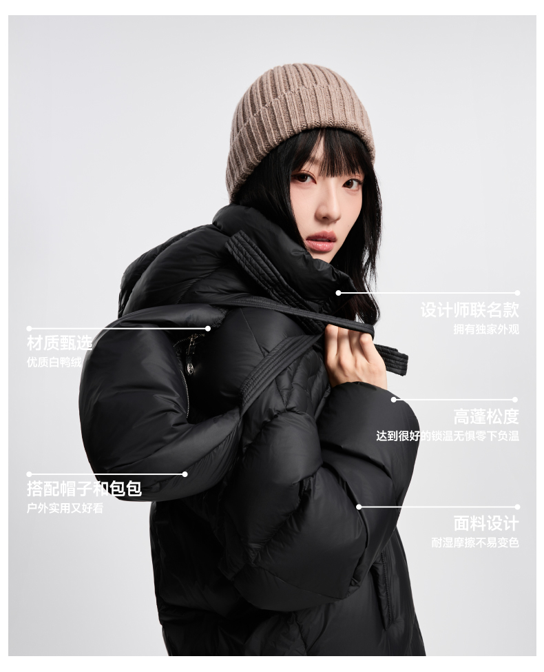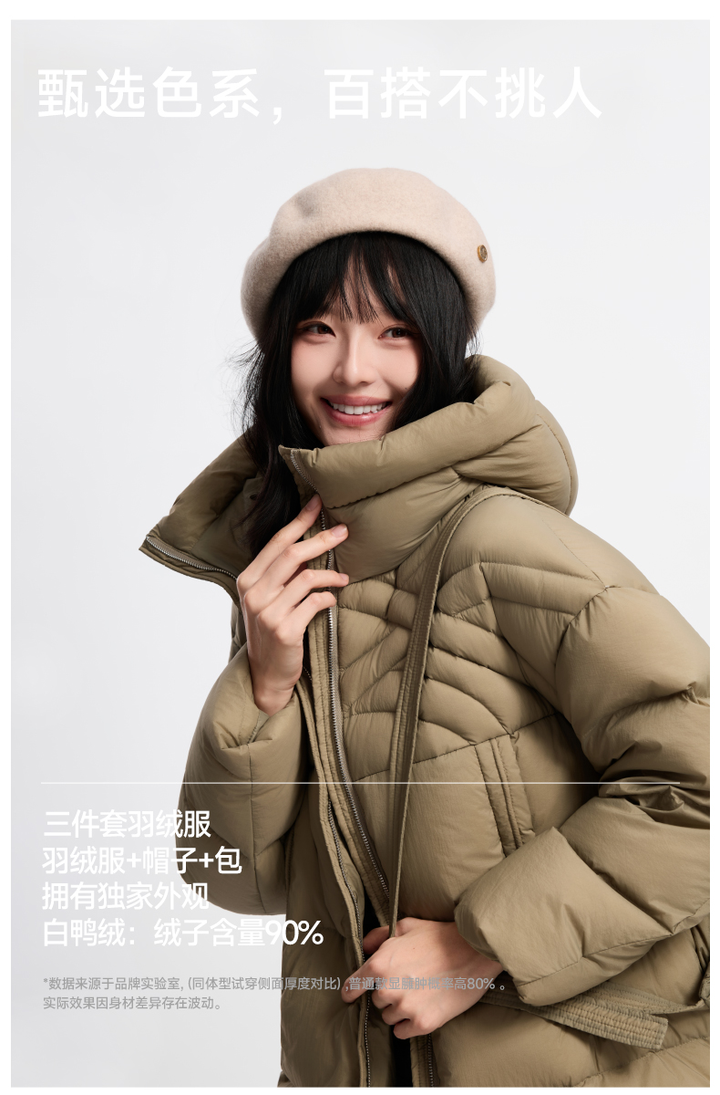 罗宾汉云感泡芙三件套羽绒服女 (羽绒服+帽子+包)-R238Y7957