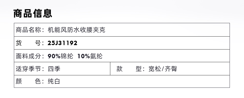 TITIKA ACTIVE机能风防水收腰夹克运动白色工装外套31192