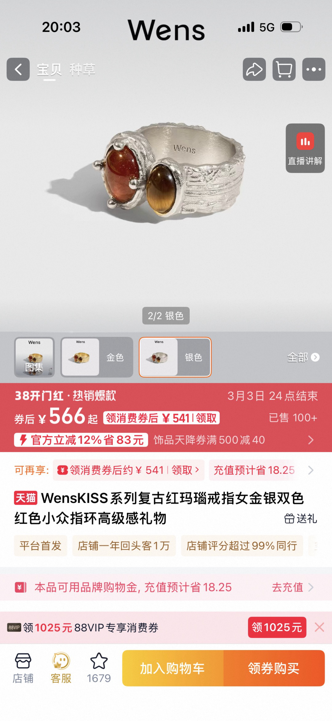 满满的高级感 镶石雕刻纹理戒指 自带天然纯粹的质感 官网正在售689软妹币 折扣完530软妹币左右