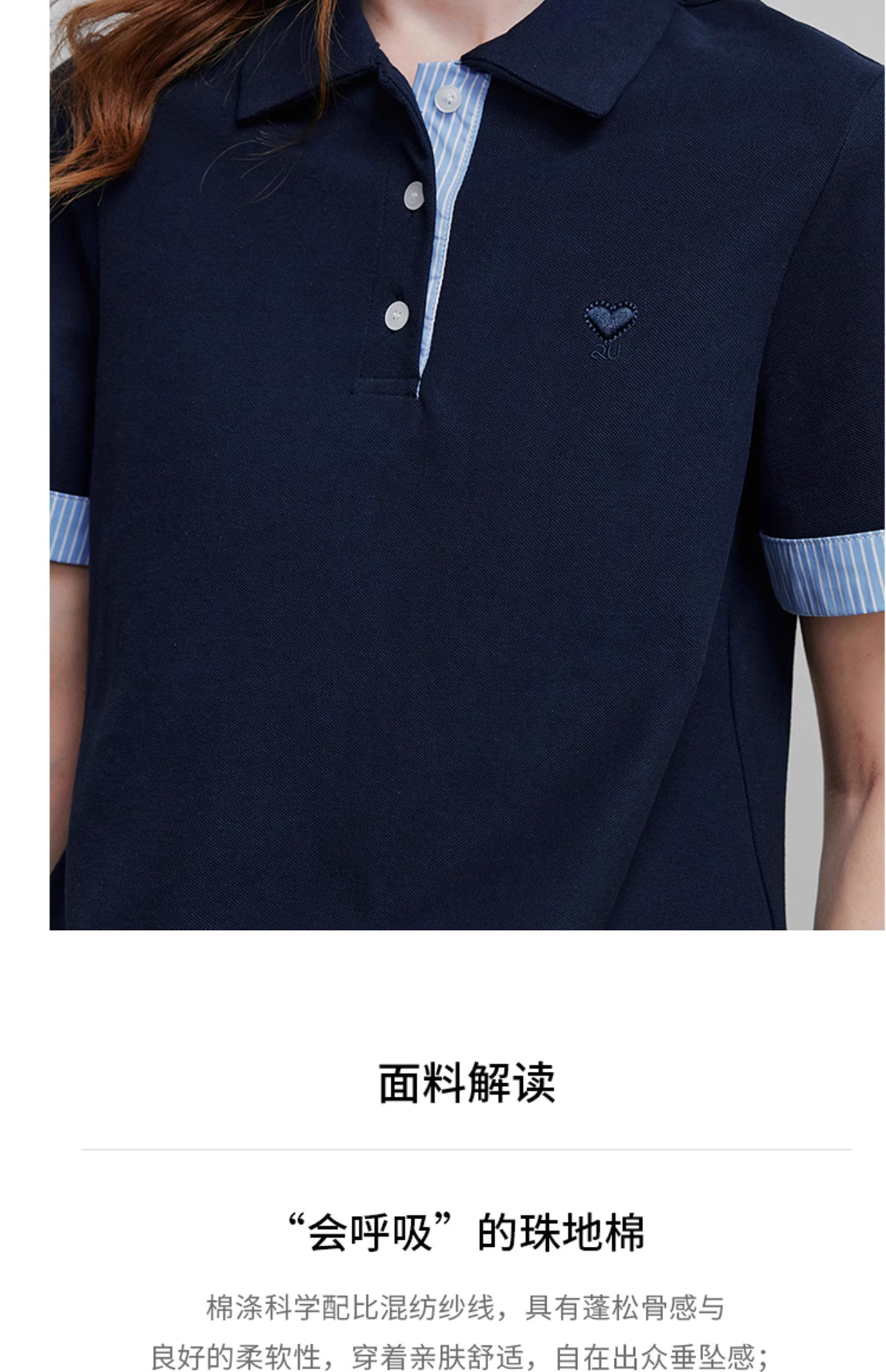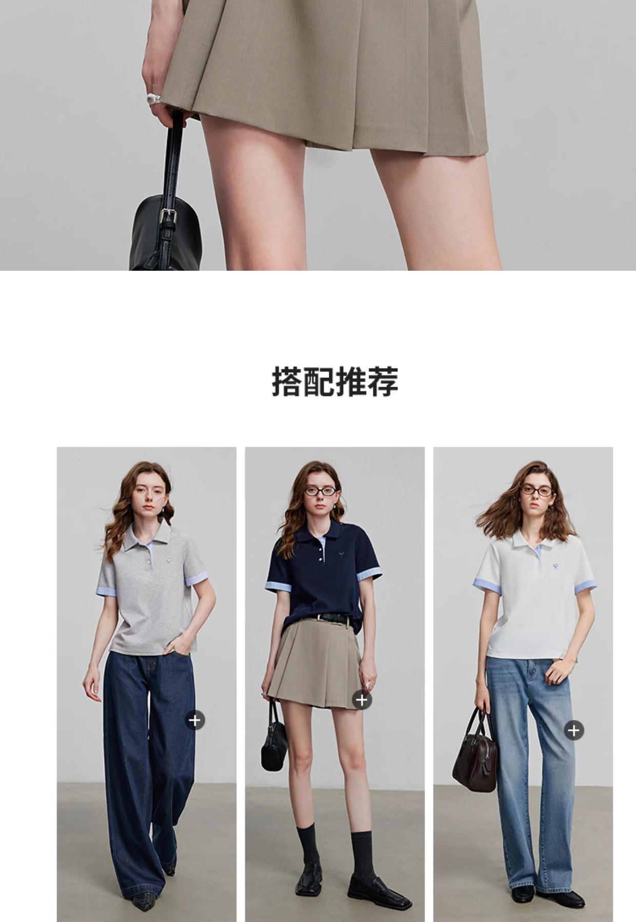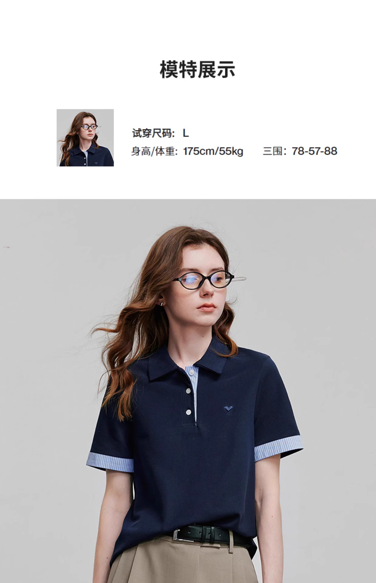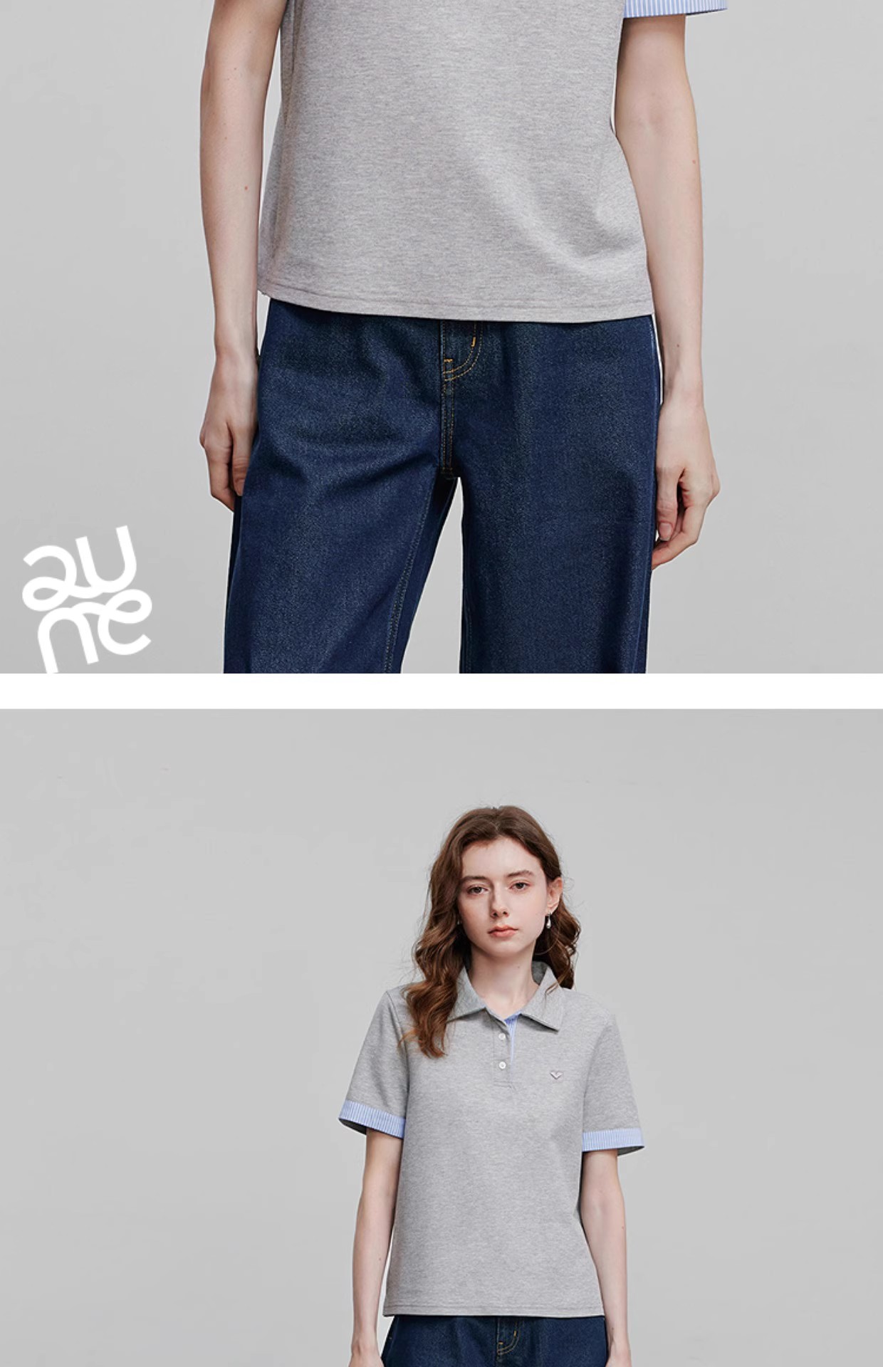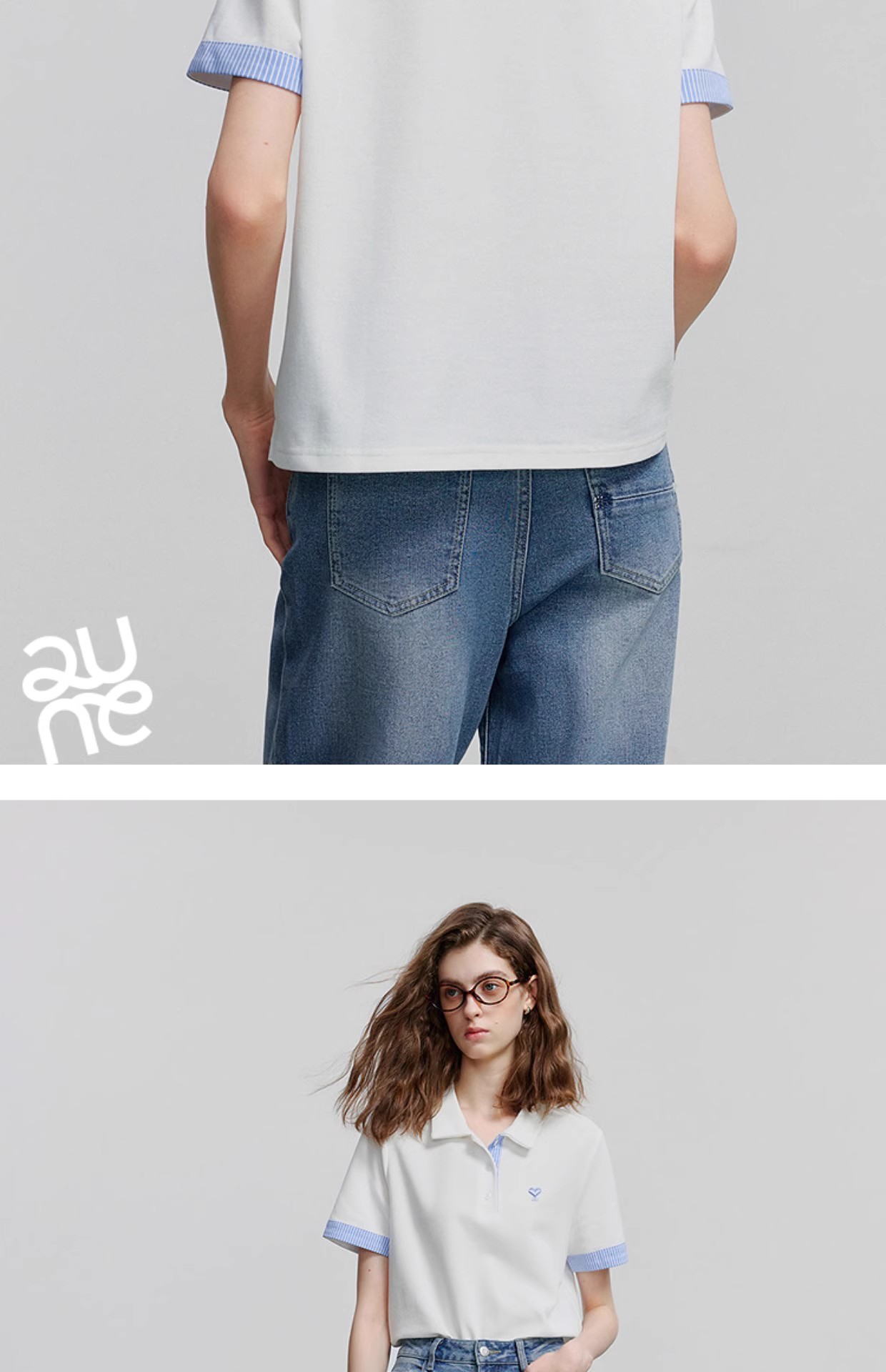 初语撞色条纹翻袖POLO衫女2025夏季新款珠地复古休闲小衫上衣