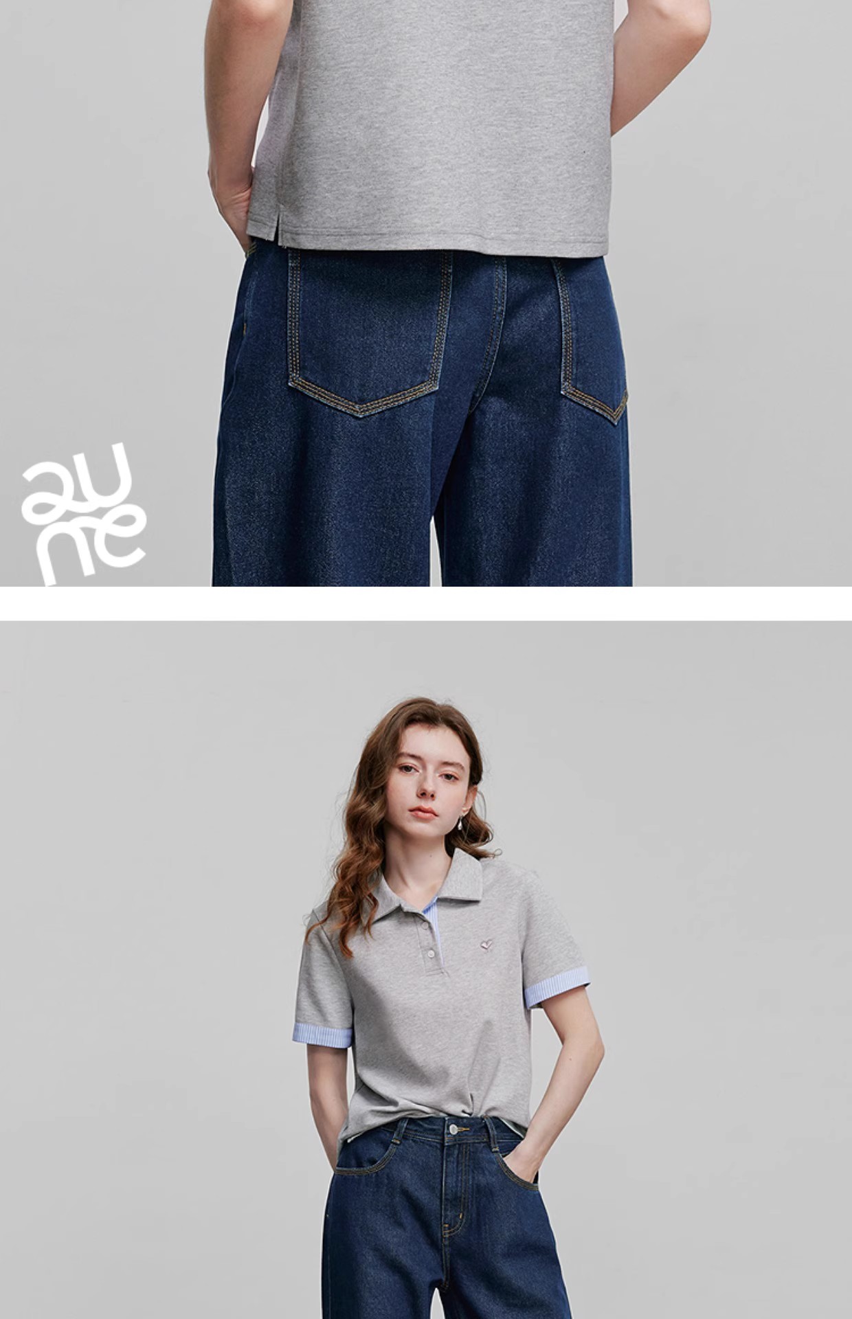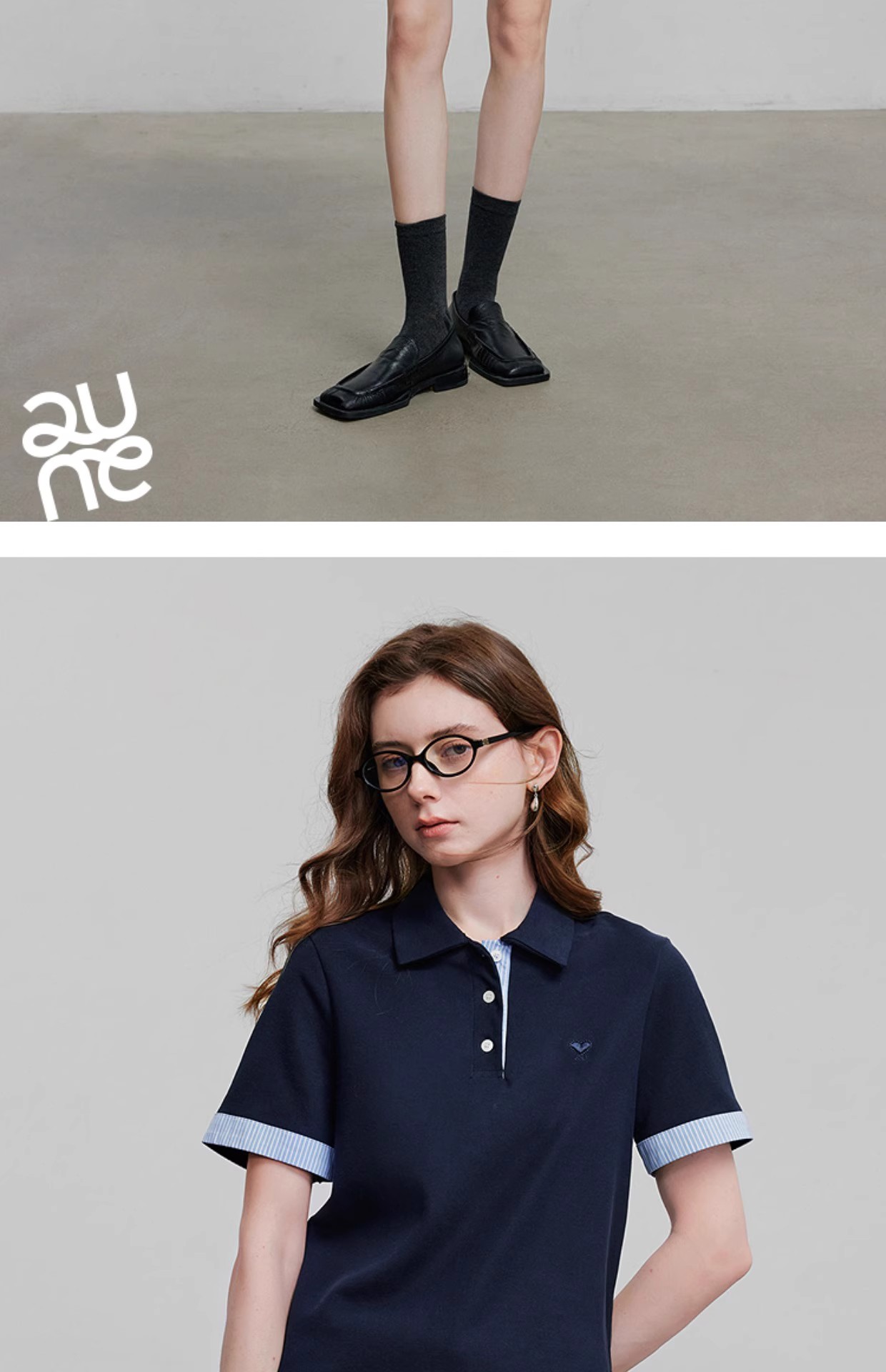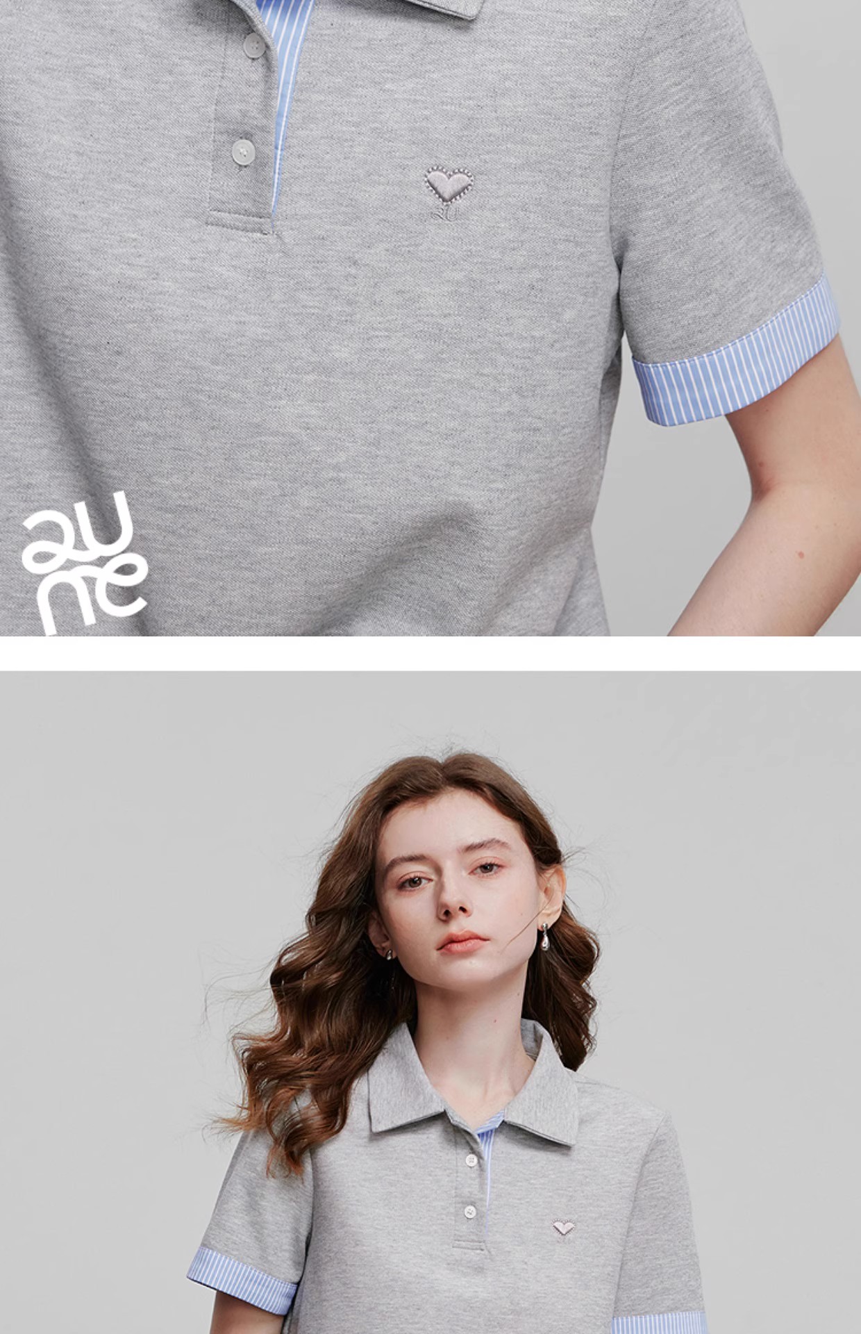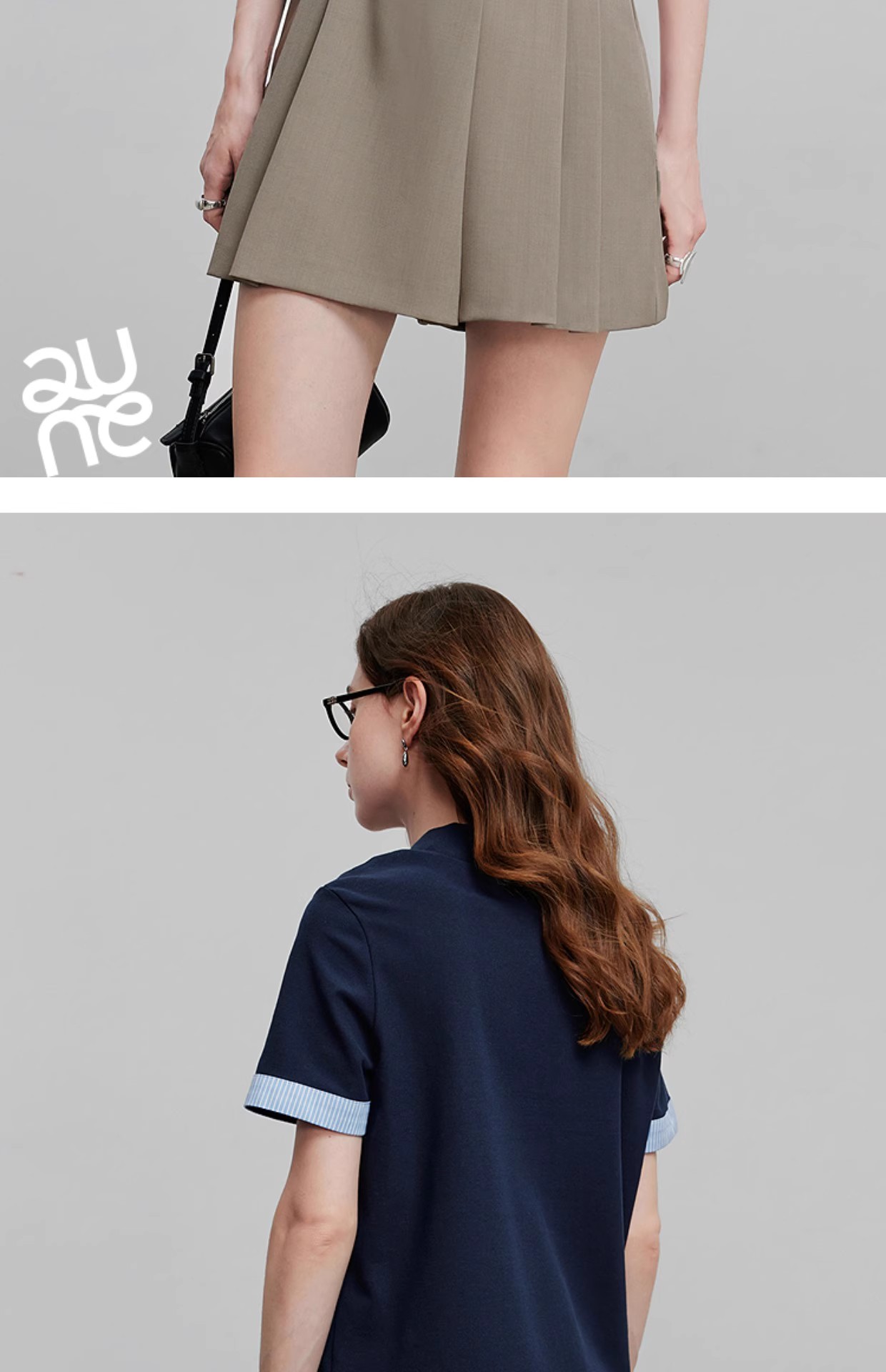 初语撞色条纹翻袖POLO衫女2025夏季新款珠地复古休闲小衫上衣