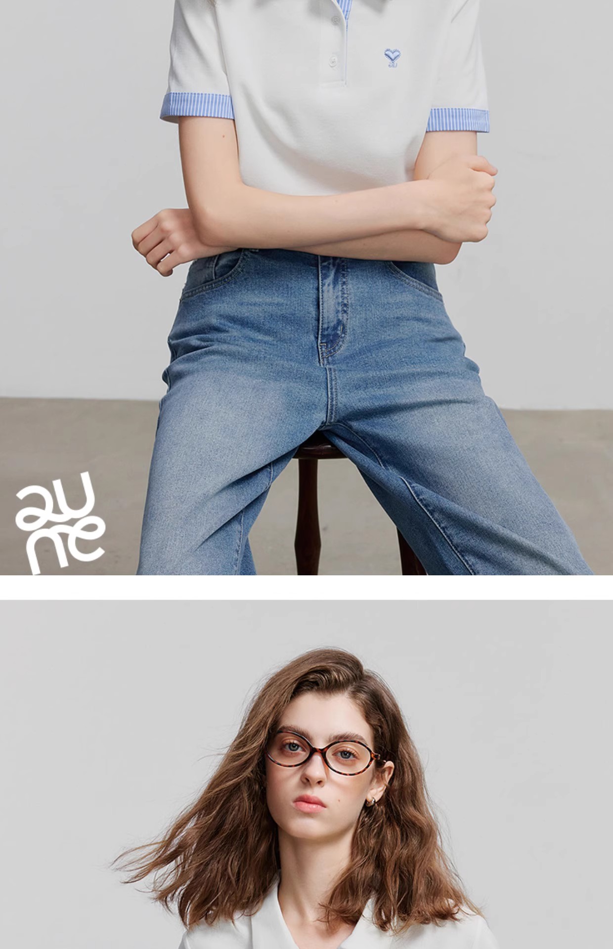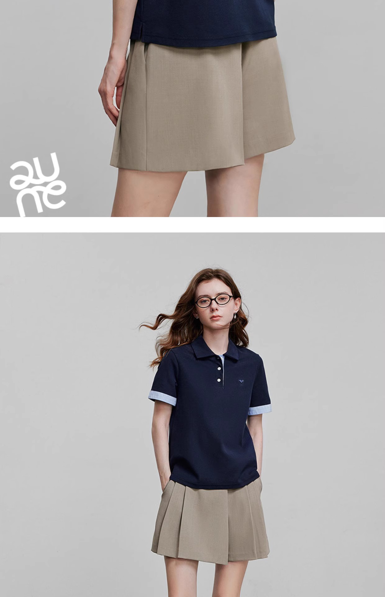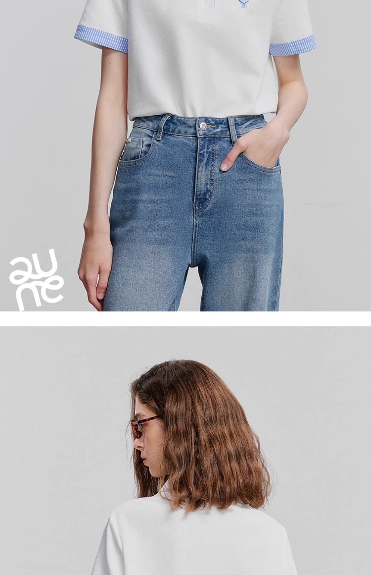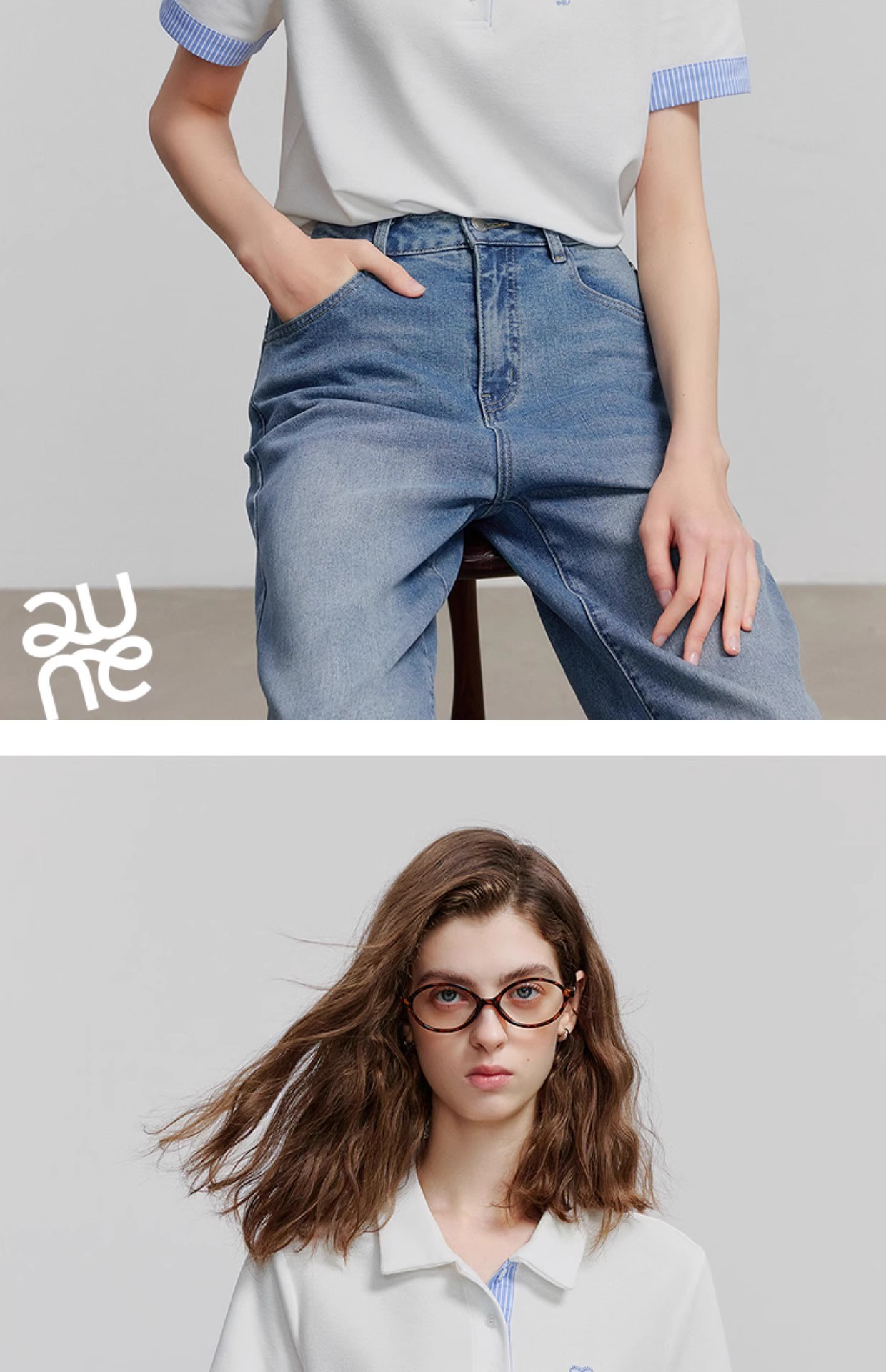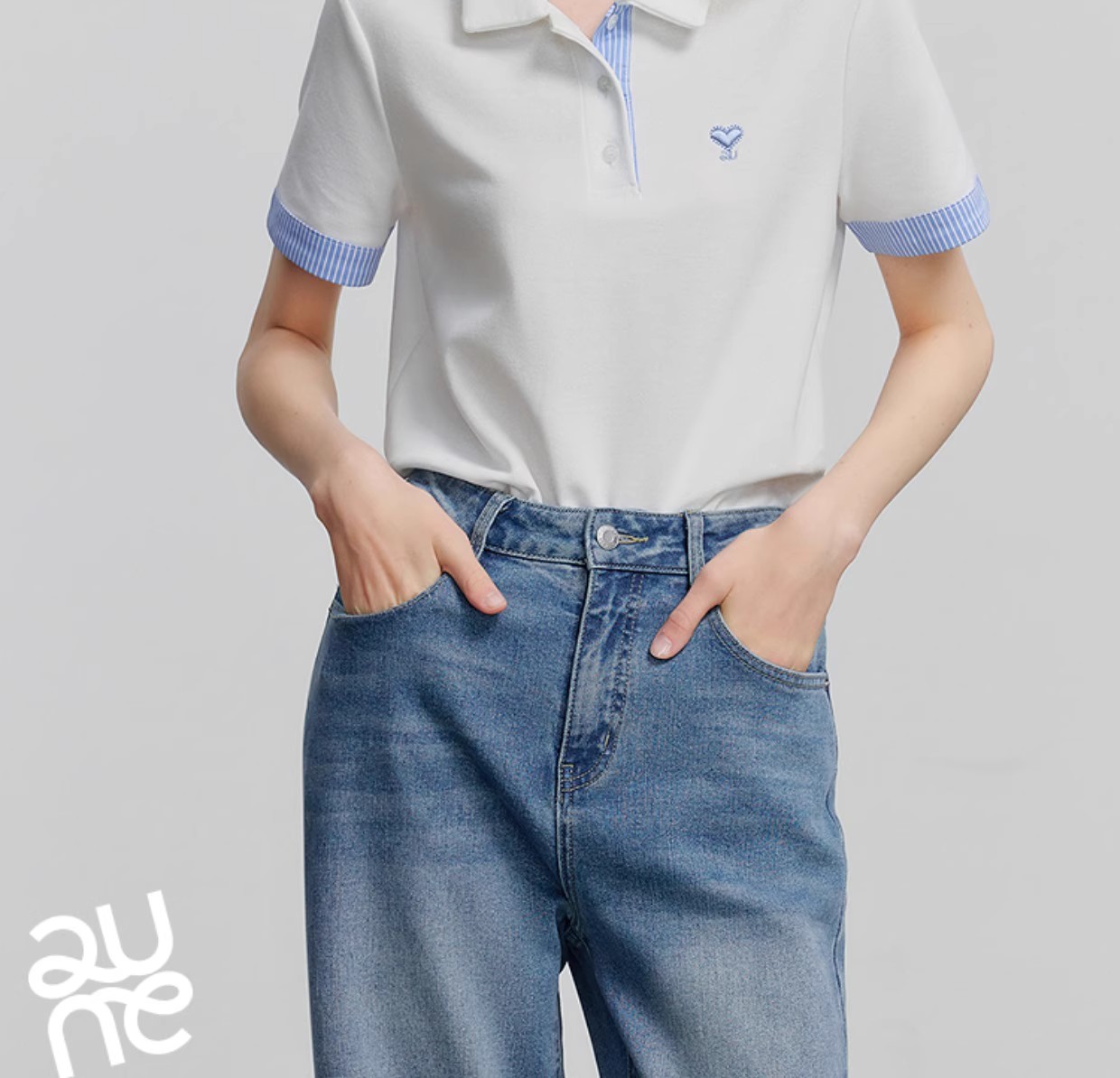 初语撞色条纹翻袖POLO衫女2025夏季新款珠地复古休闲小衫上衣