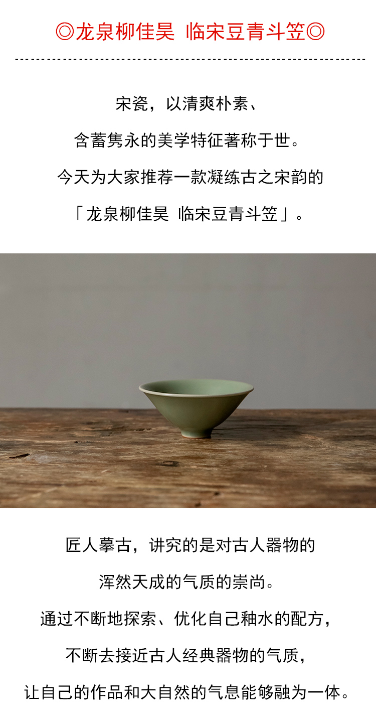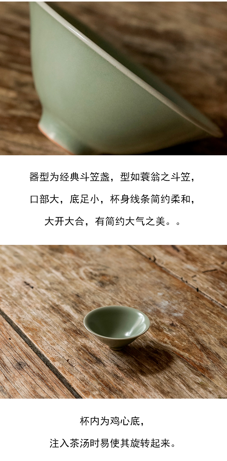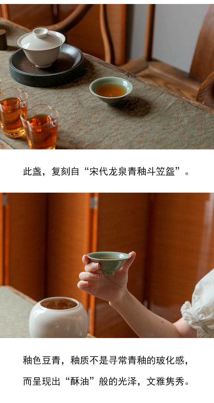 茶香记 龙泉柳佳昊 临宋豆青斗笠(小)龙泉青瓷 豆青釉 经典复刻 文雅隽秀