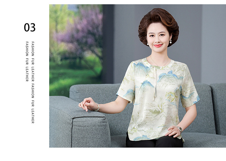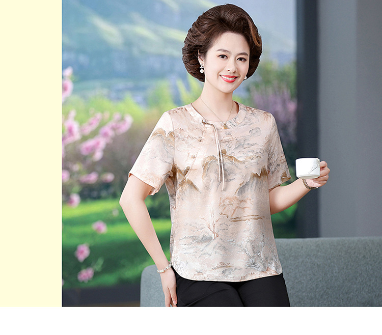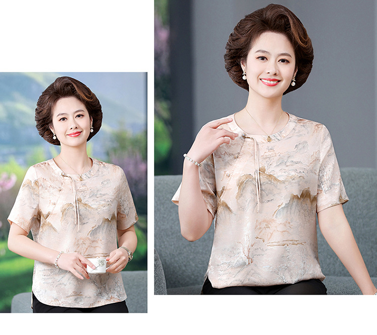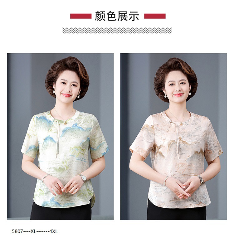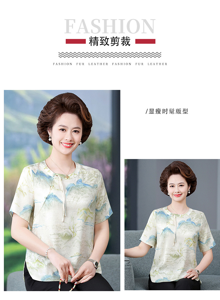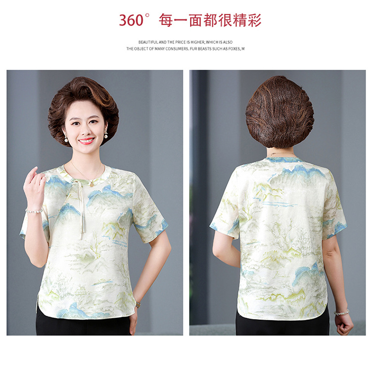 W592-5807-72-88夏装中式短袖T恤中老年小个子奶奶桑蚕丝上衣小衫女