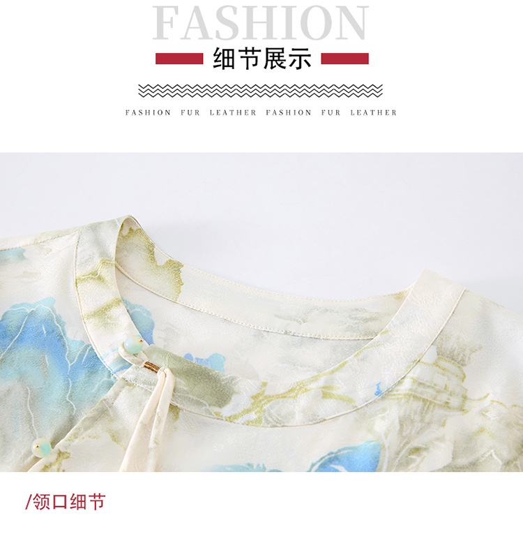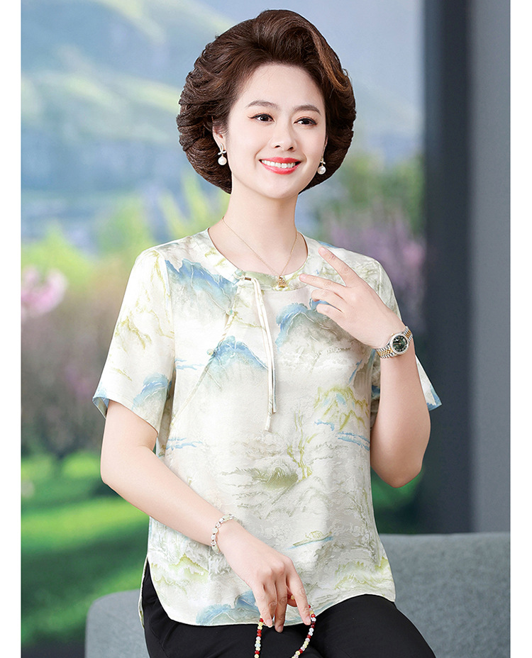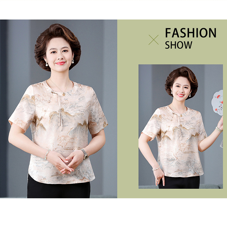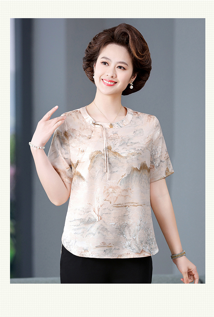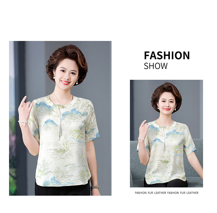 W592-5807-72-88夏装中式短袖T恤中老年小个子奶奶桑蚕丝上衣小衫女