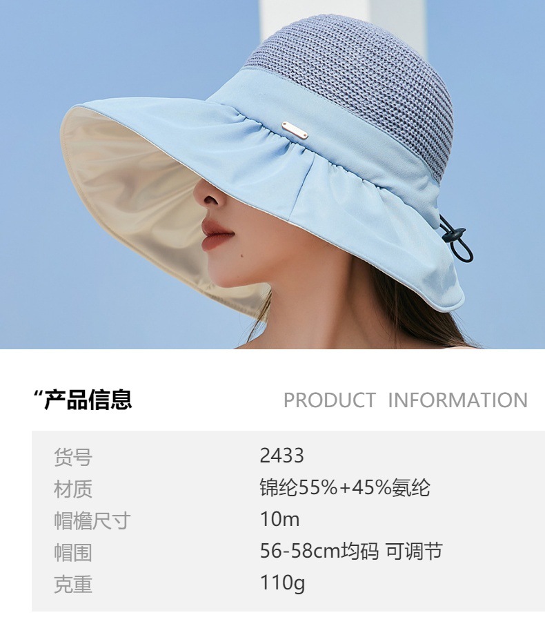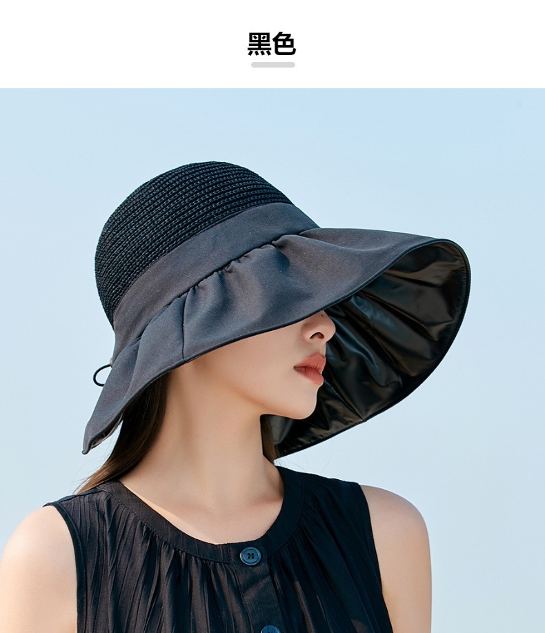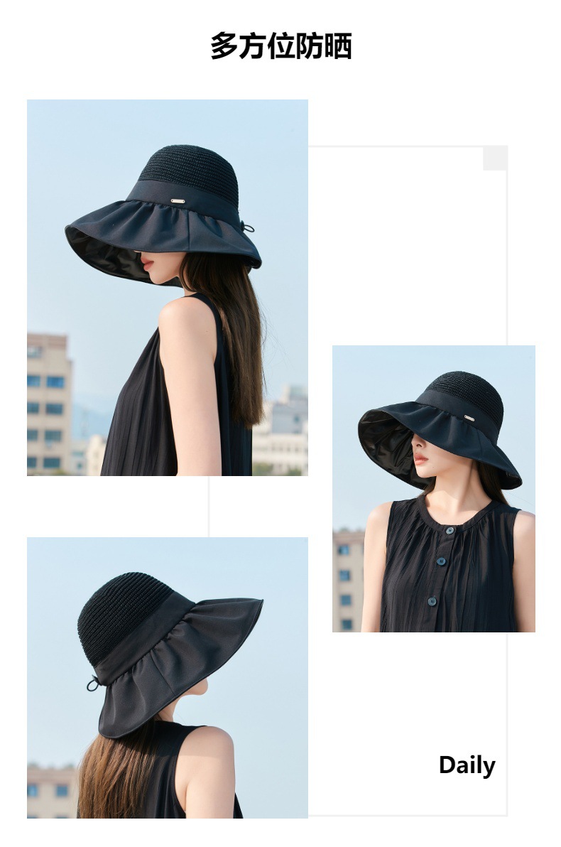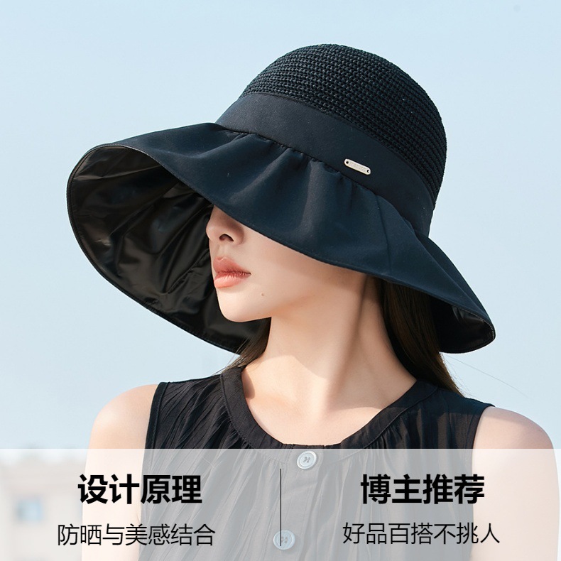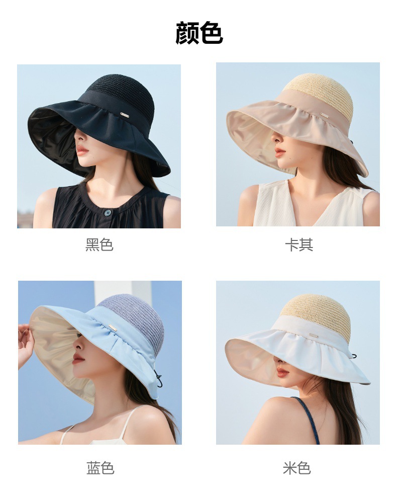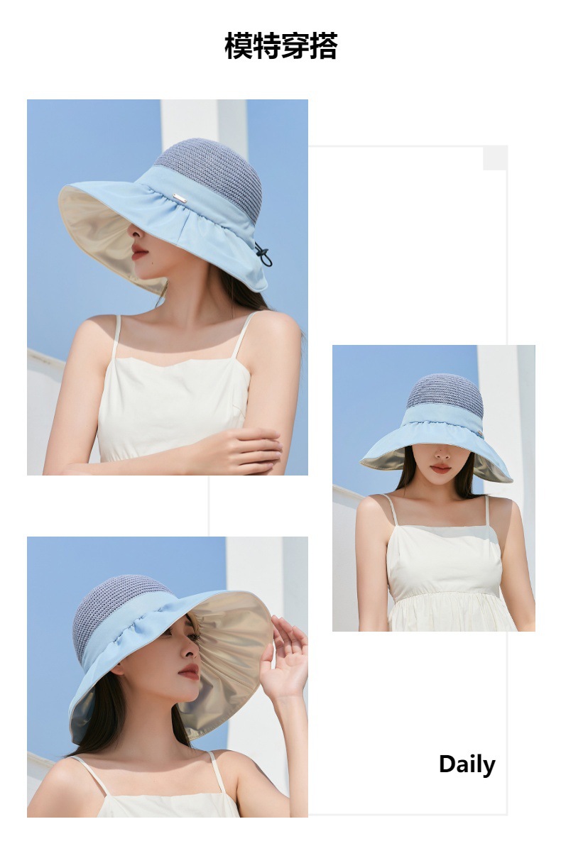 ZQ-X1-M2433新款大檐遮阳帽黑胶渔夫帽时尚拼接显脸小太阳帽