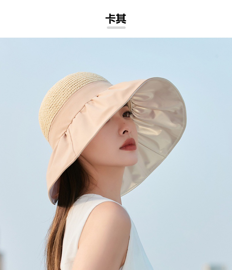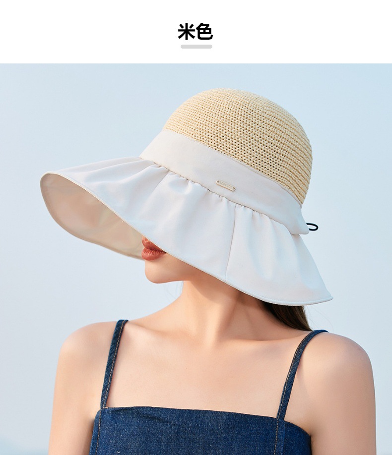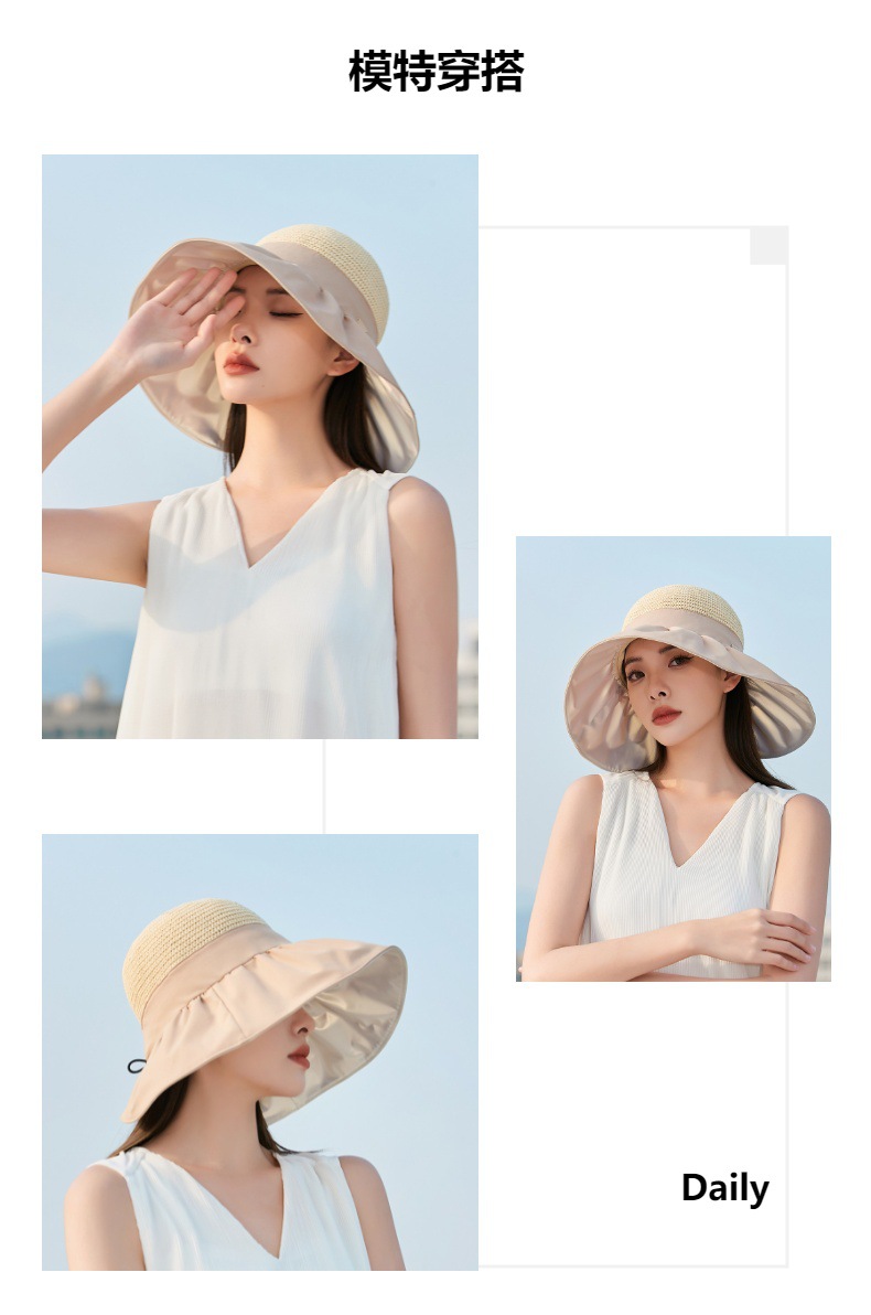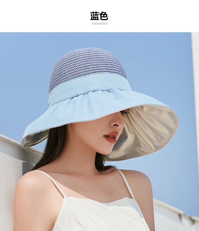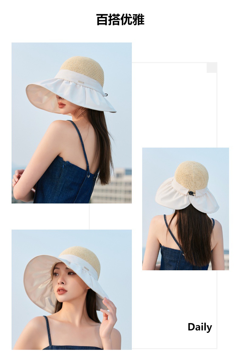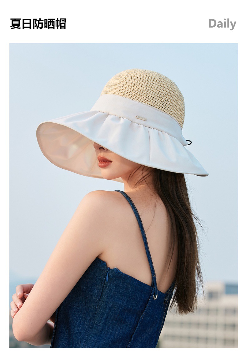 ZQ-X1-M2433新款大檐遮阳帽黑胶渔夫帽时尚拼接显脸小太阳帽