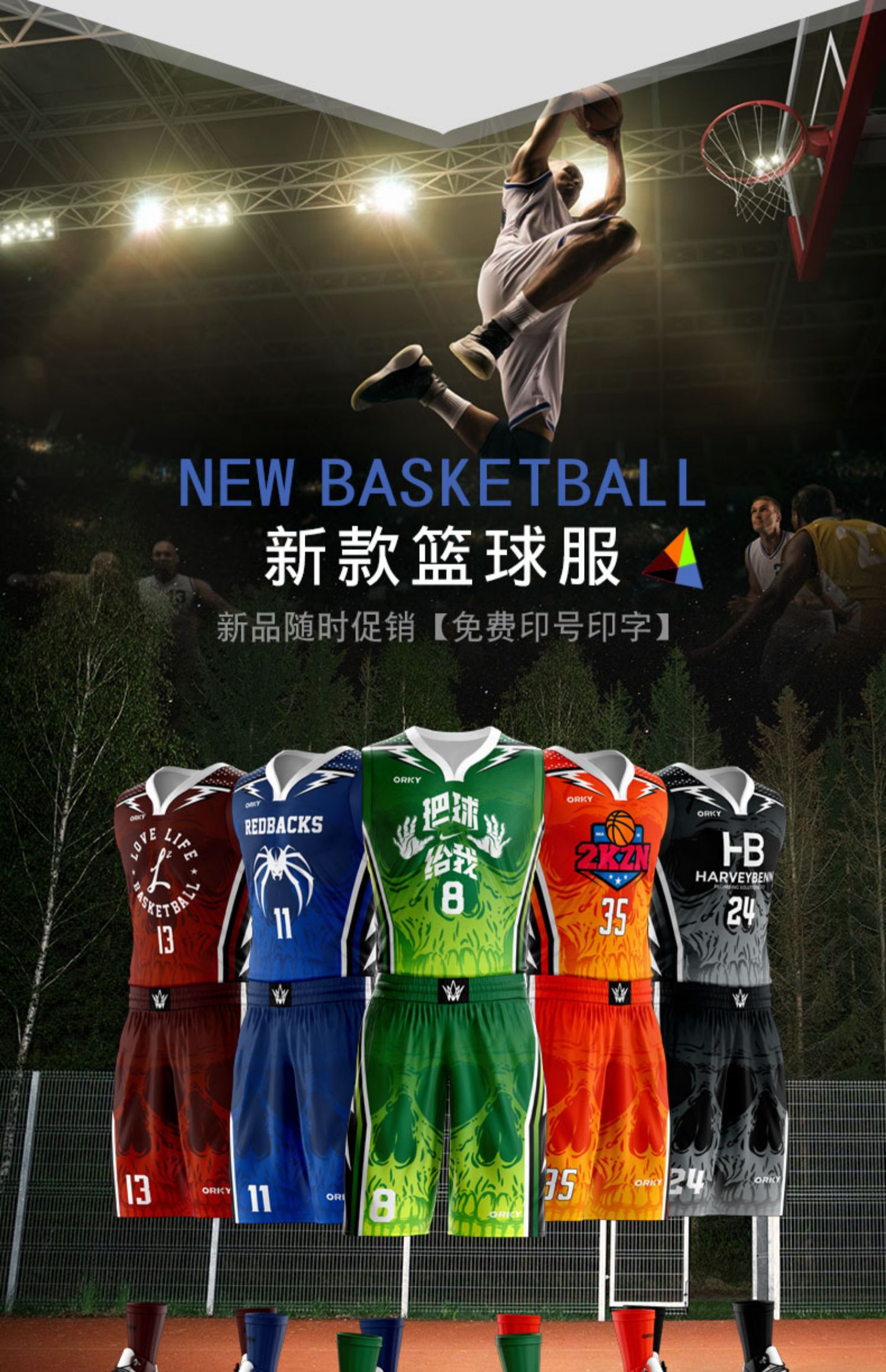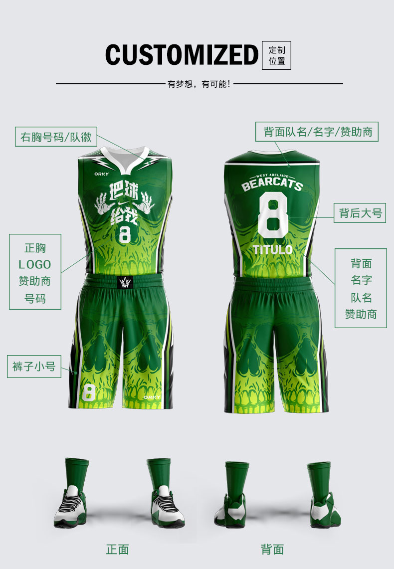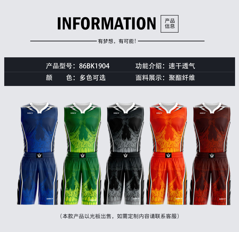 沃恺体育:篮球服套装男定制球衣学生比赛队服运动训练服86BK1904