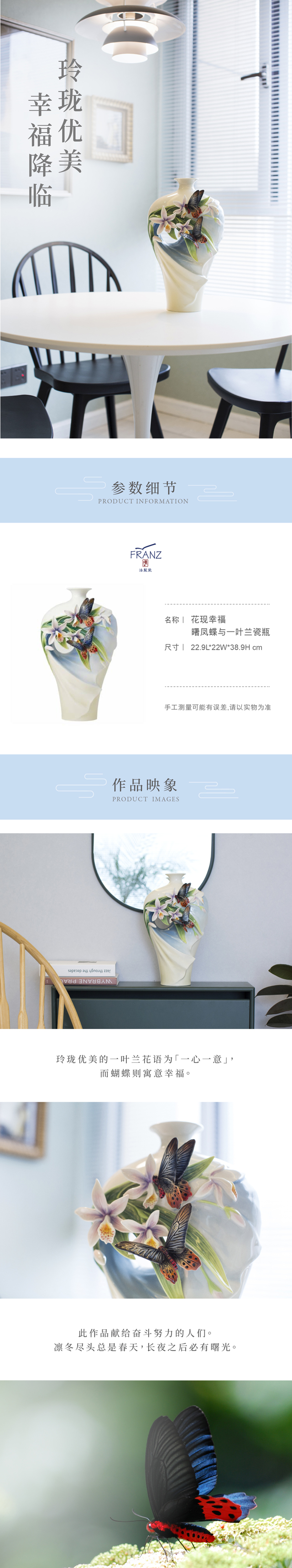 【彼达思】法蓝瓷 FZ03726花现幸福 曙凤蝶与一叶兰瓷瓶