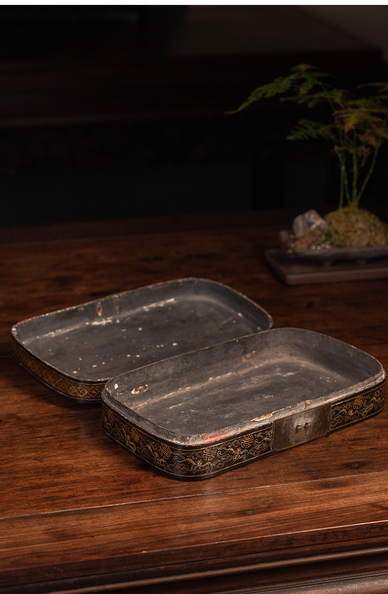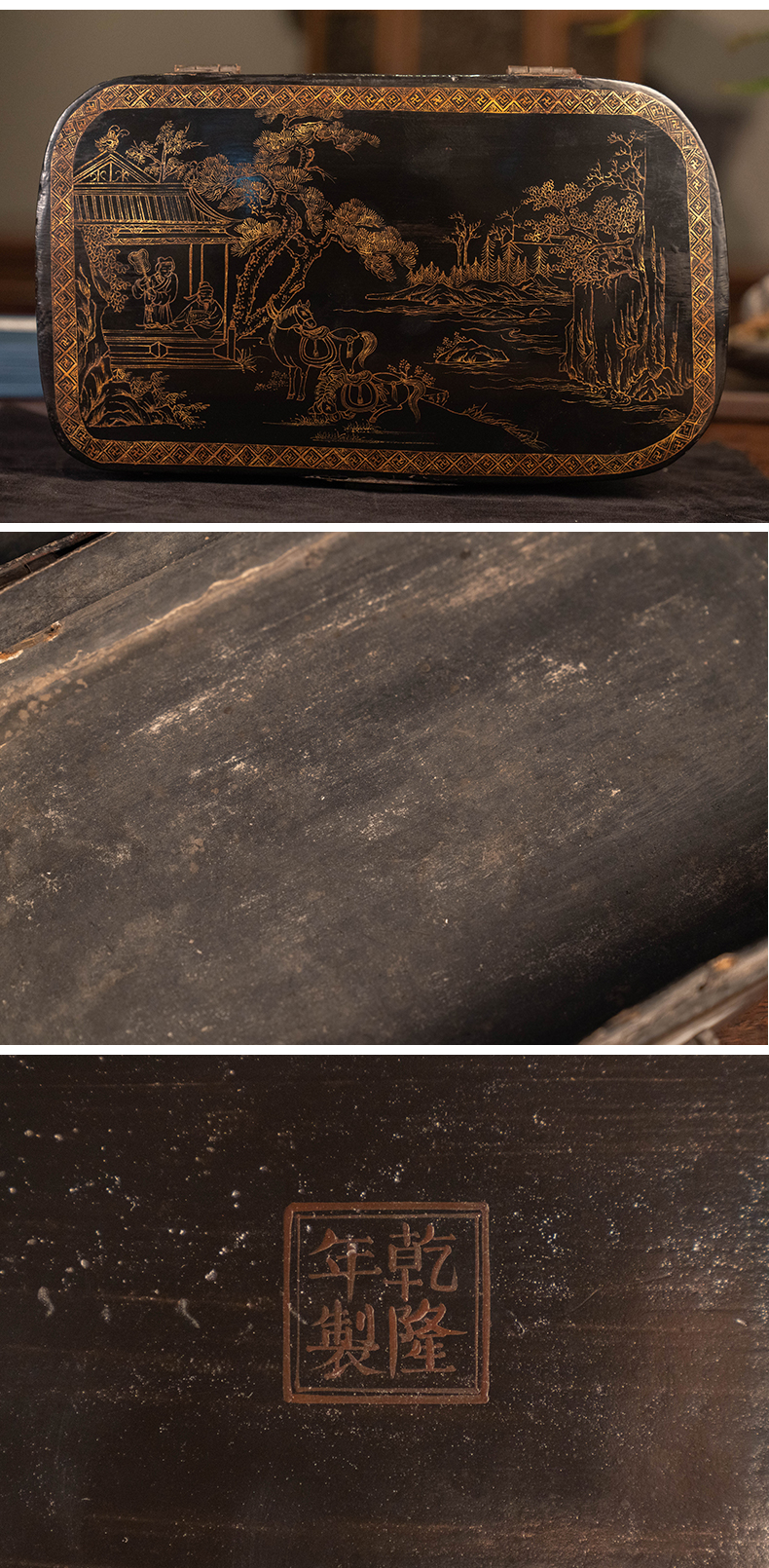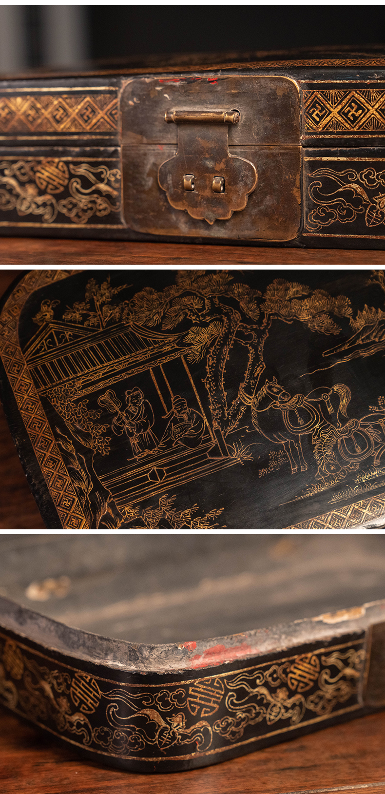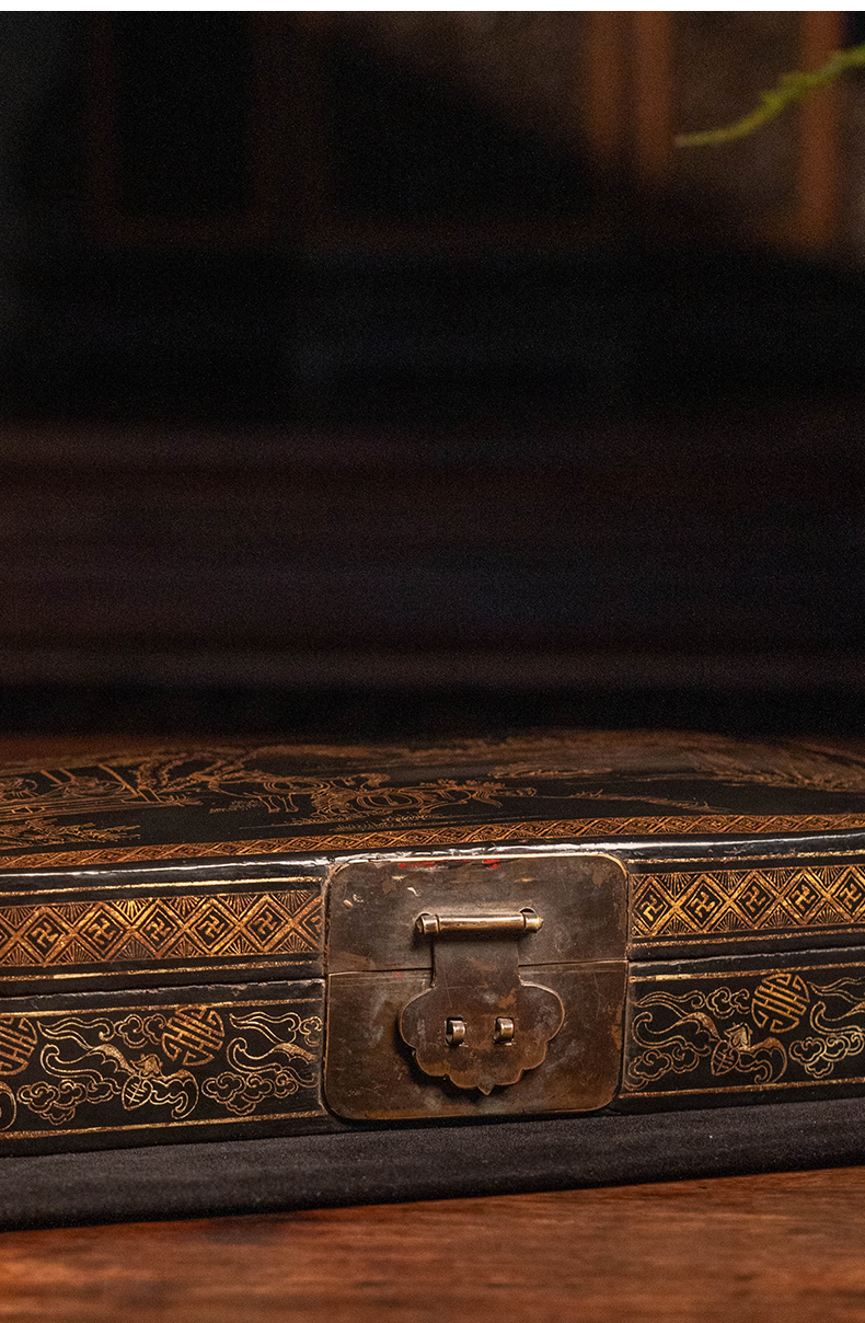 清 大漆描金饮马图文房盒