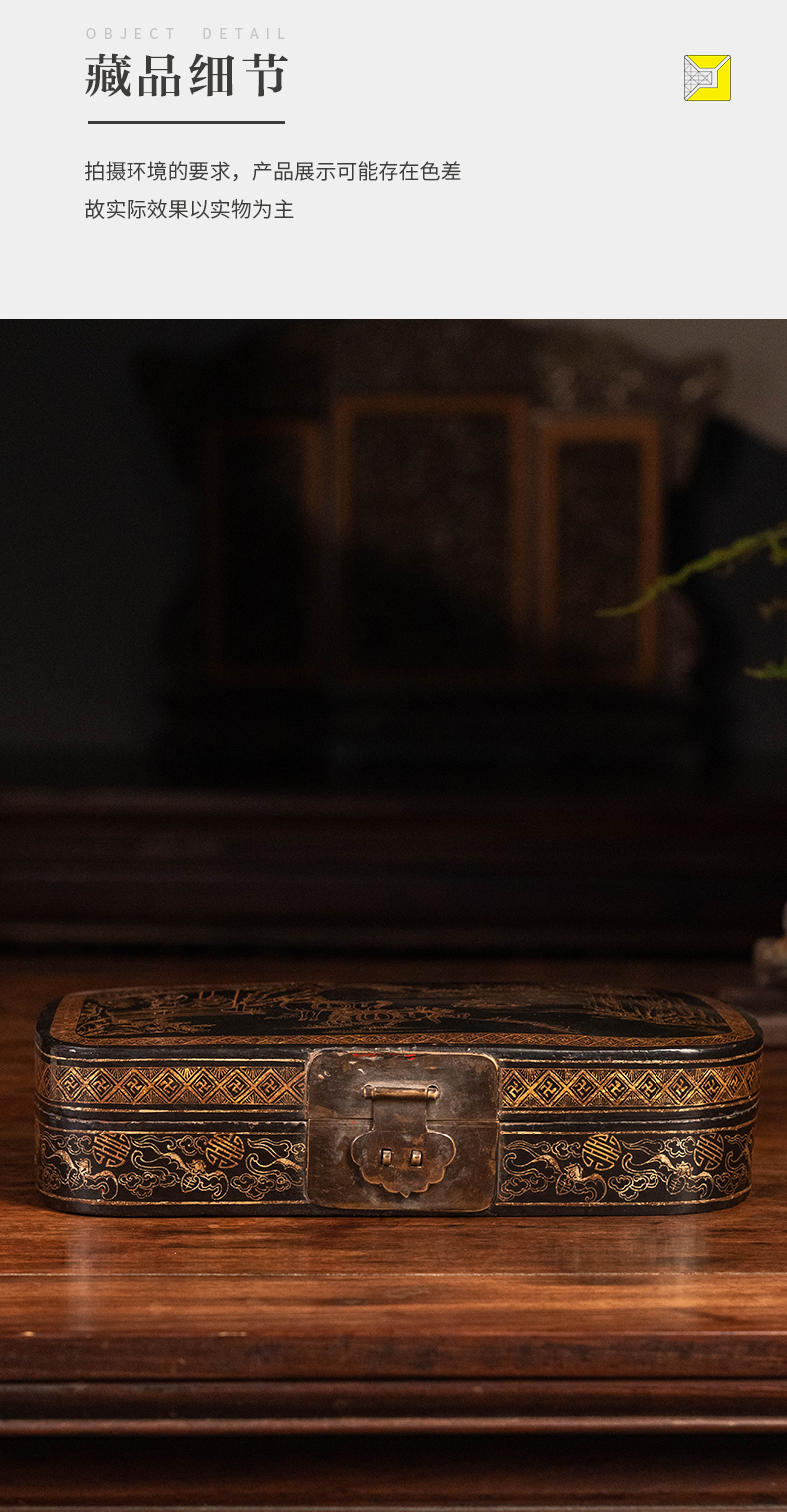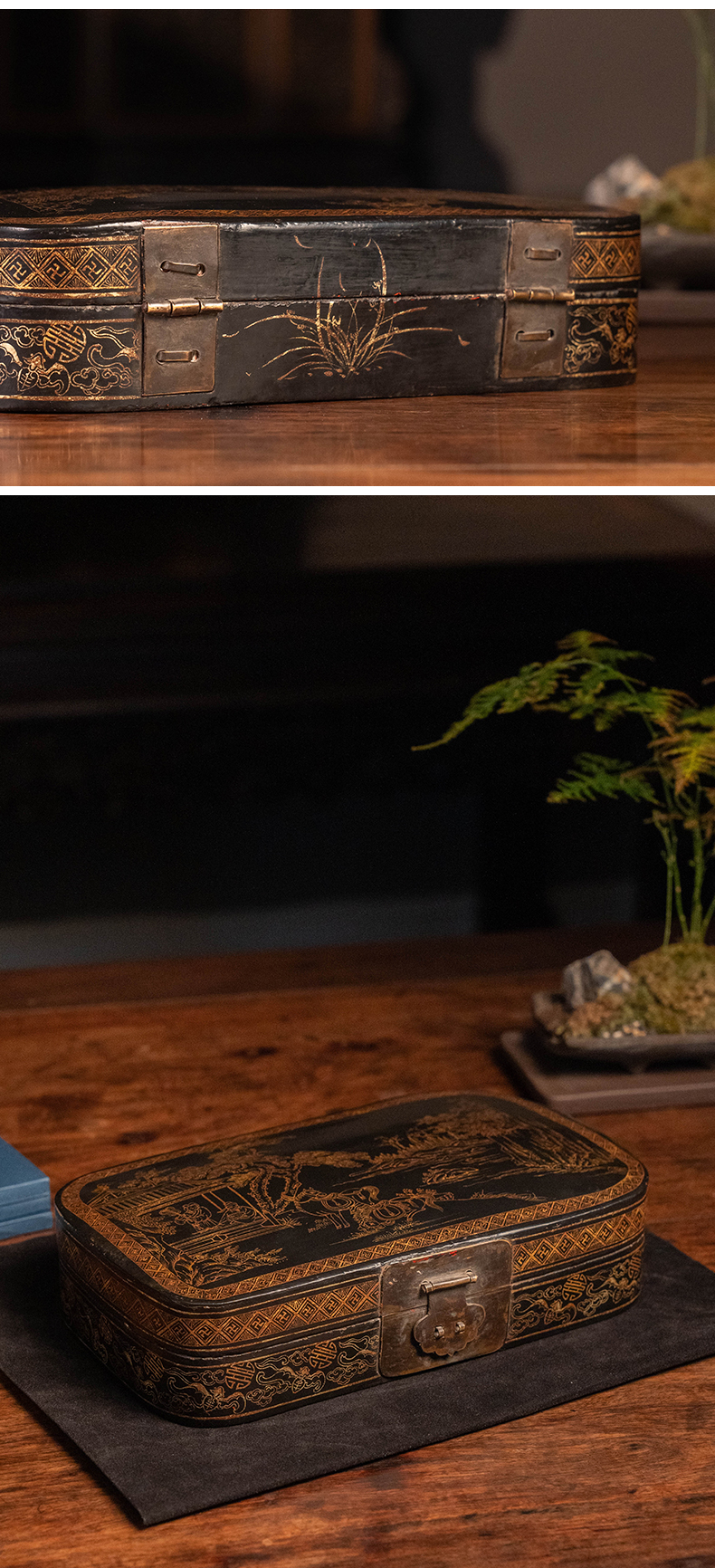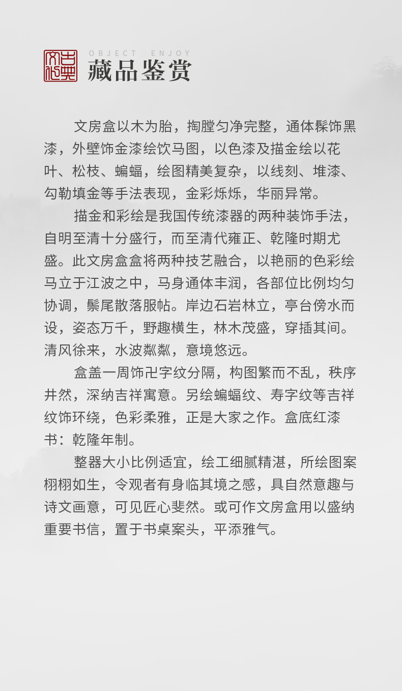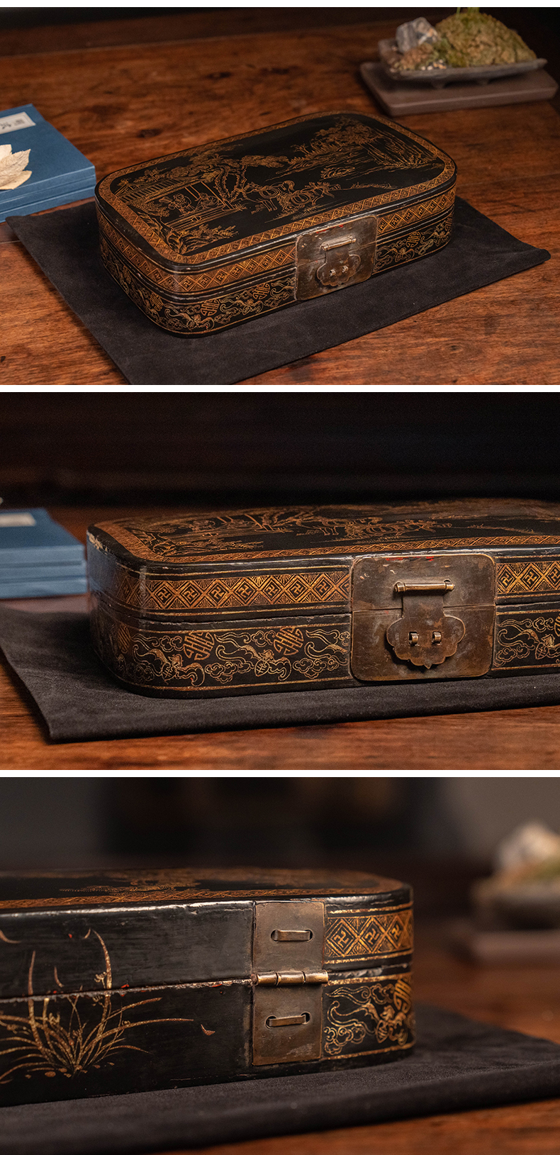 清 大漆描金饮马图文房盒