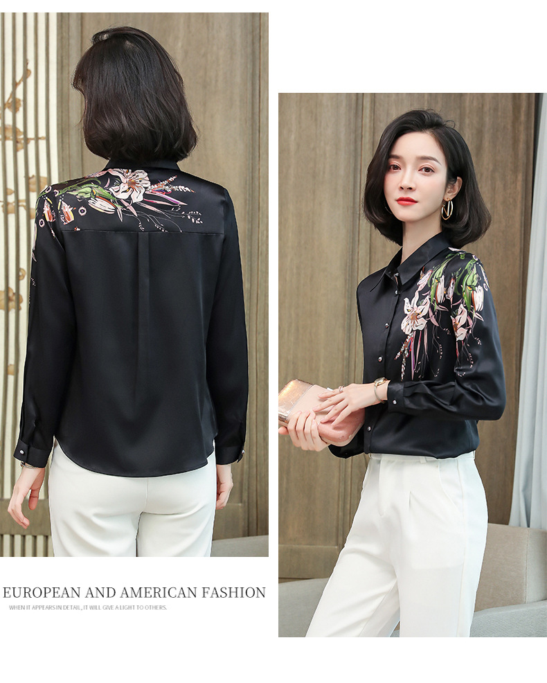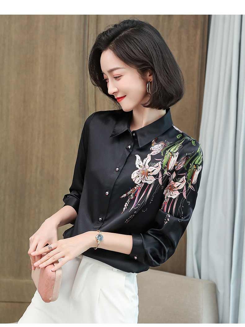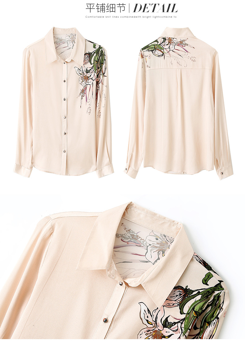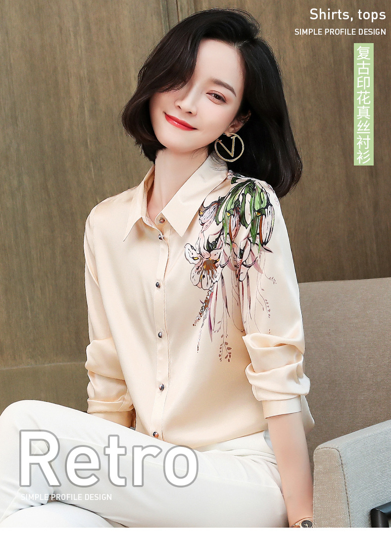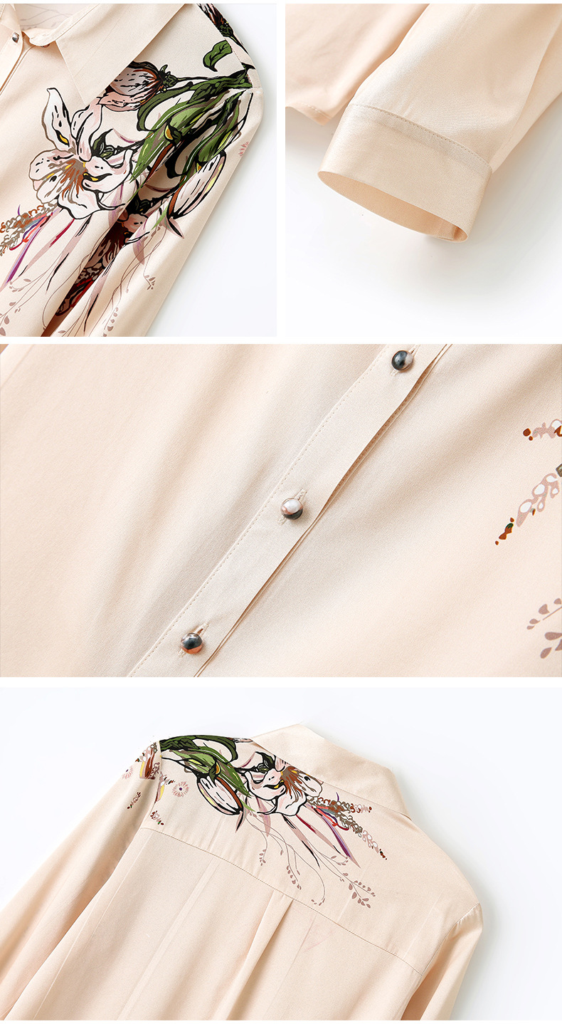 上海旗袍厂ASE-9096 复古印花立领真丝衬衫