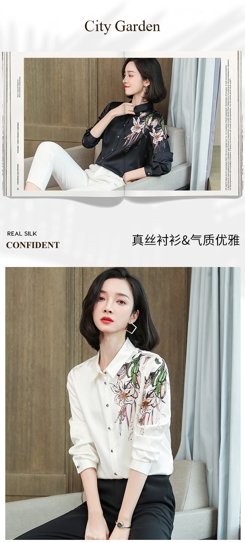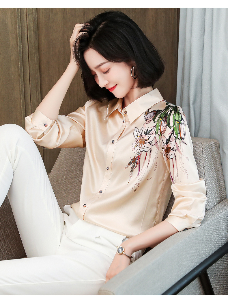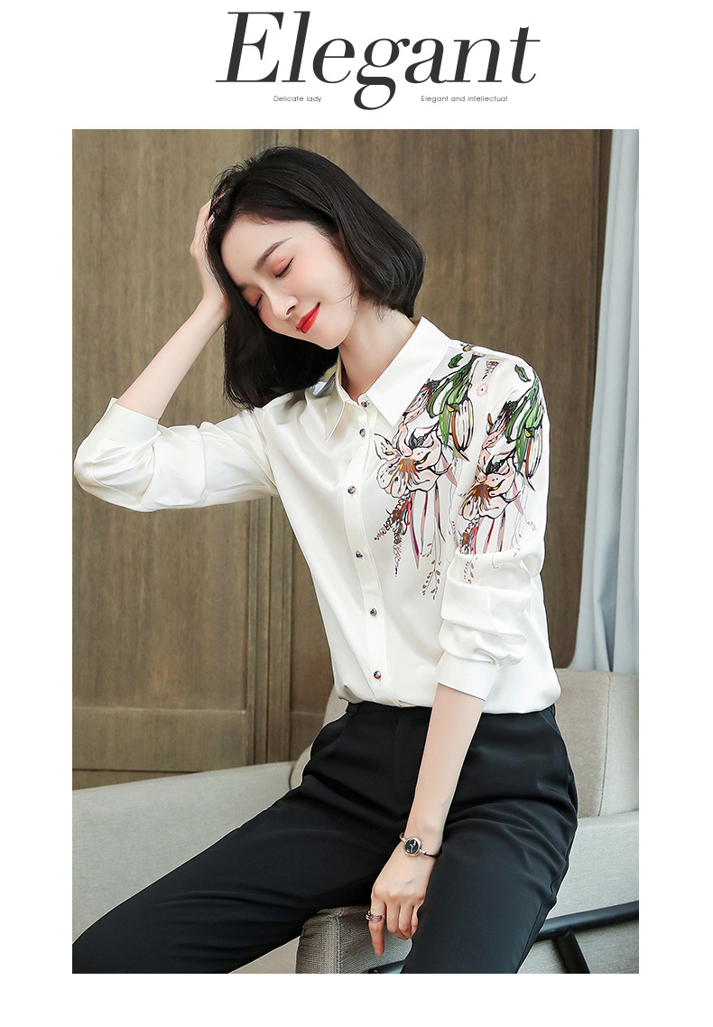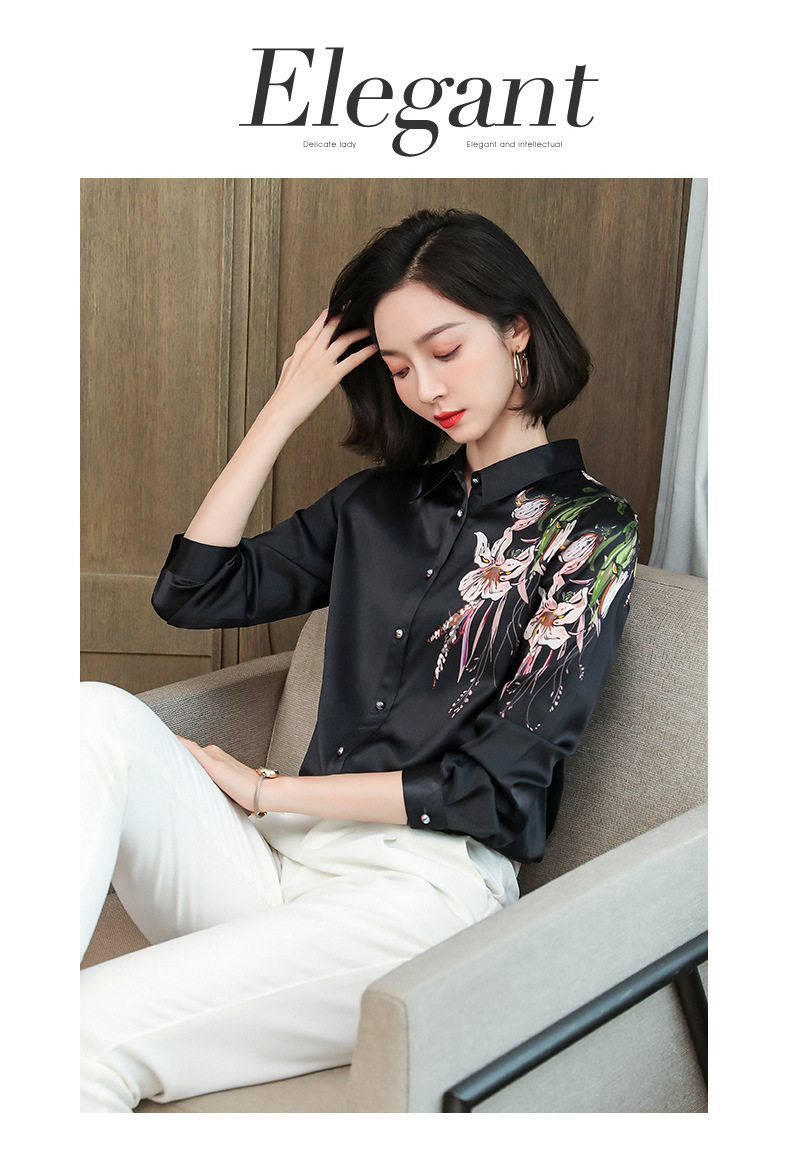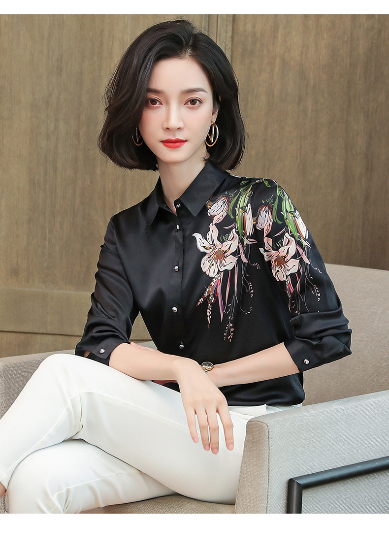 上海旗袍厂ASE-9096 复古印花立领真丝衬衫