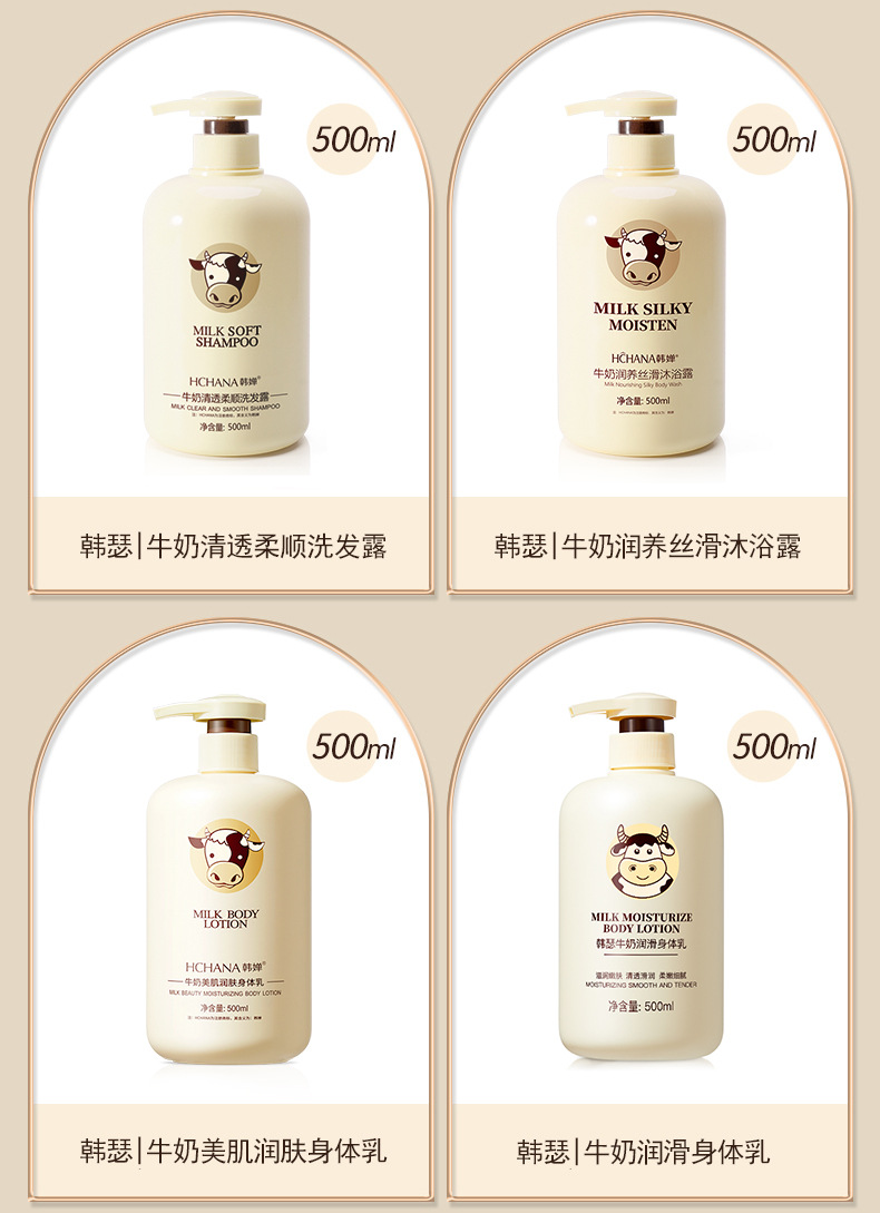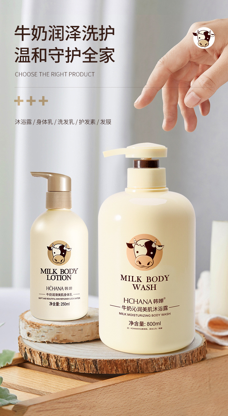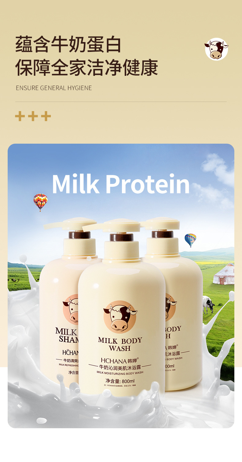 【清爽洁净,润泽莹肌!】韩婵牛奶沐浴露持久留香,大容量保湿身体乳清爽洗发水,缓解肌肤干燥 改善肌肤粗 糙触肤不油腻-lm!
