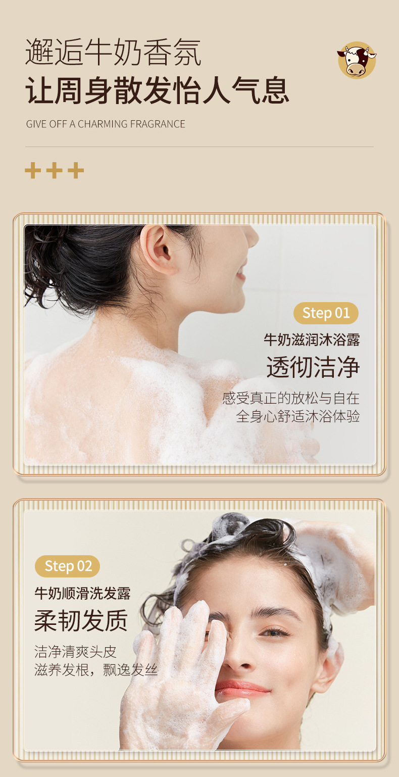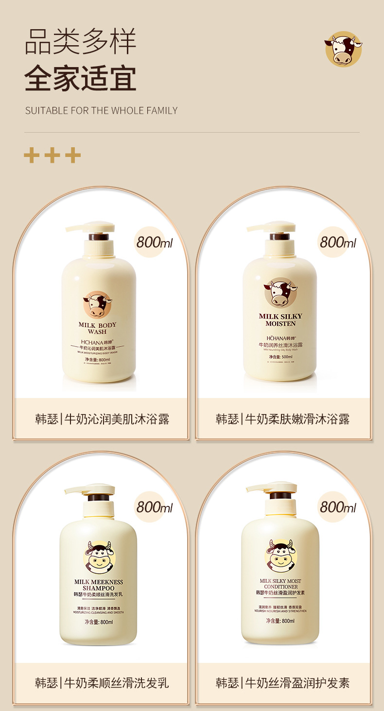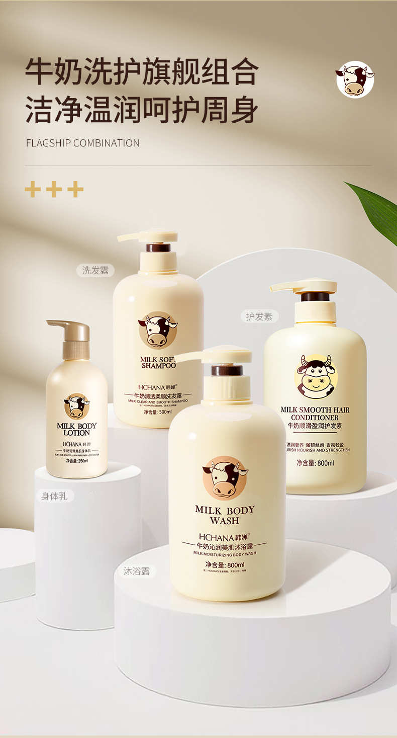 【清爽洁净,润泽莹肌!】韩婵牛奶沐浴露持久留香,大容量保湿身体乳清爽洗发水,缓解肌肤干燥 改善肌肤粗 糙触肤不油腻-lm!