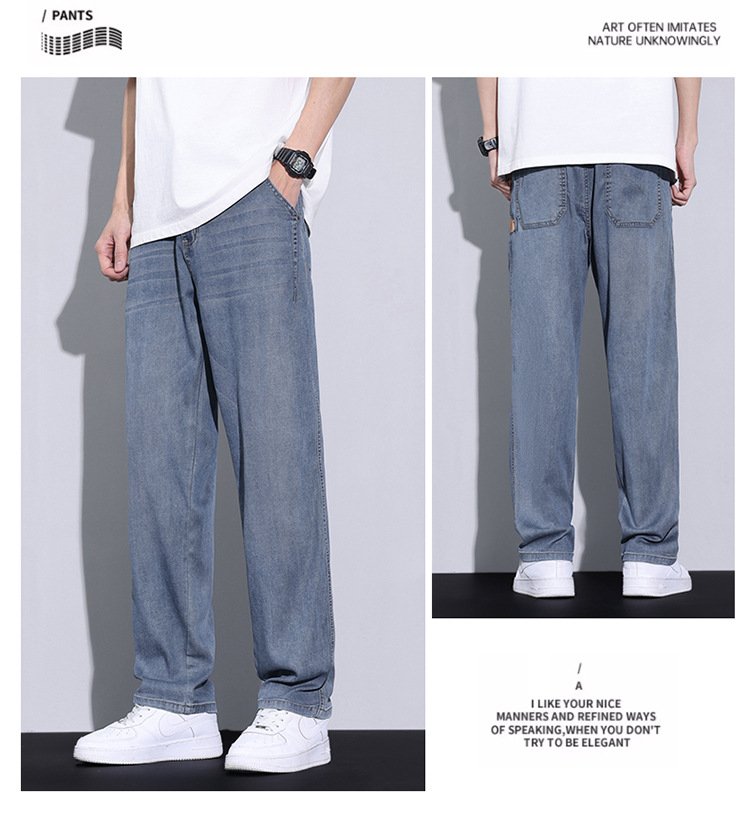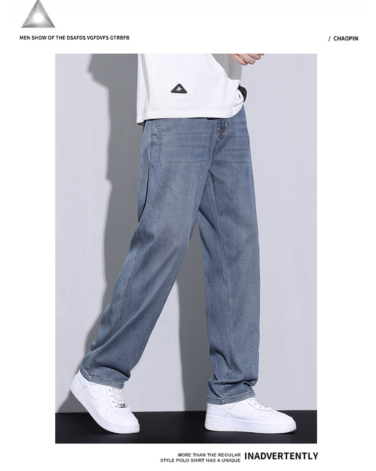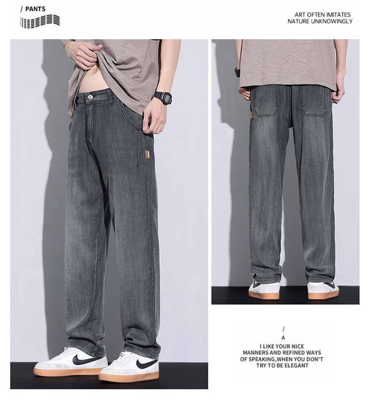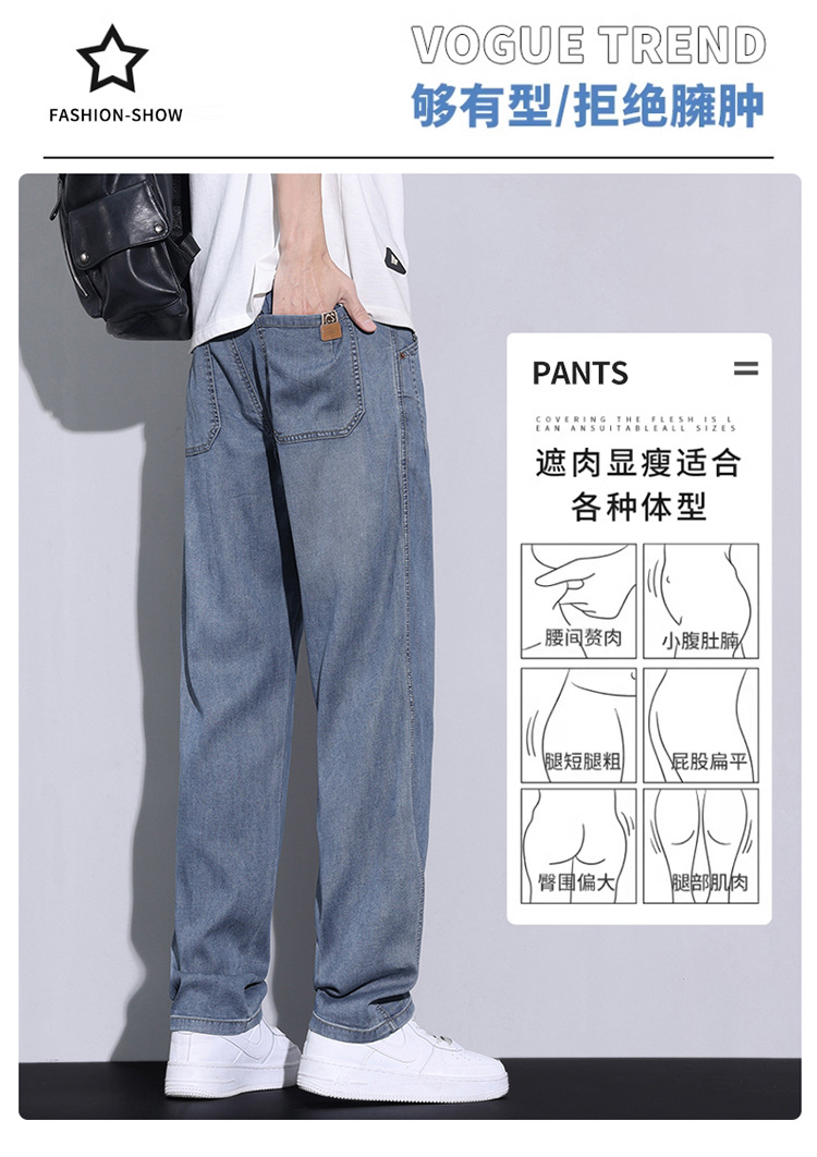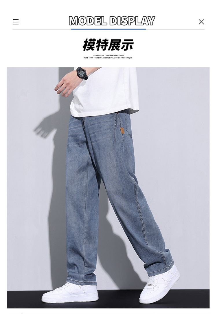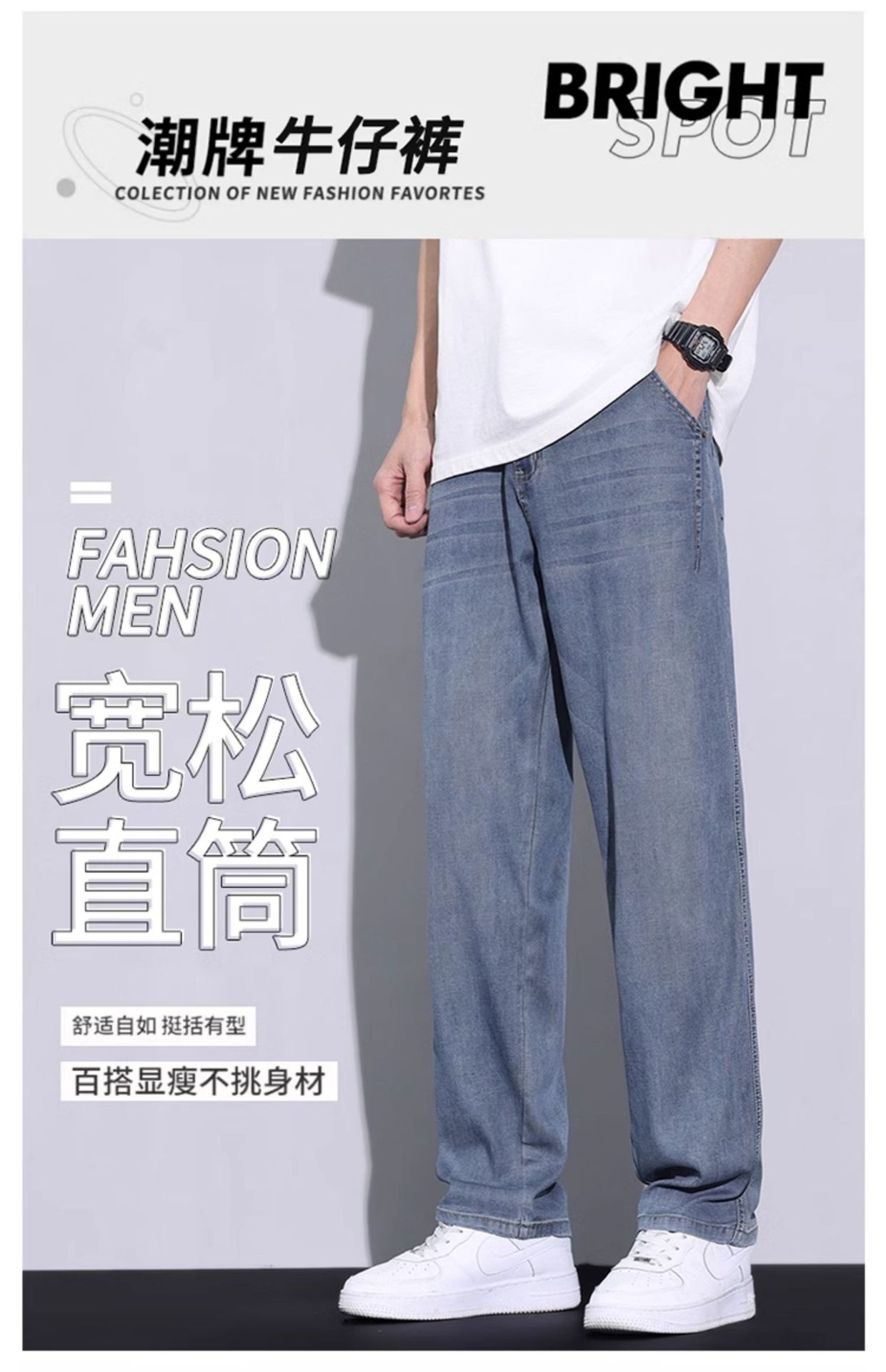 红览 天丝直筒牛仔裤男春秋新款宽松裤子
