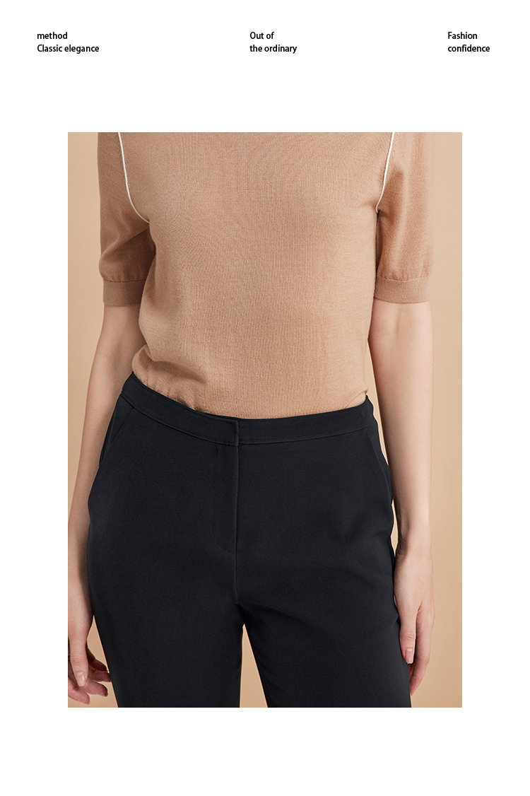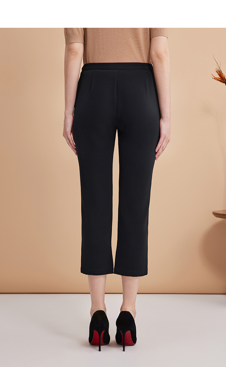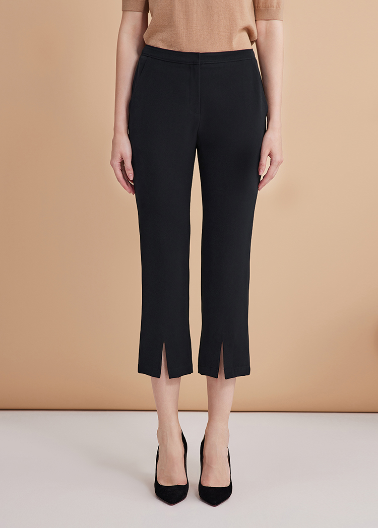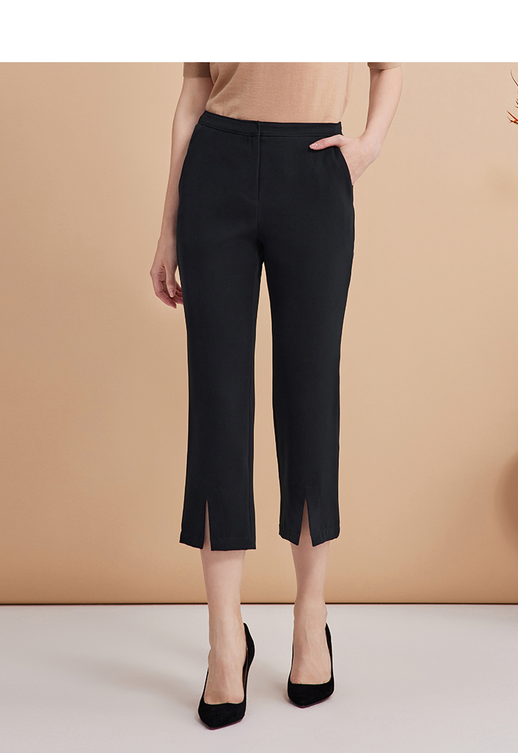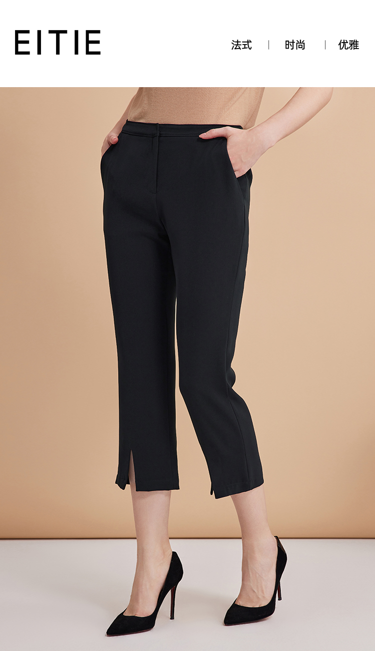 EITIE爱特爱弹性修身显瘦微喇开叉黑色百搭铅笔裤秋季新款C2405402