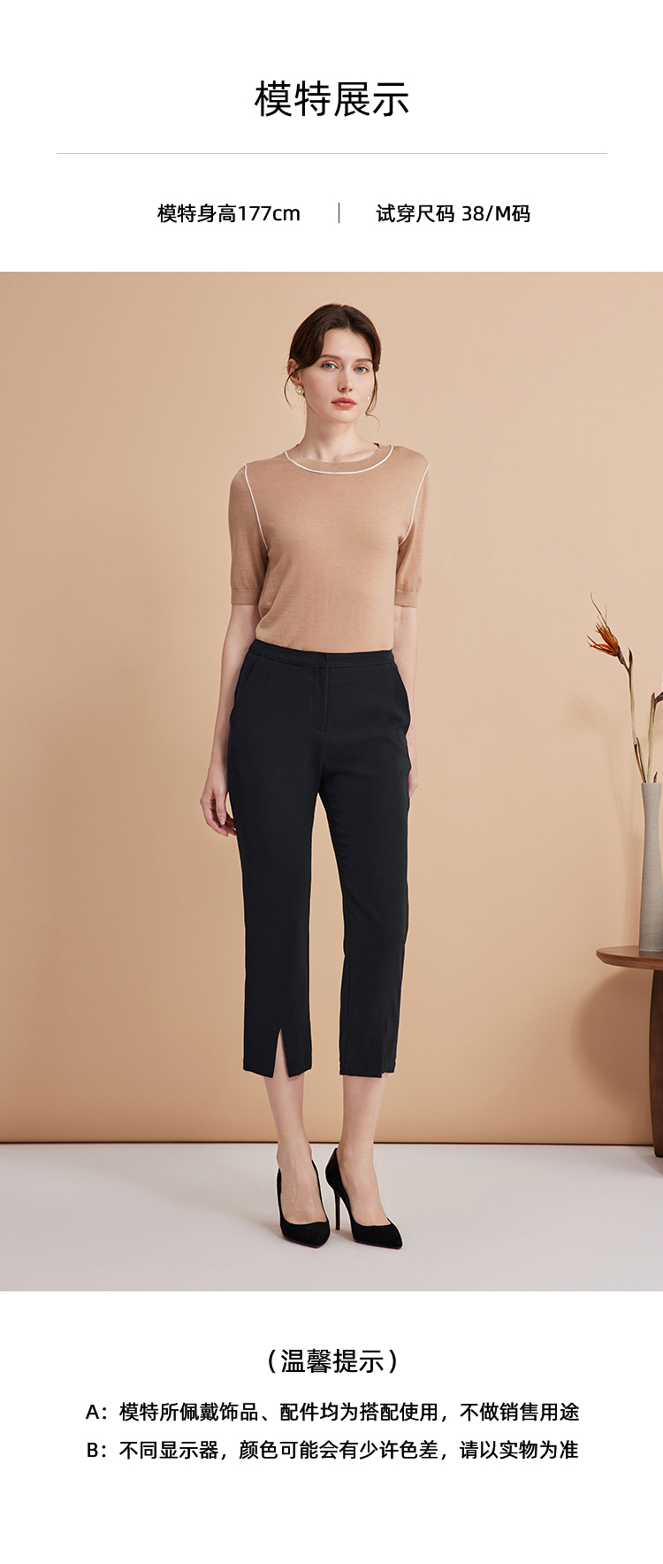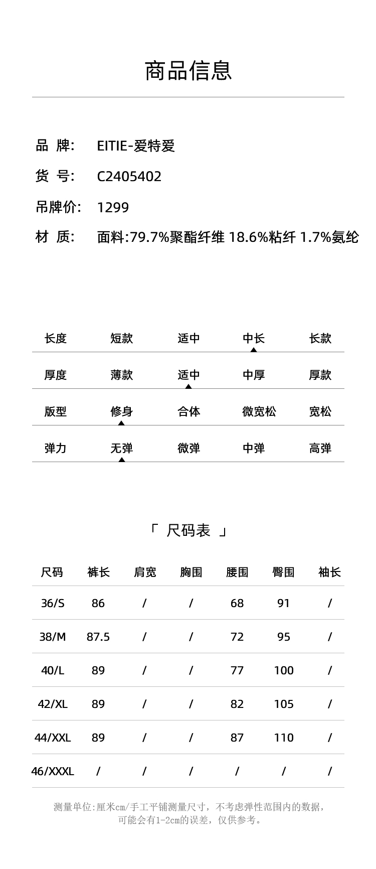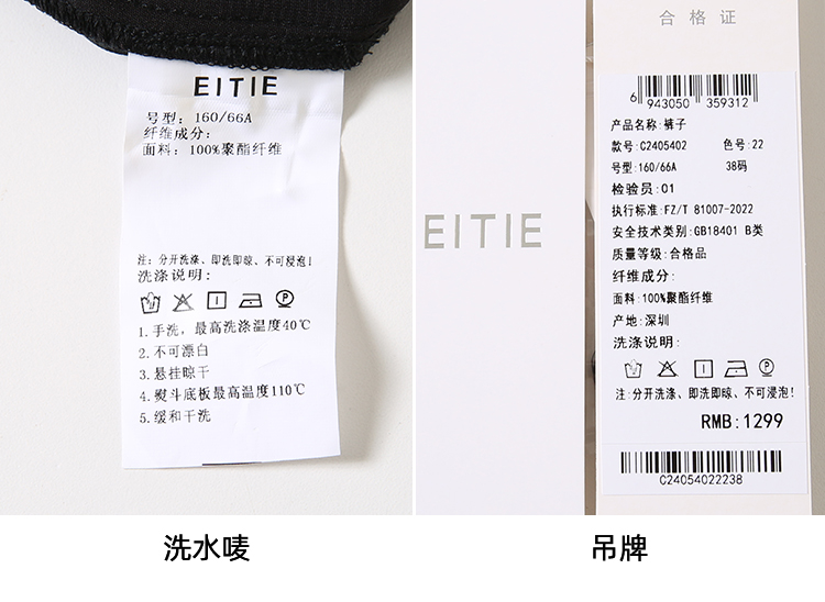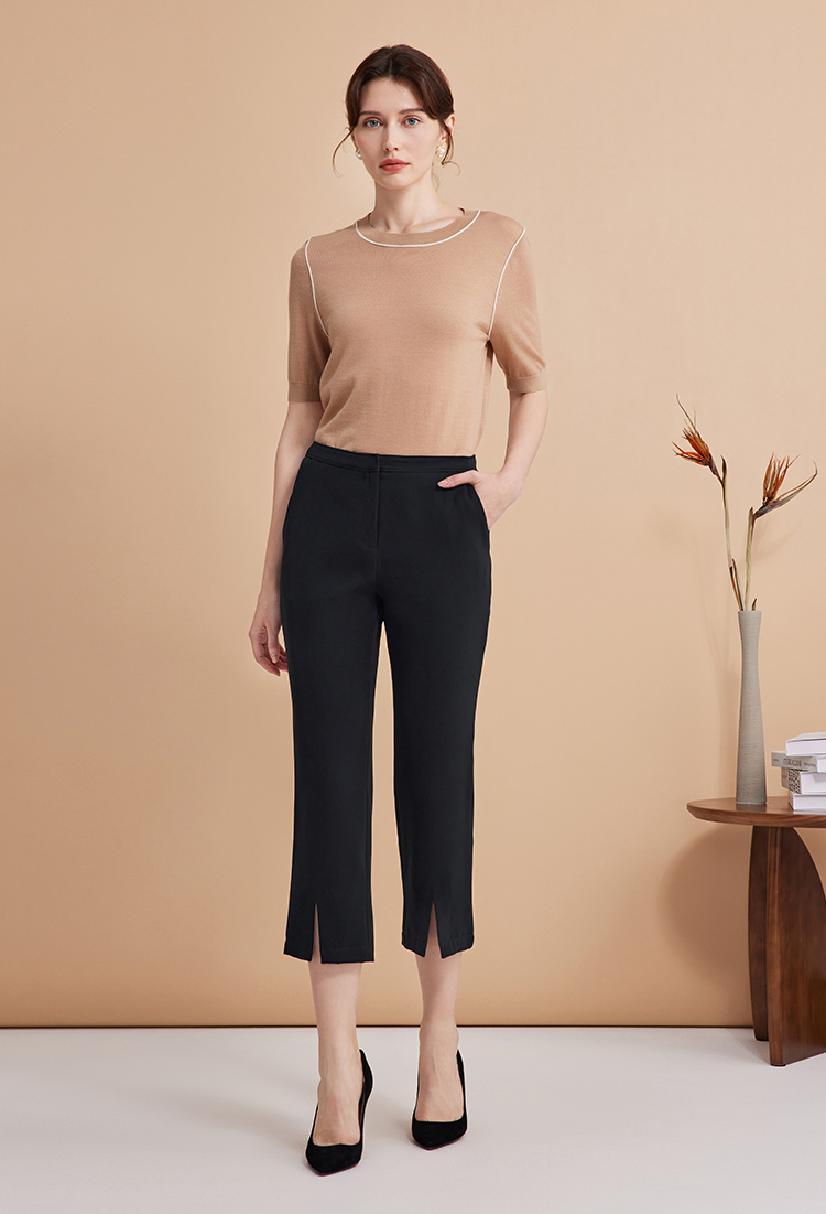 EITIE爱特爱弹性修身显瘦微喇开叉黑色百搭铅笔裤秋季新款C2405402