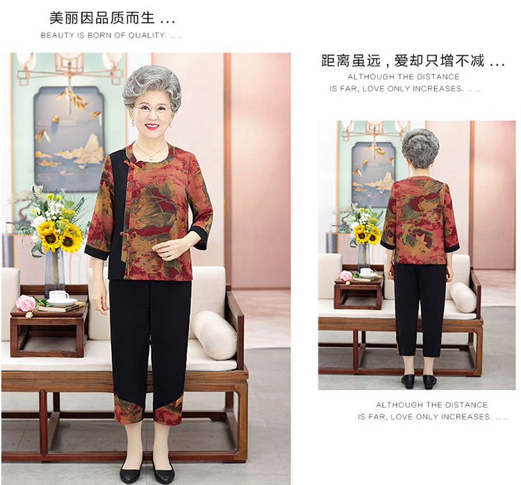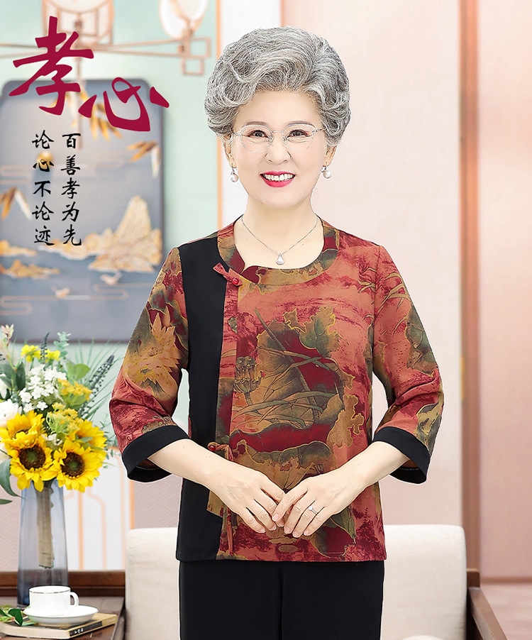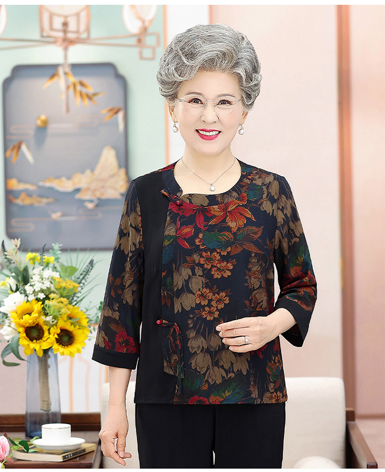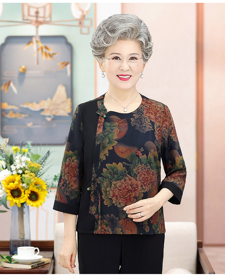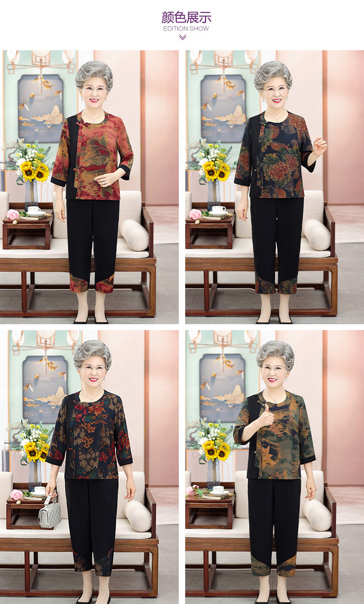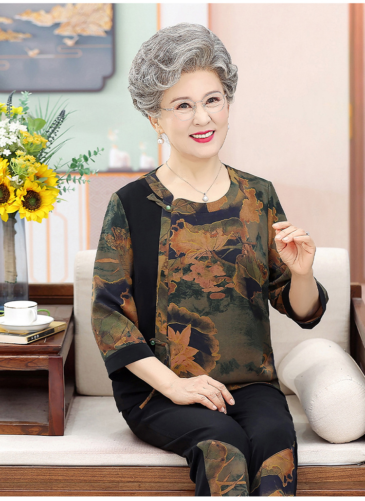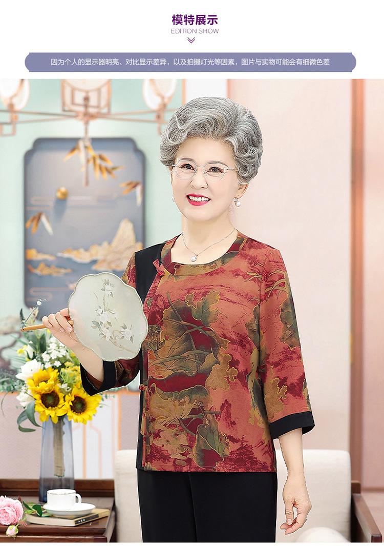 休闲宽松外穿奶奶短袖上衣,宽松老年人两件套TYWF-C435EOMC17