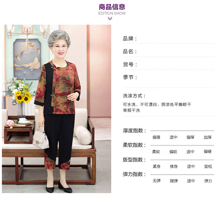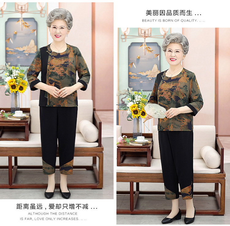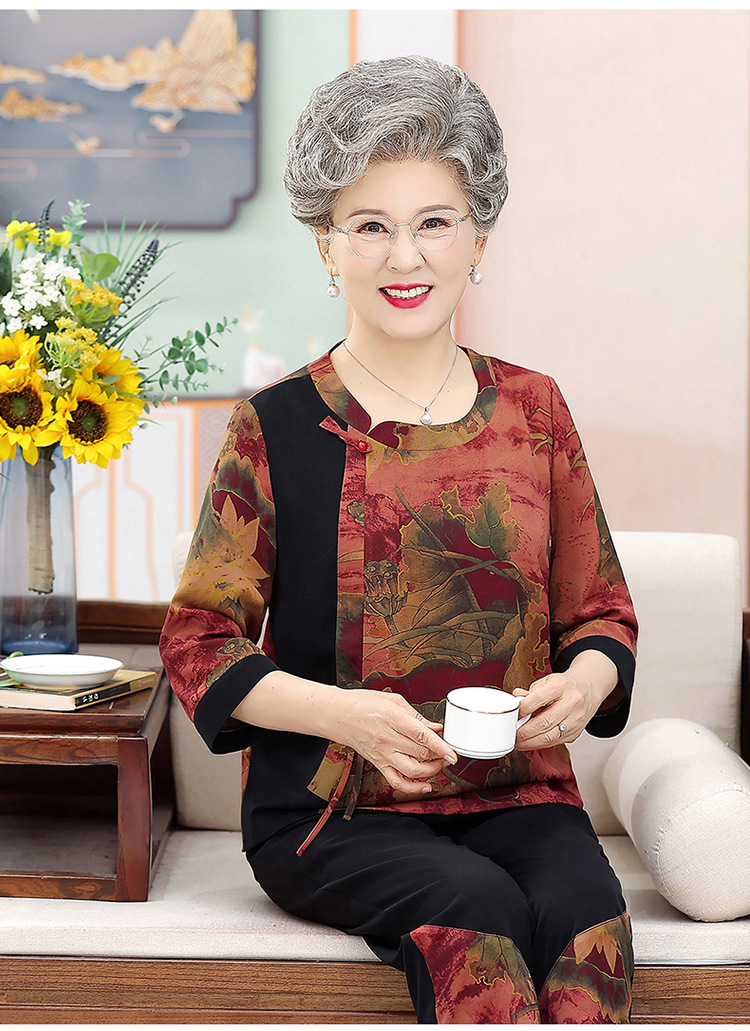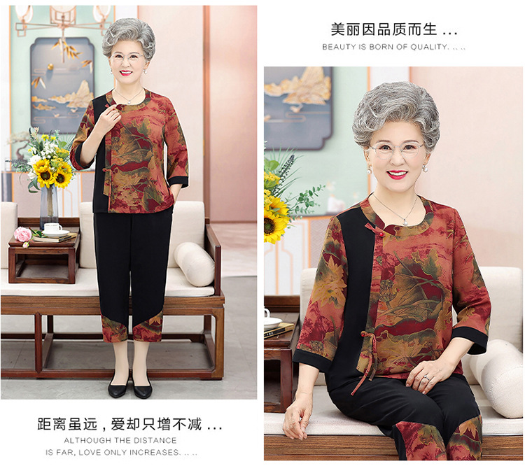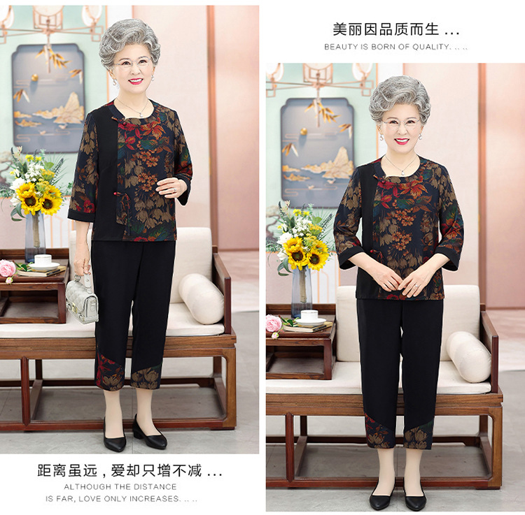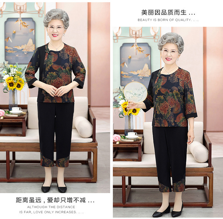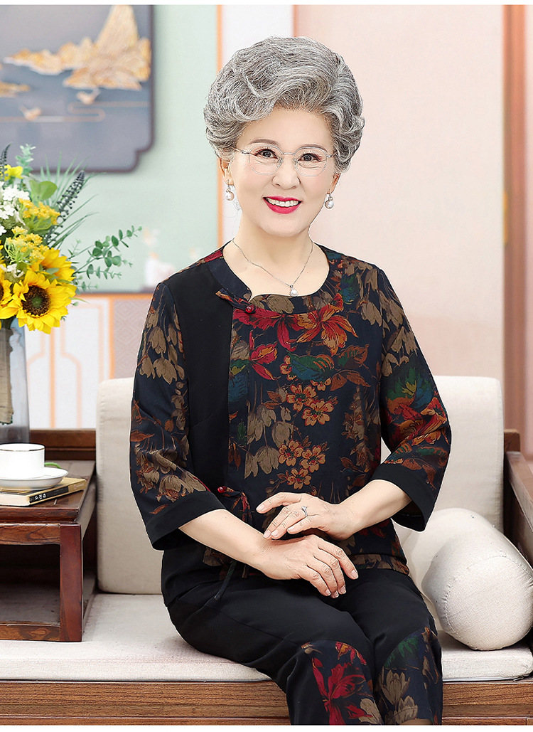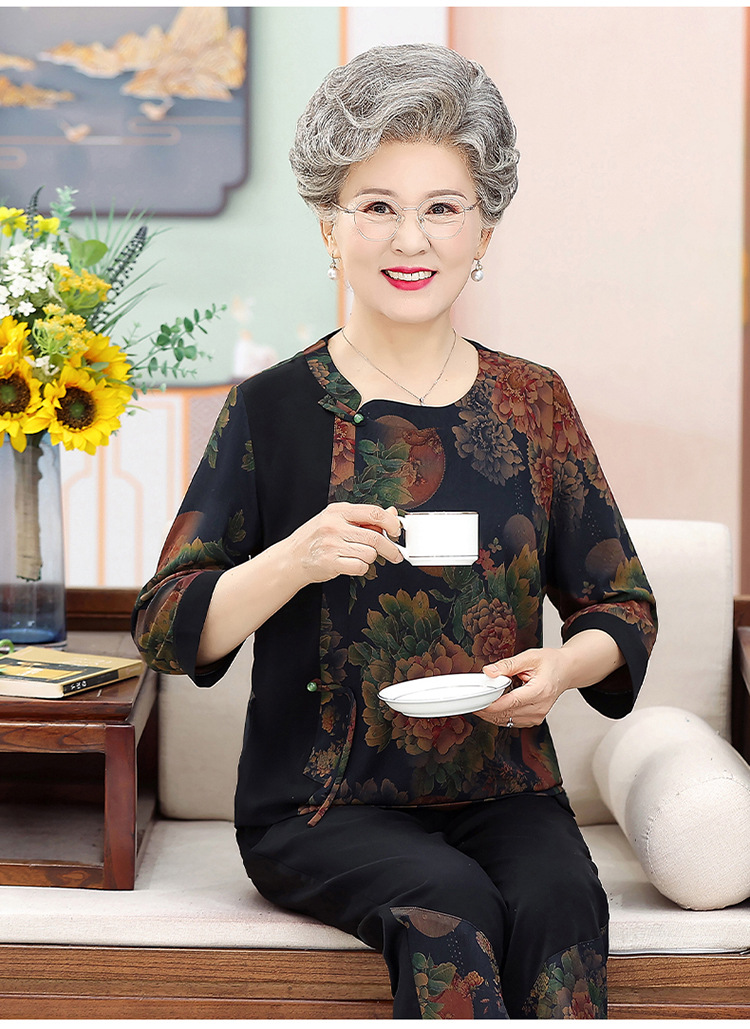 休闲宽松外穿奶奶短袖上衣,宽松老年人两件套TYWF-C435EOMC17