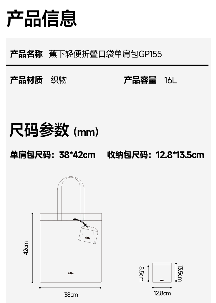 【25年新品】蕉下轻便折叠口袋单肩包GP155