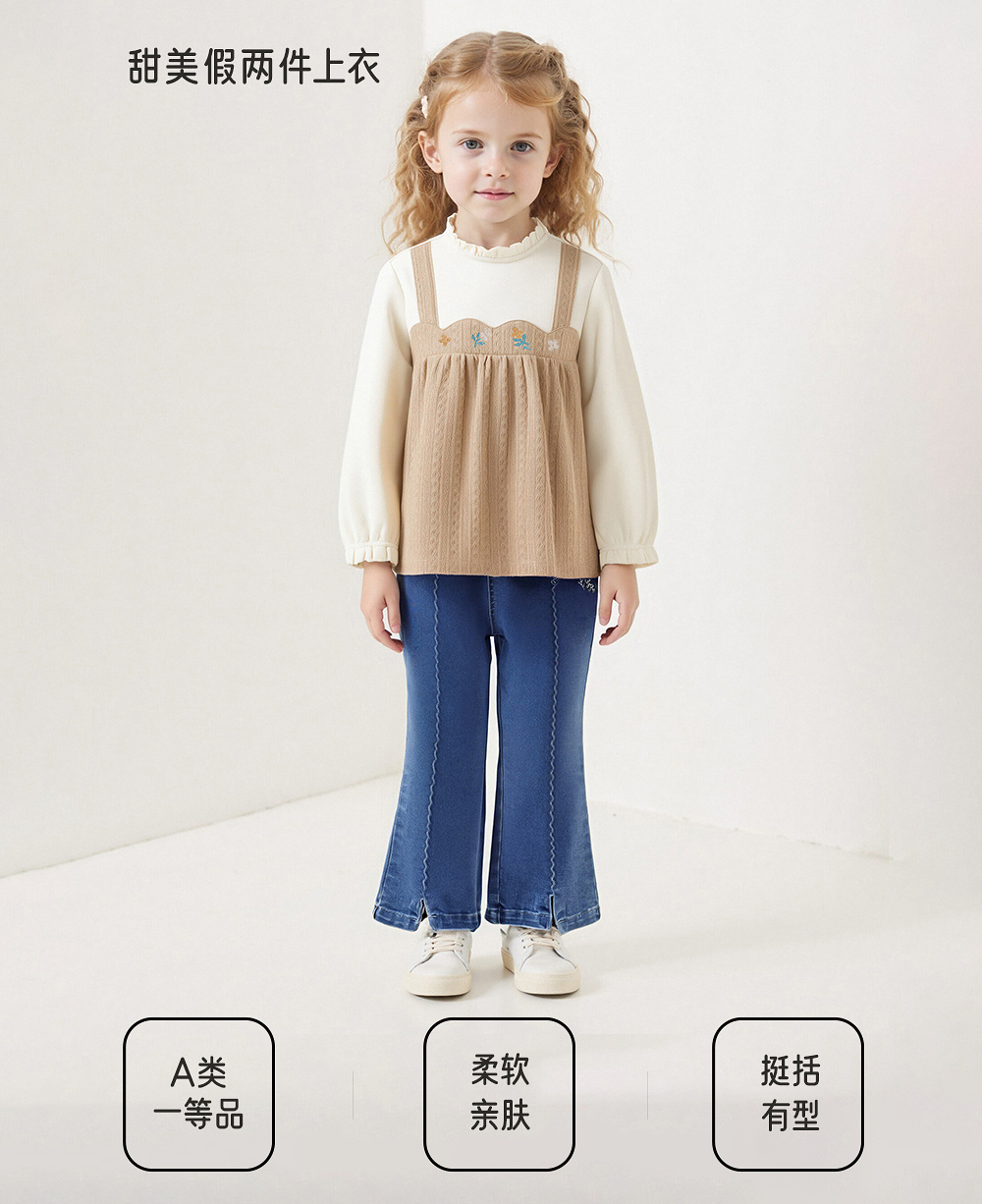 【商场同款】英氏儿童套头衫春秋可爱女童假两件长袖T恤休闲卫衣