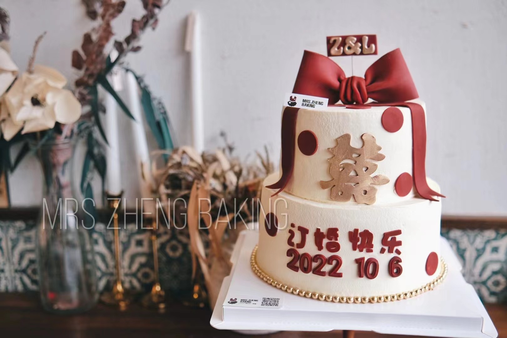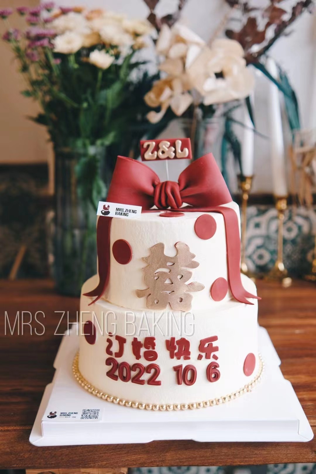 本款装饰蝴蝶结 喜字均为翻糖制作