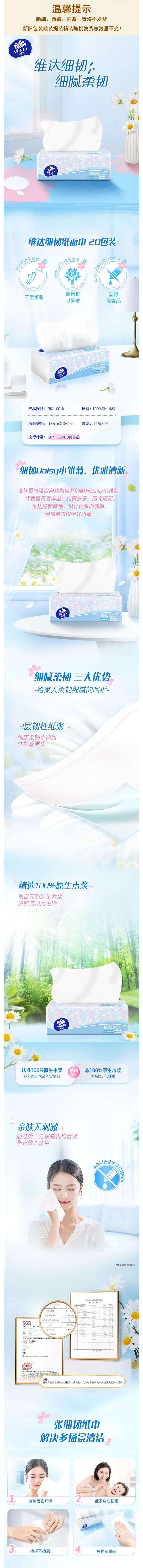 Vinda维达 细韧小雏菊抽纸3层100抽6包S码 vwXR-M04r
