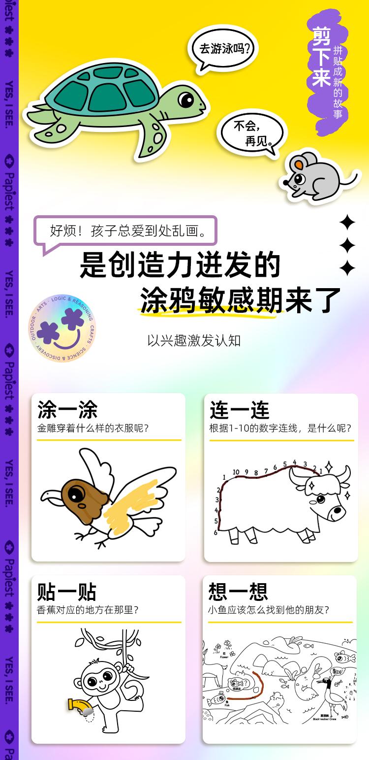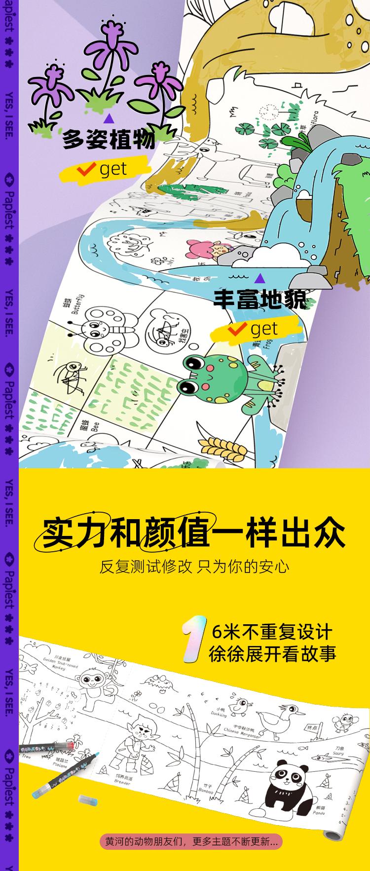 【广博】派乐时刻墙贴画5-6米画卷多次粘贴不脏墙图案多样双语认知