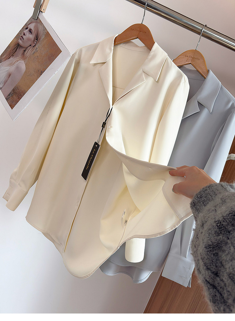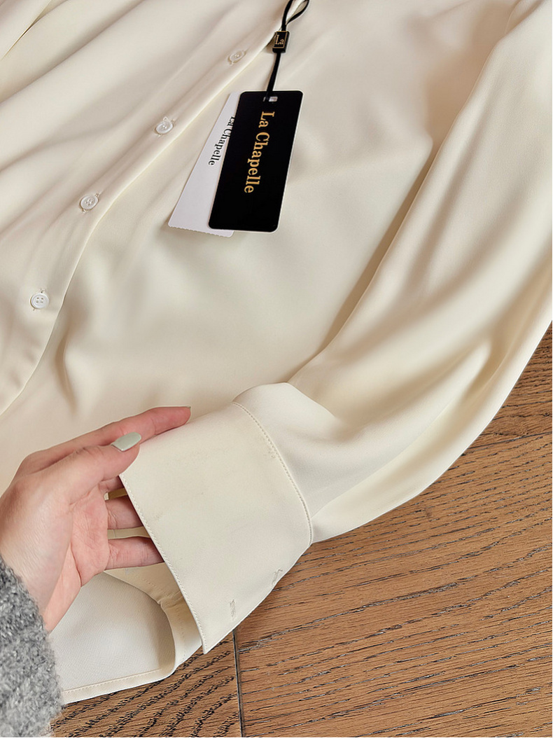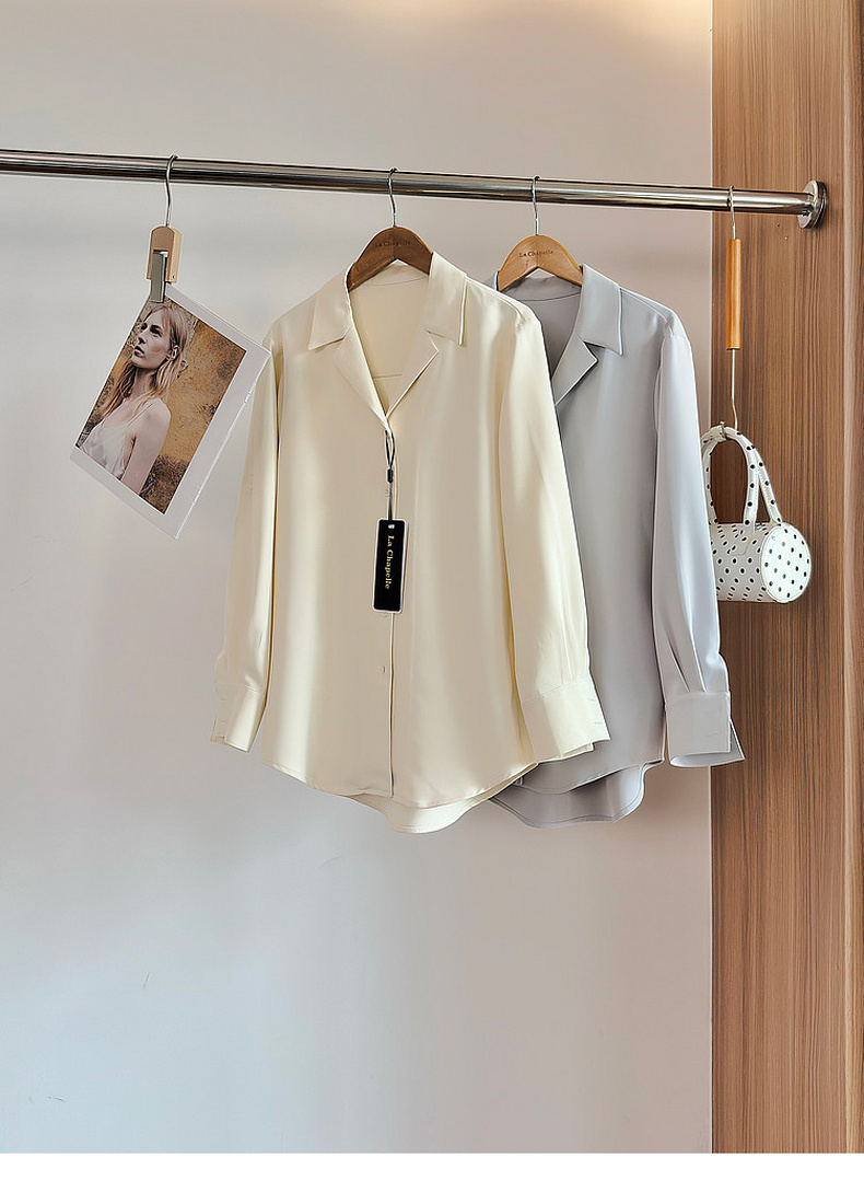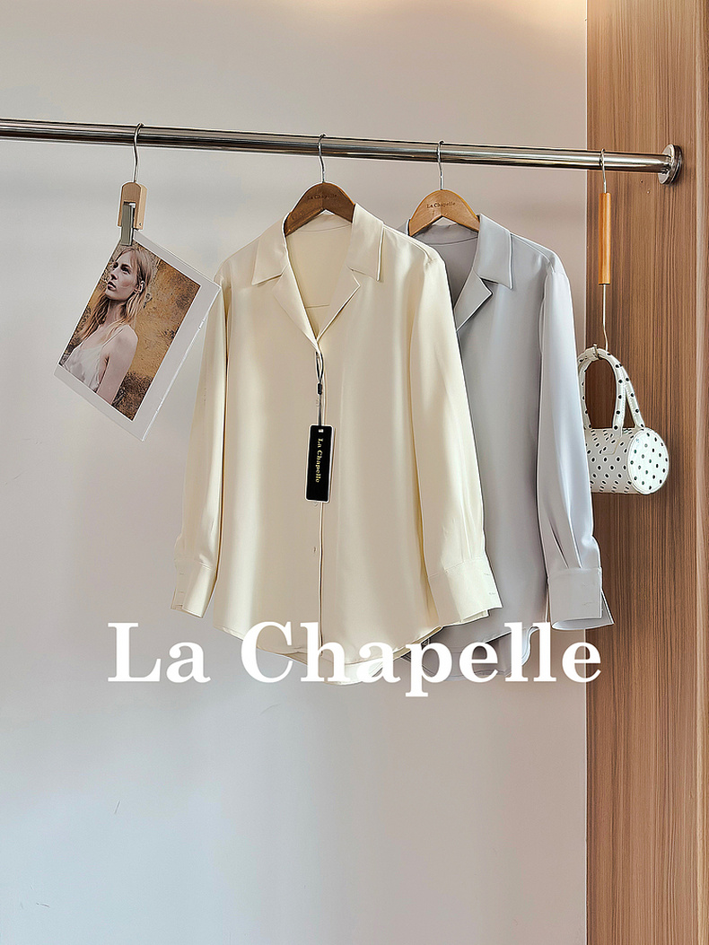 专柜实拍【抗皱免烫】拉夏贝尔/La Chapelle垂感高级!简约通勤百搭翻领排扣弧形下摆长袖衬衫短外套