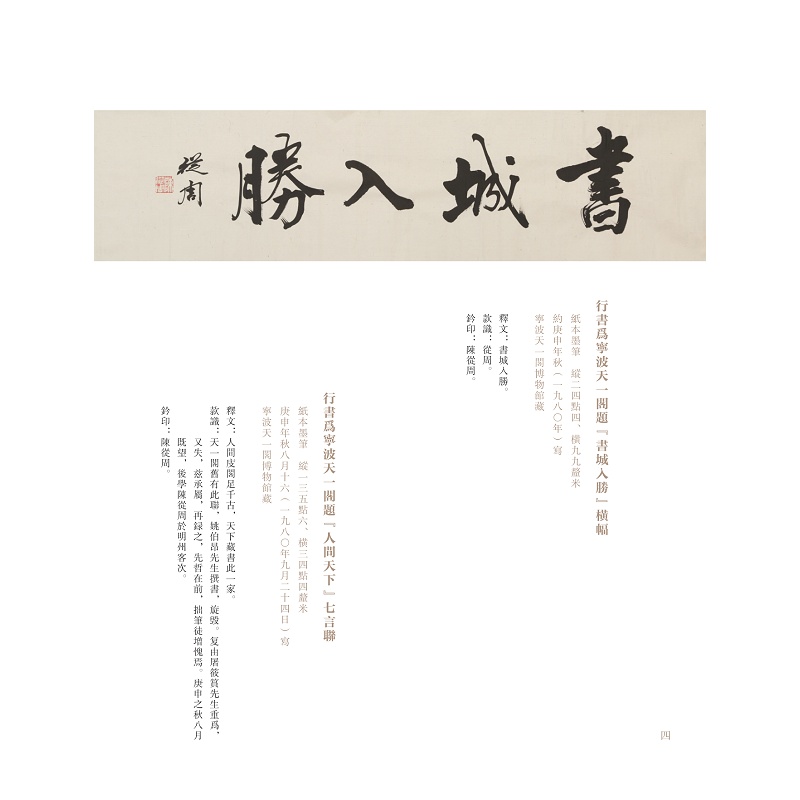 陈从周是园林艺术大师、古建筑学家,其书画成就亦不逊于造园:二十世纪八十年代,画名已蜚声海外,其画作被作为guo礼赠送外宾;园林和风景名胜区中,陈从周手书的匾额、对联、诗歌或碑记,随处可见。