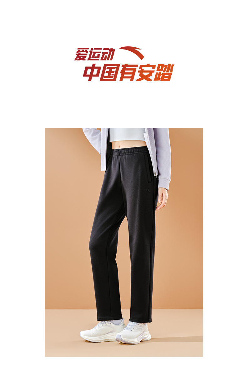 安踏运动长裤女冬季新款宽松休闲针织卫裤高弹直筒裤子162547318N