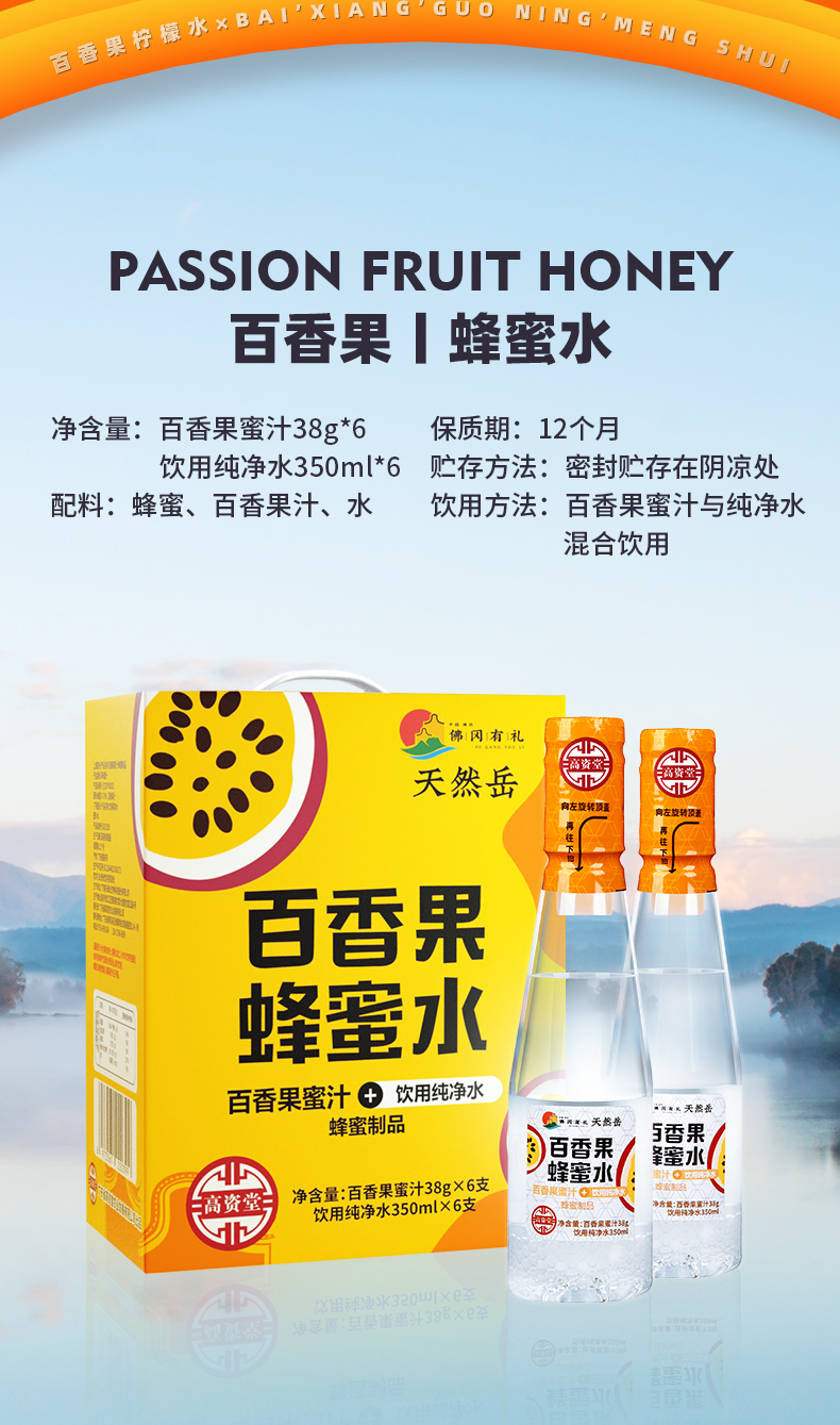 高资堂百香果蜂蜜水饮品 38g*350ml/6支 整箱装