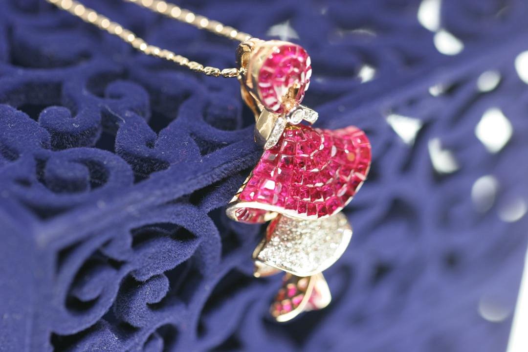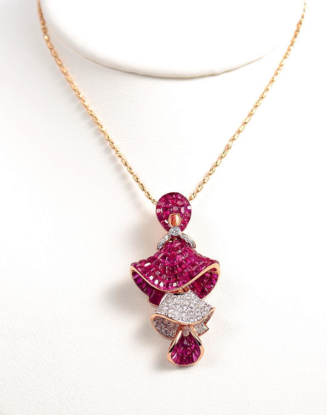 「红绫艳」隐形镶嵌红宝石钻石吊坠