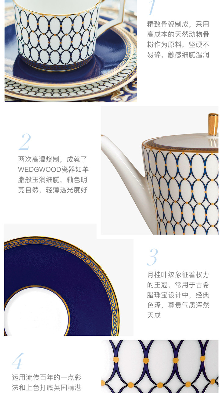 【WEDGWOOD】威基伍德 金粉年华 1壶2杯2碟 骨瓷咖啡壶杯碟欧式