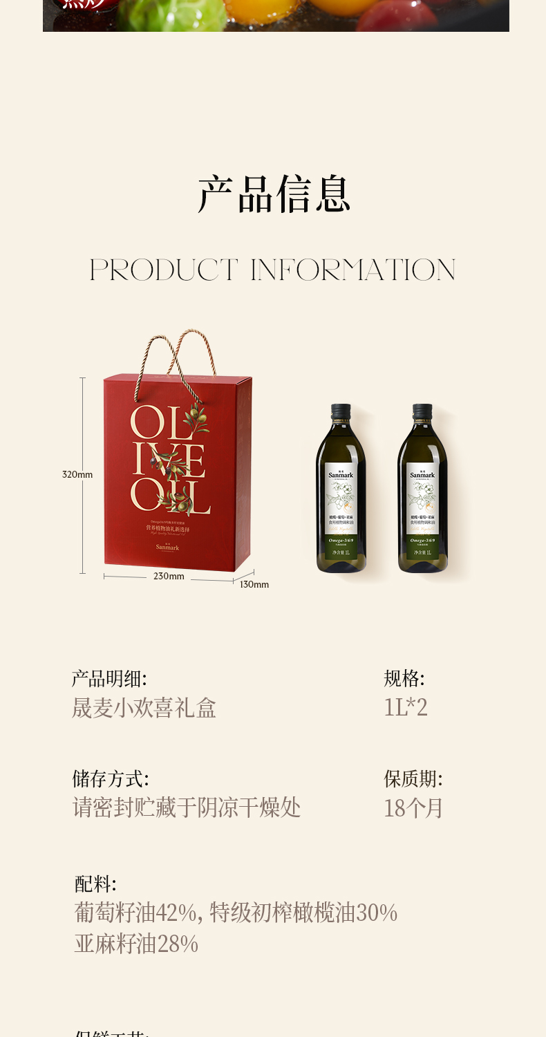 【 礼品】小欢喜橄榄调和油1L*2礼盒