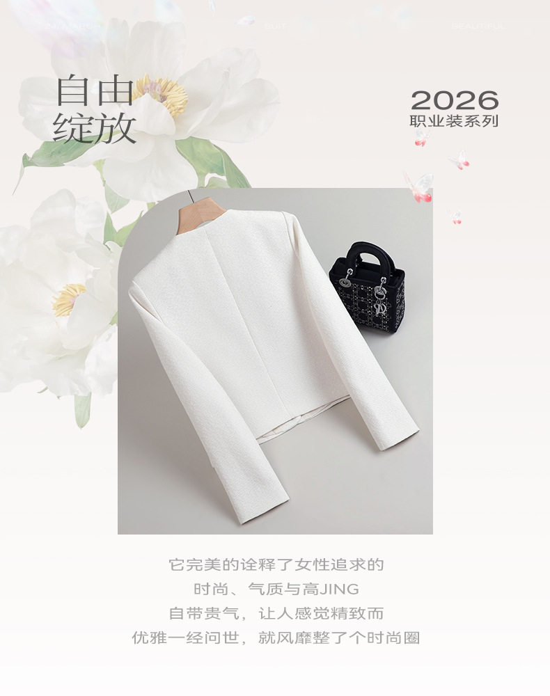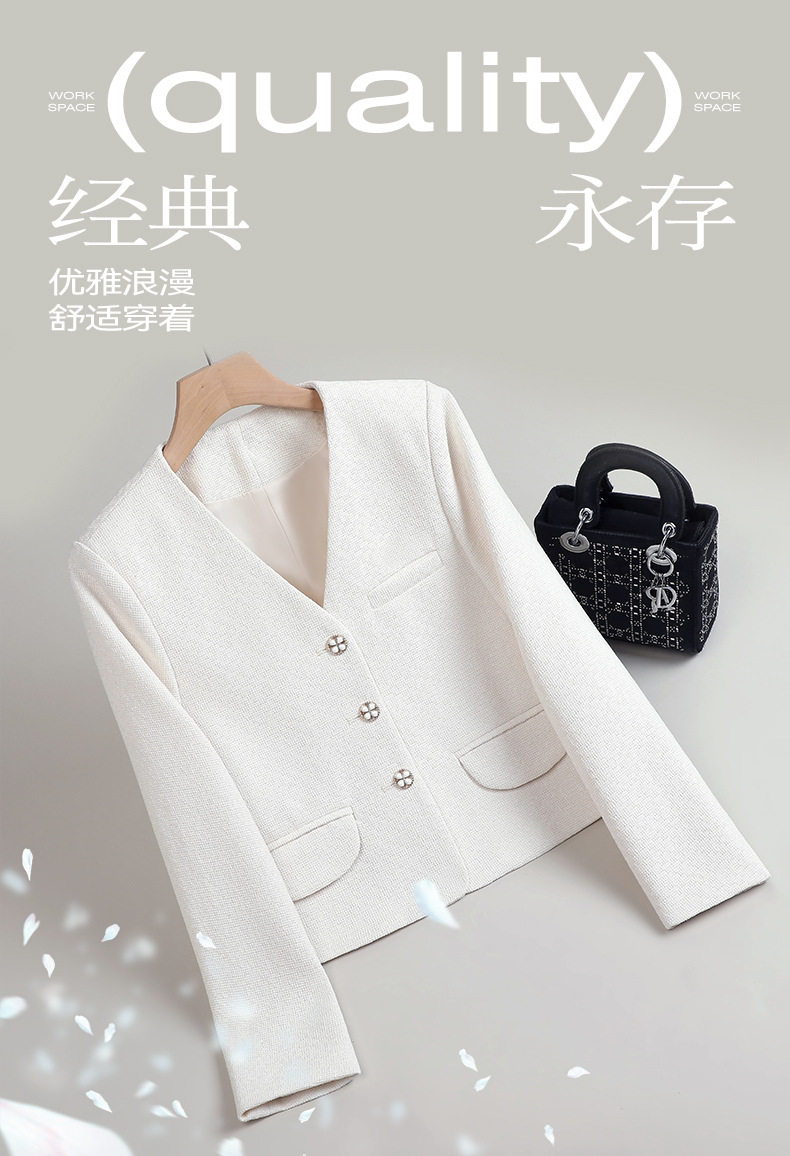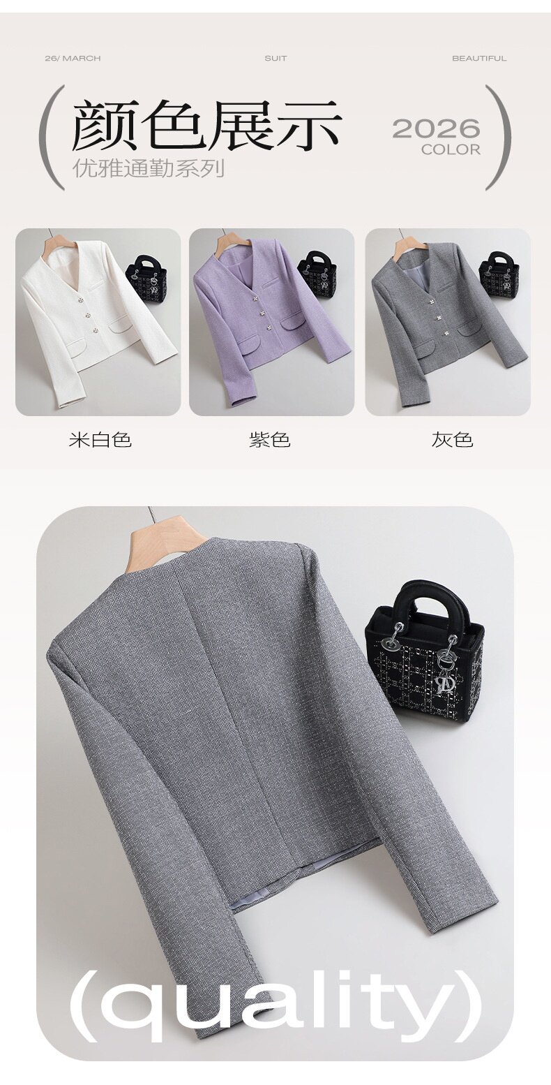 「自」全新升级【铂金会员174/天猫229/差价55】(65744)洛诗琳高级感小香风西装外套2026新款气质V领显瘦通勤上衣女