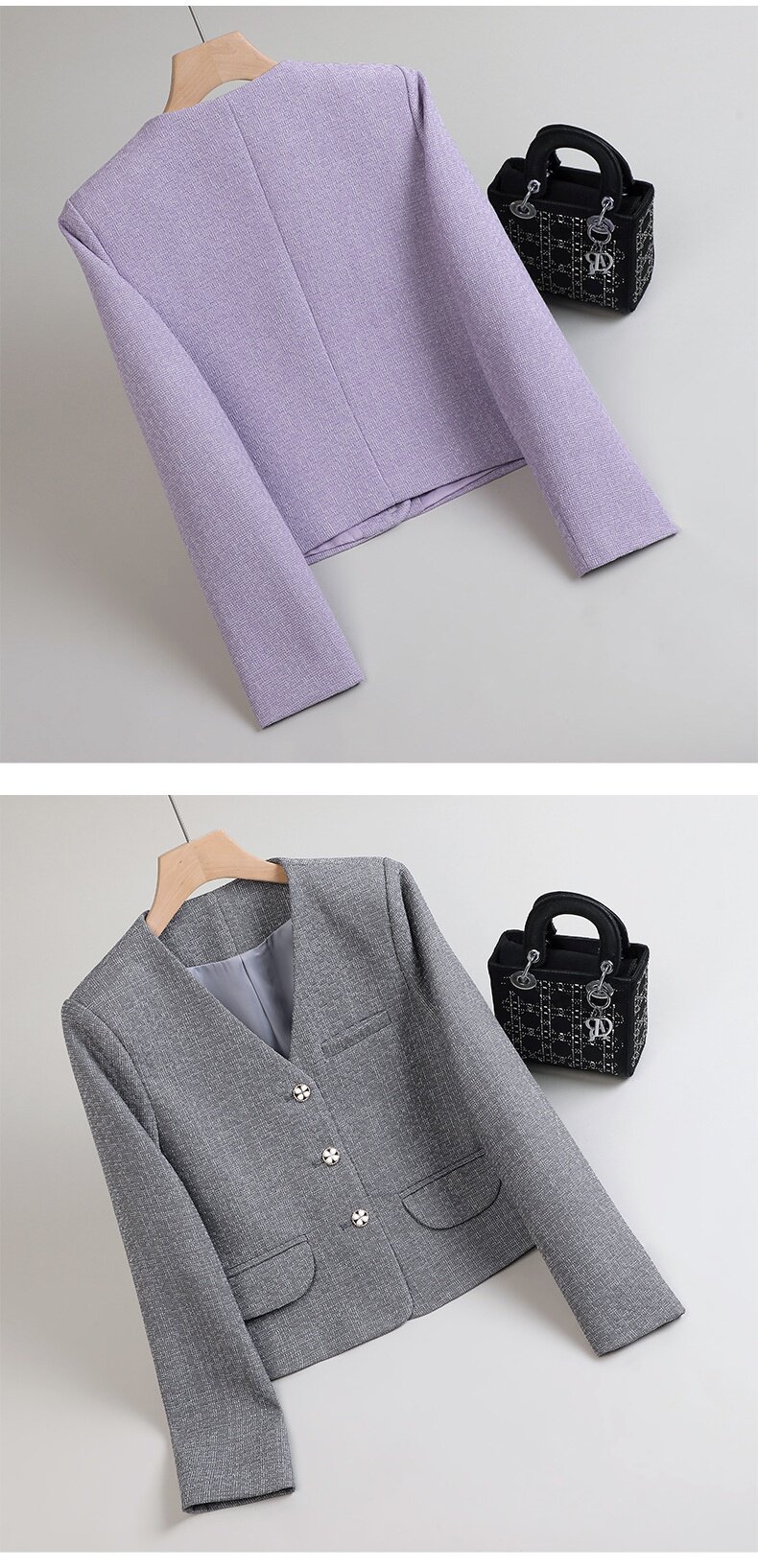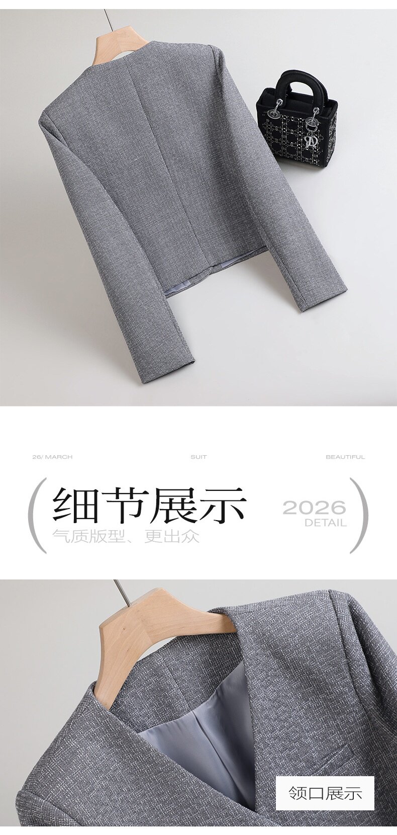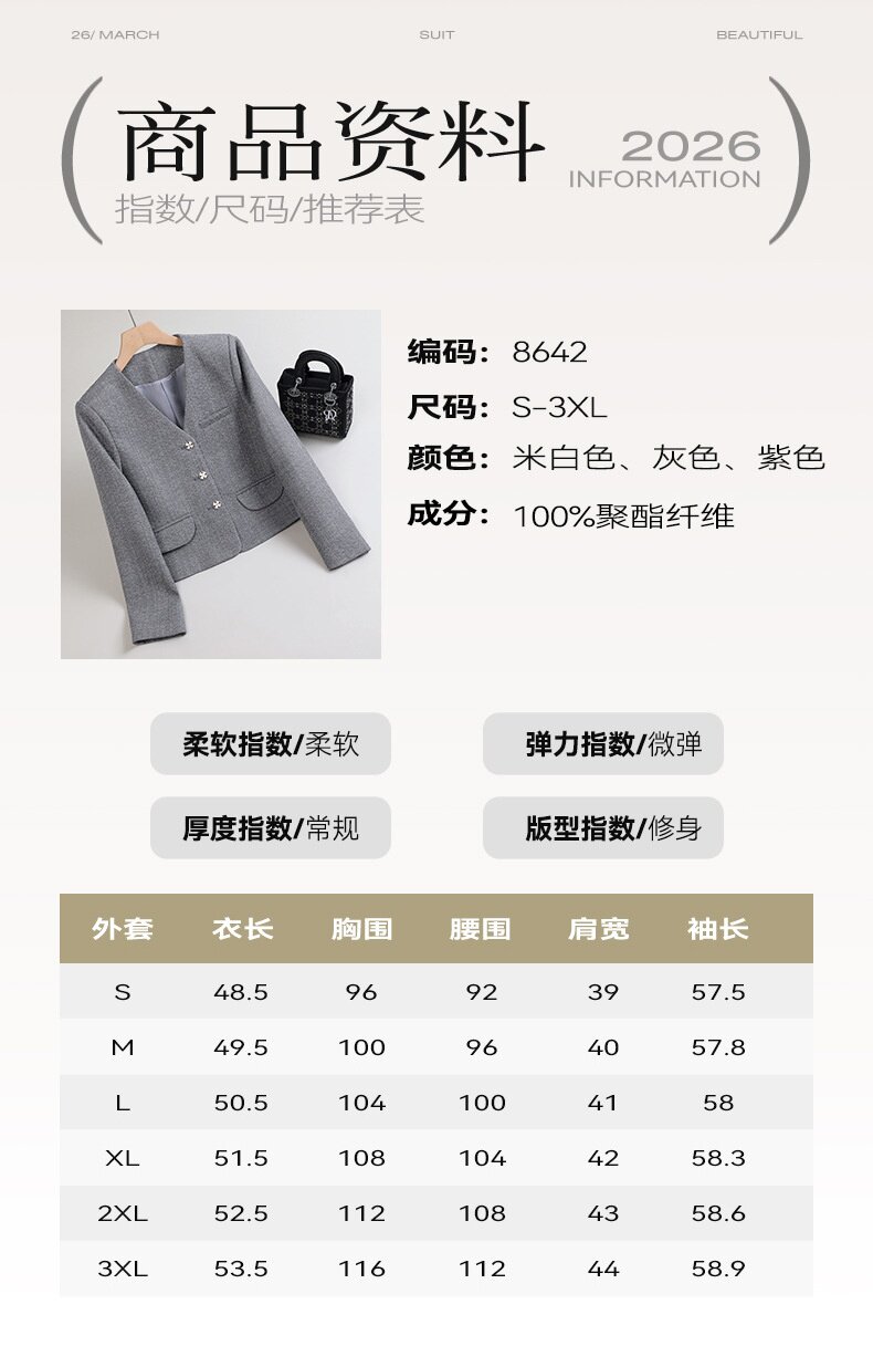 「自」全新升级【铂金会员174/天猫229/差价55】(65744)洛诗琳高级感小香风西装外套2026新款气质V领显瘦通勤上衣女