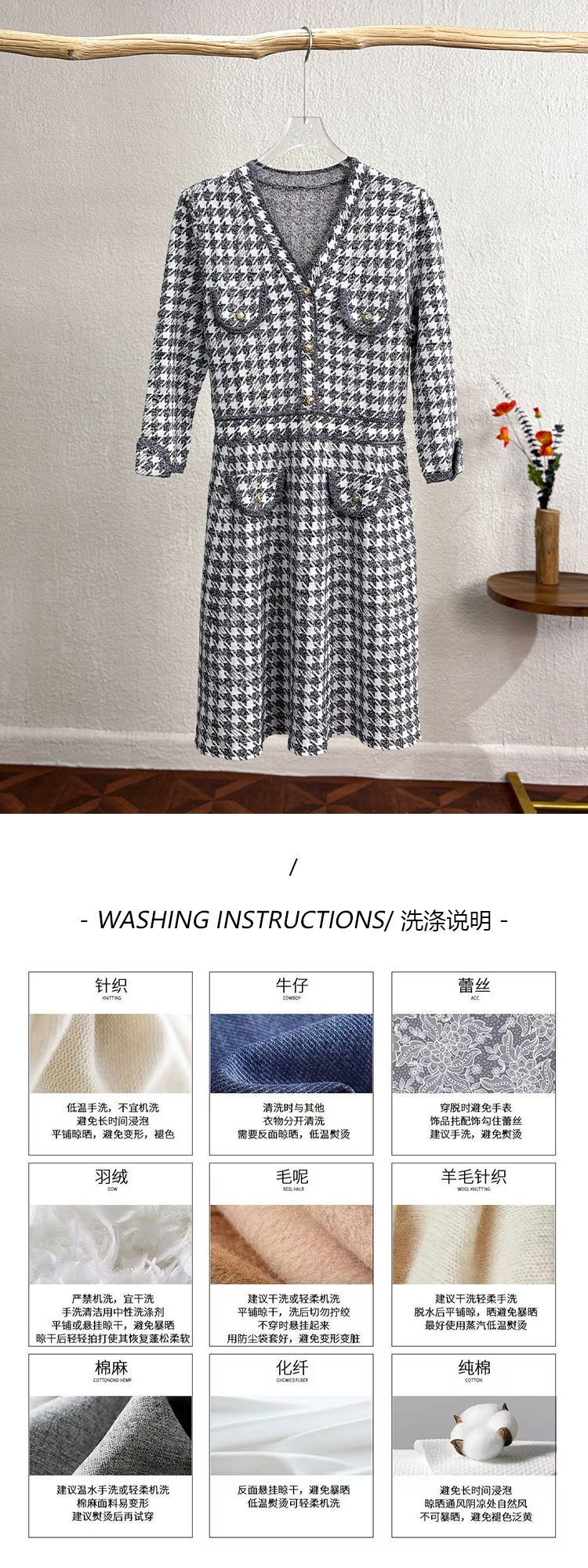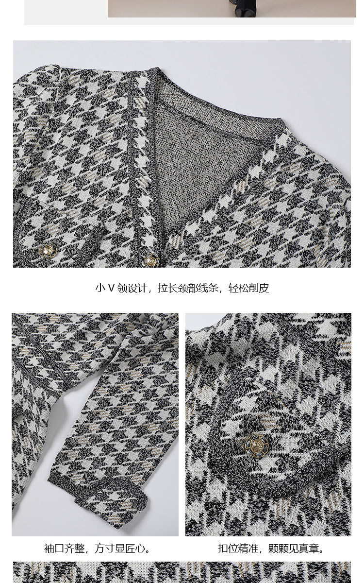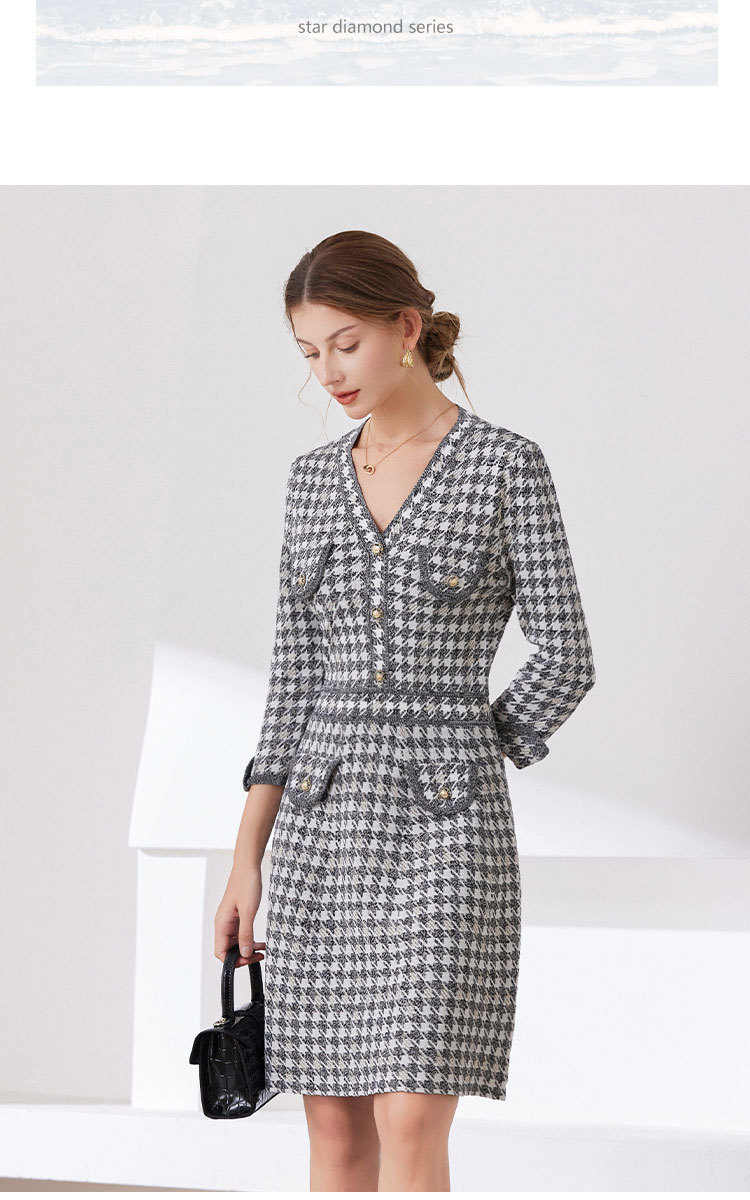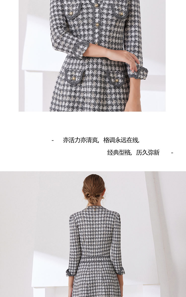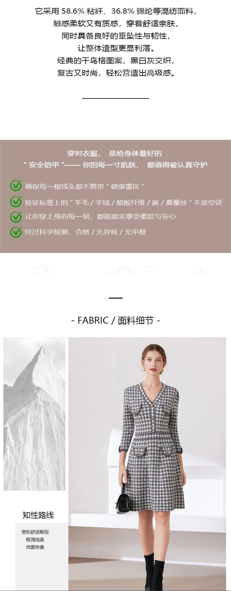 「自」全新升级【铂金会员441/天猫589/差价148】(53857)洛诗琳新款小香风千鸟格连衣裙2025秋季气质V领七分袖针织裙