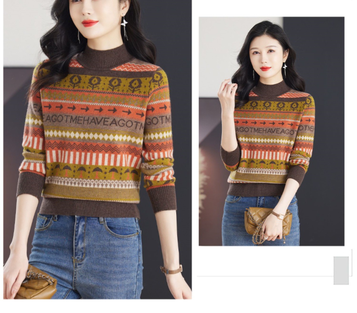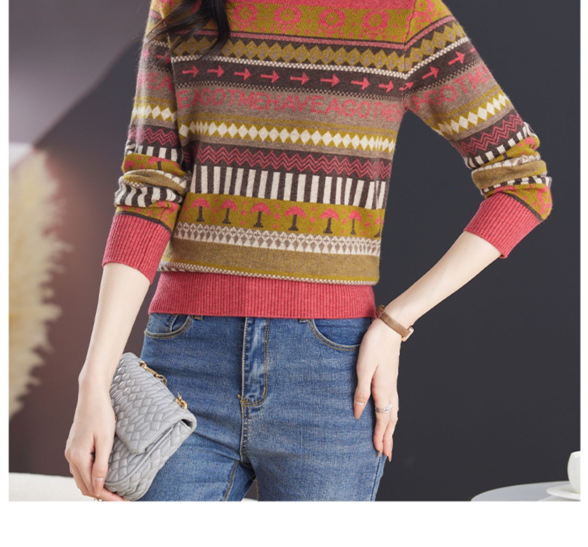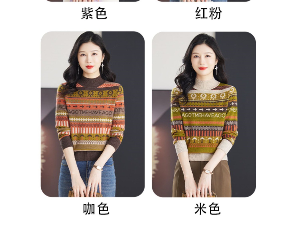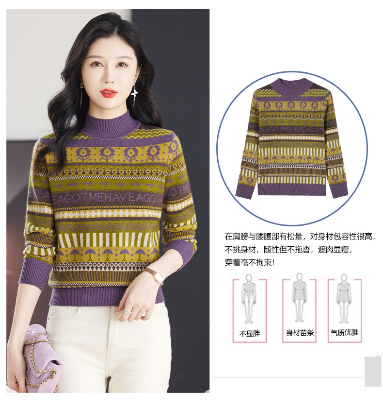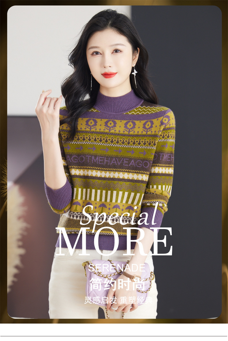 CC-103-79013今年流行的漂亮小衫高端欧货洋气上衣毛衣套头宽松提花针织打底衫