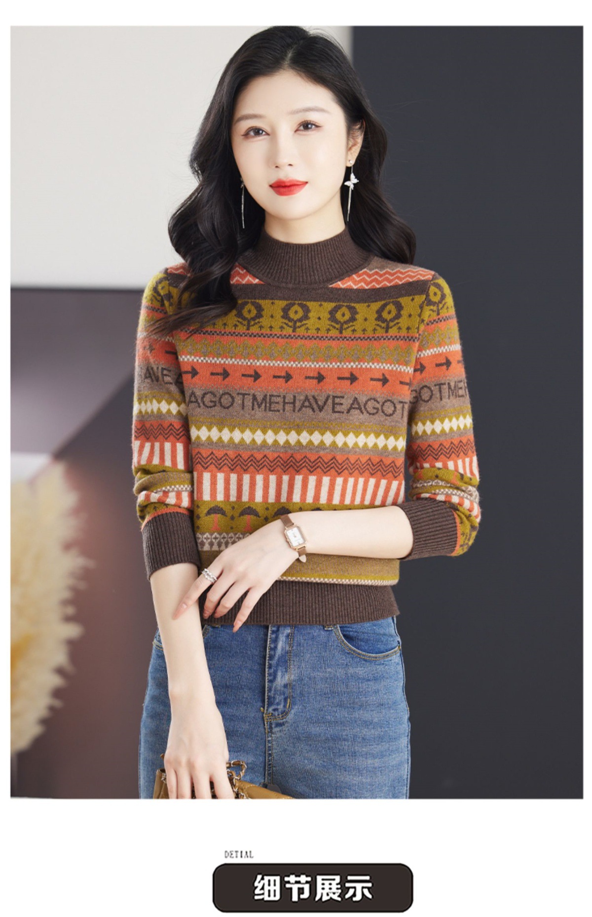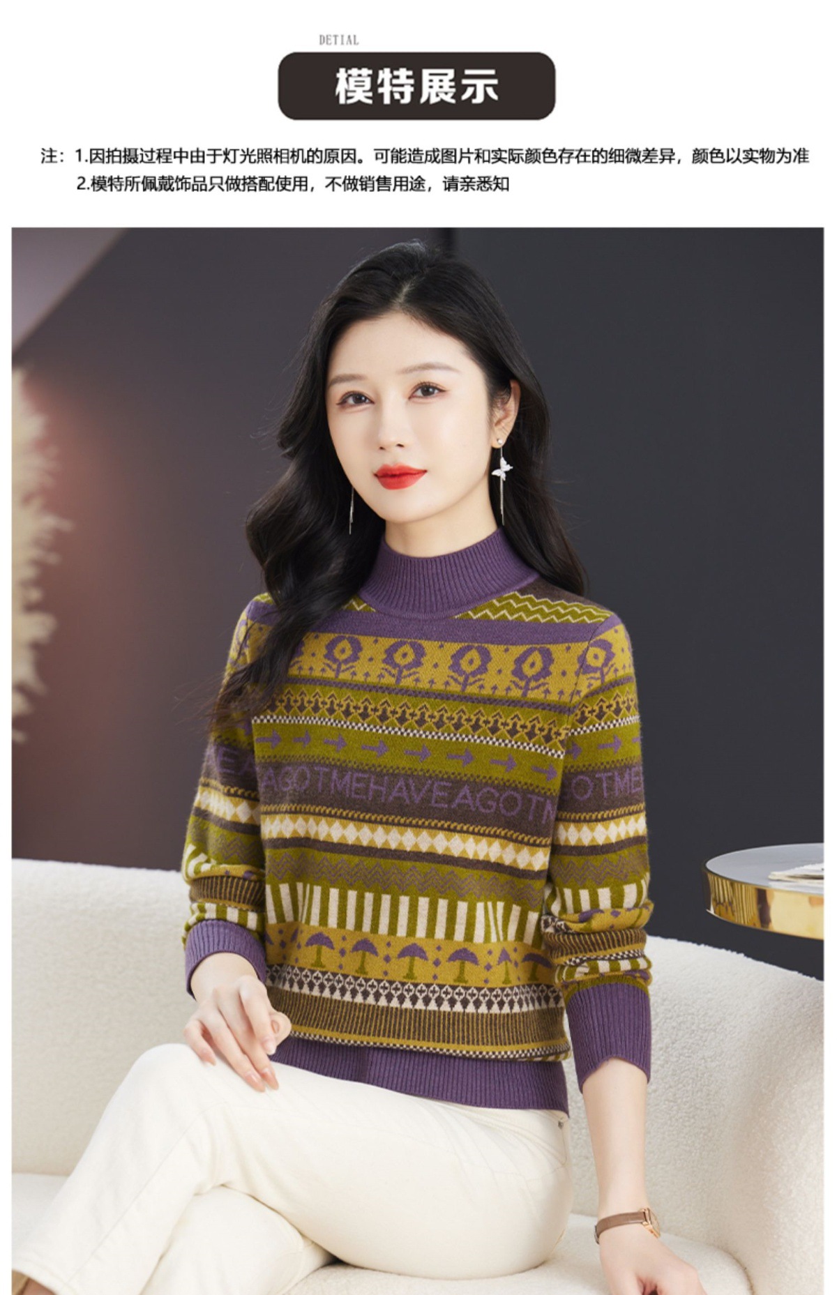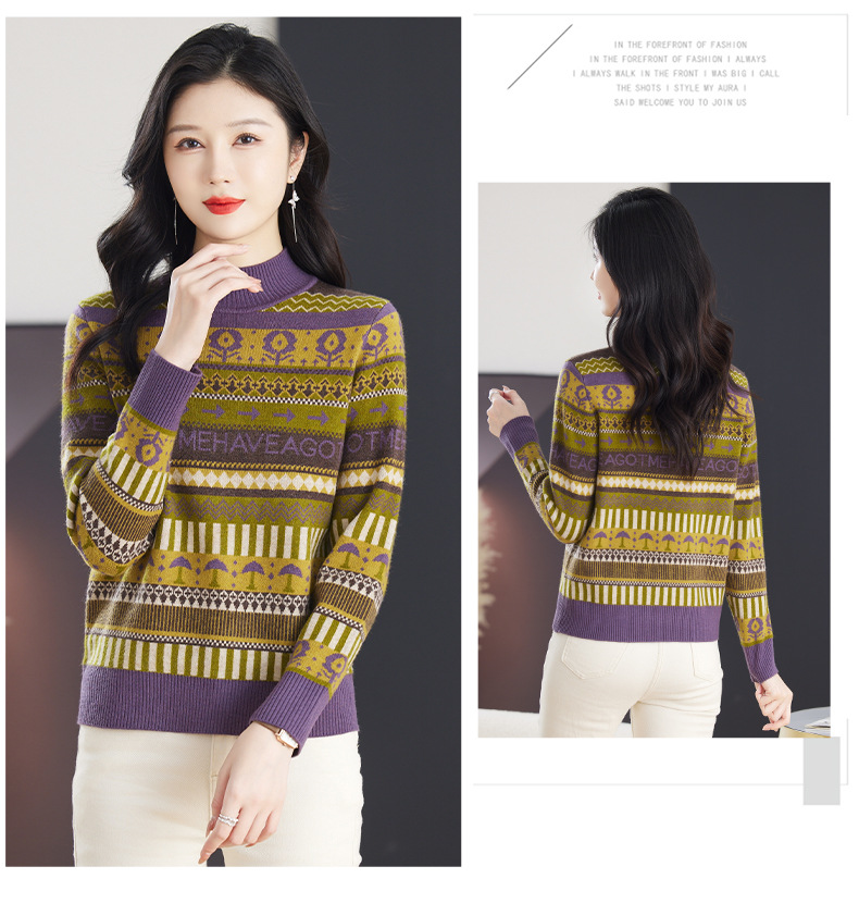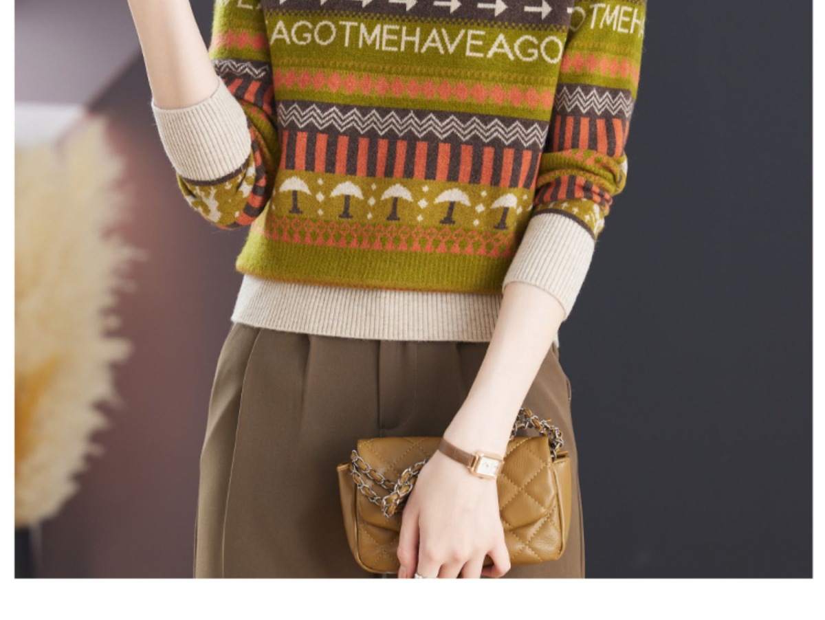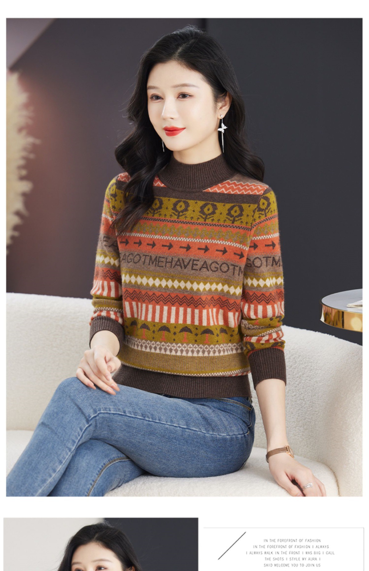 CC-103-79013今年流行的漂亮小衫高端欧货洋气上衣毛衣套头宽松提花针织打底衫