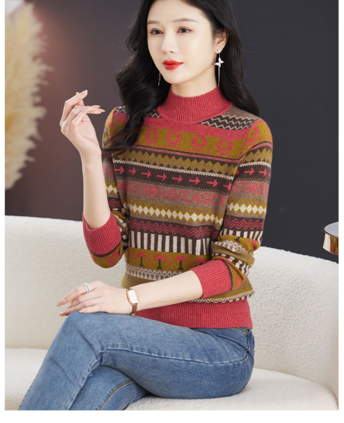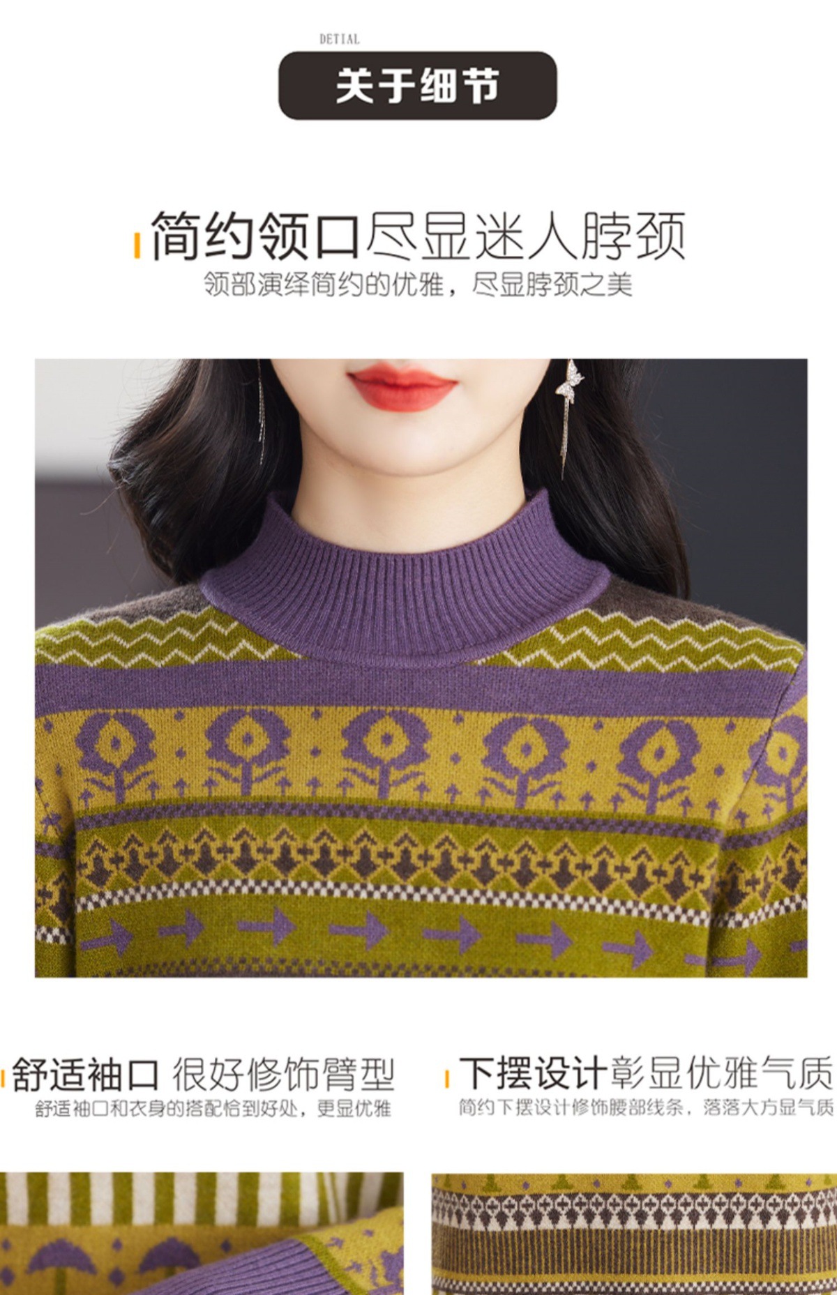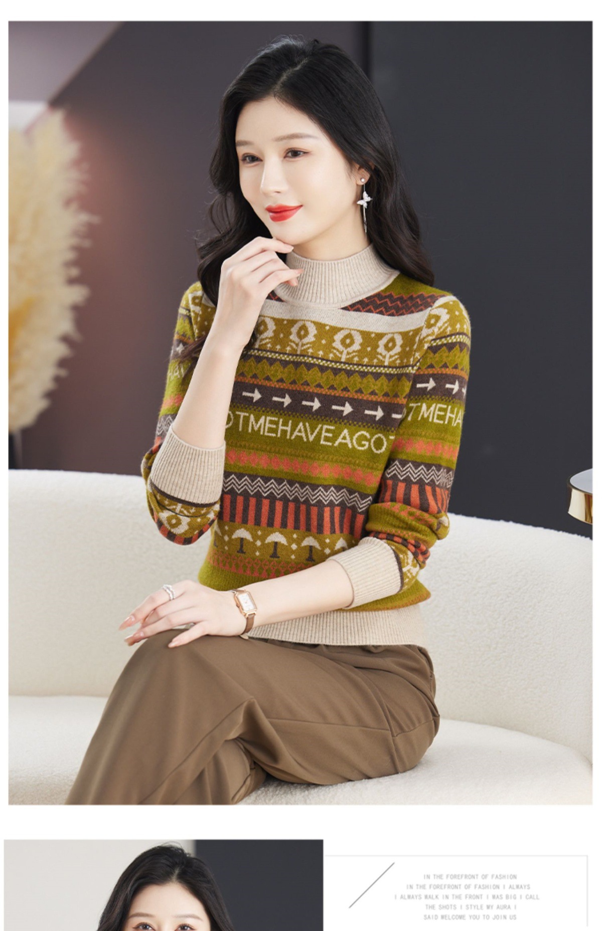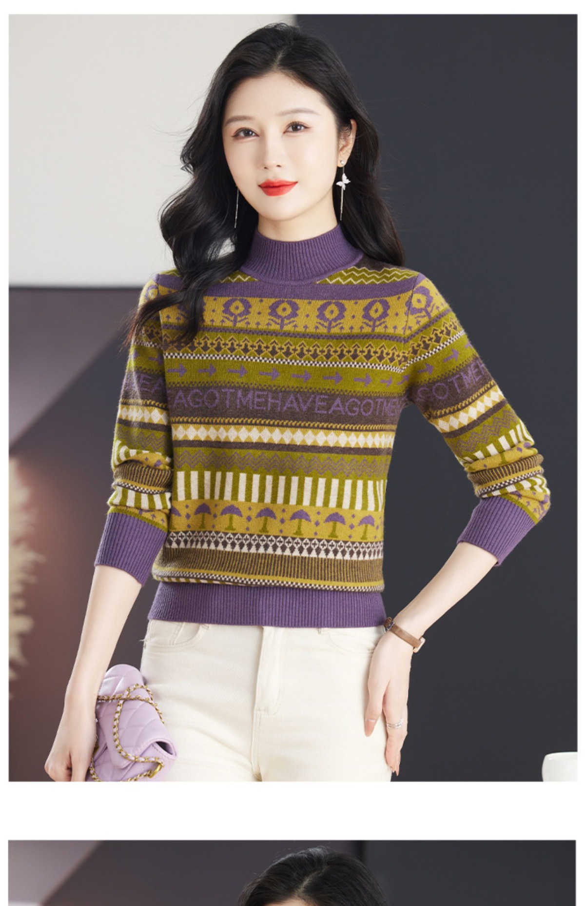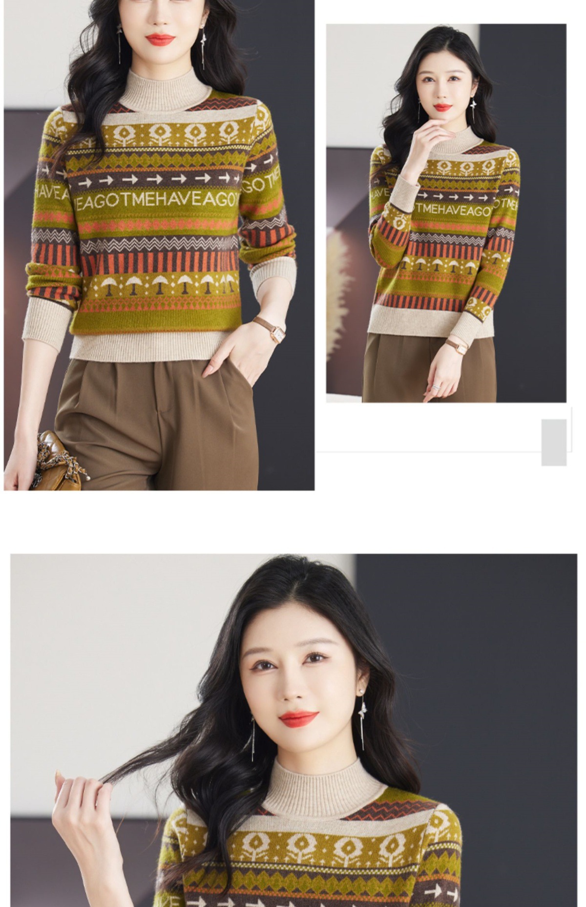 CC-103-79013今年流行的漂亮小衫高端欧货洋气上衣毛衣套头宽松提花针织打底衫