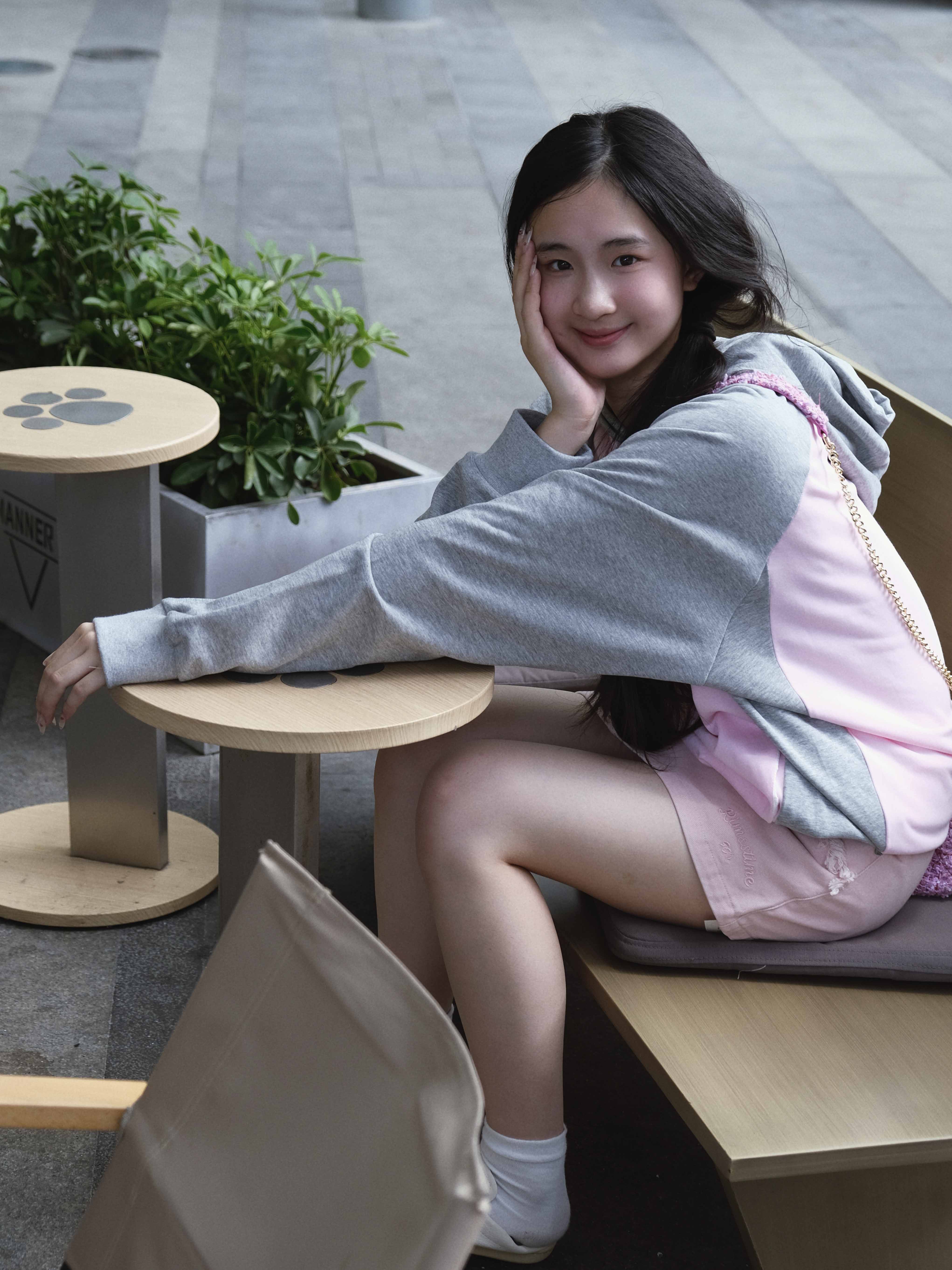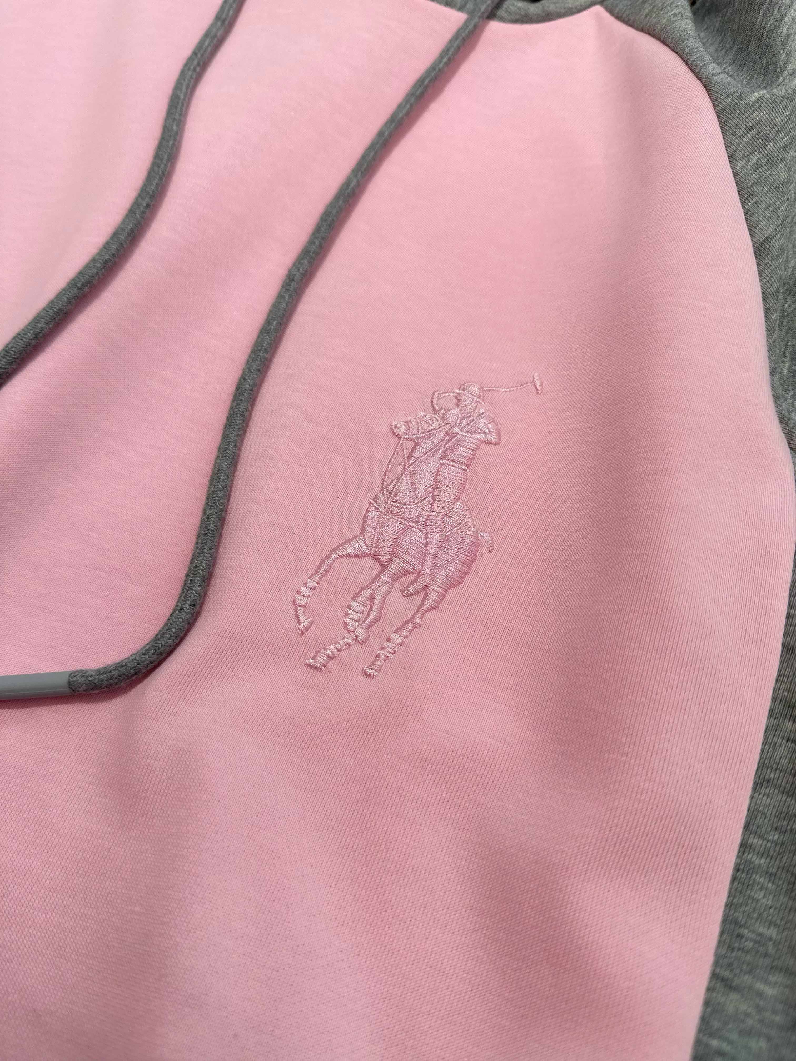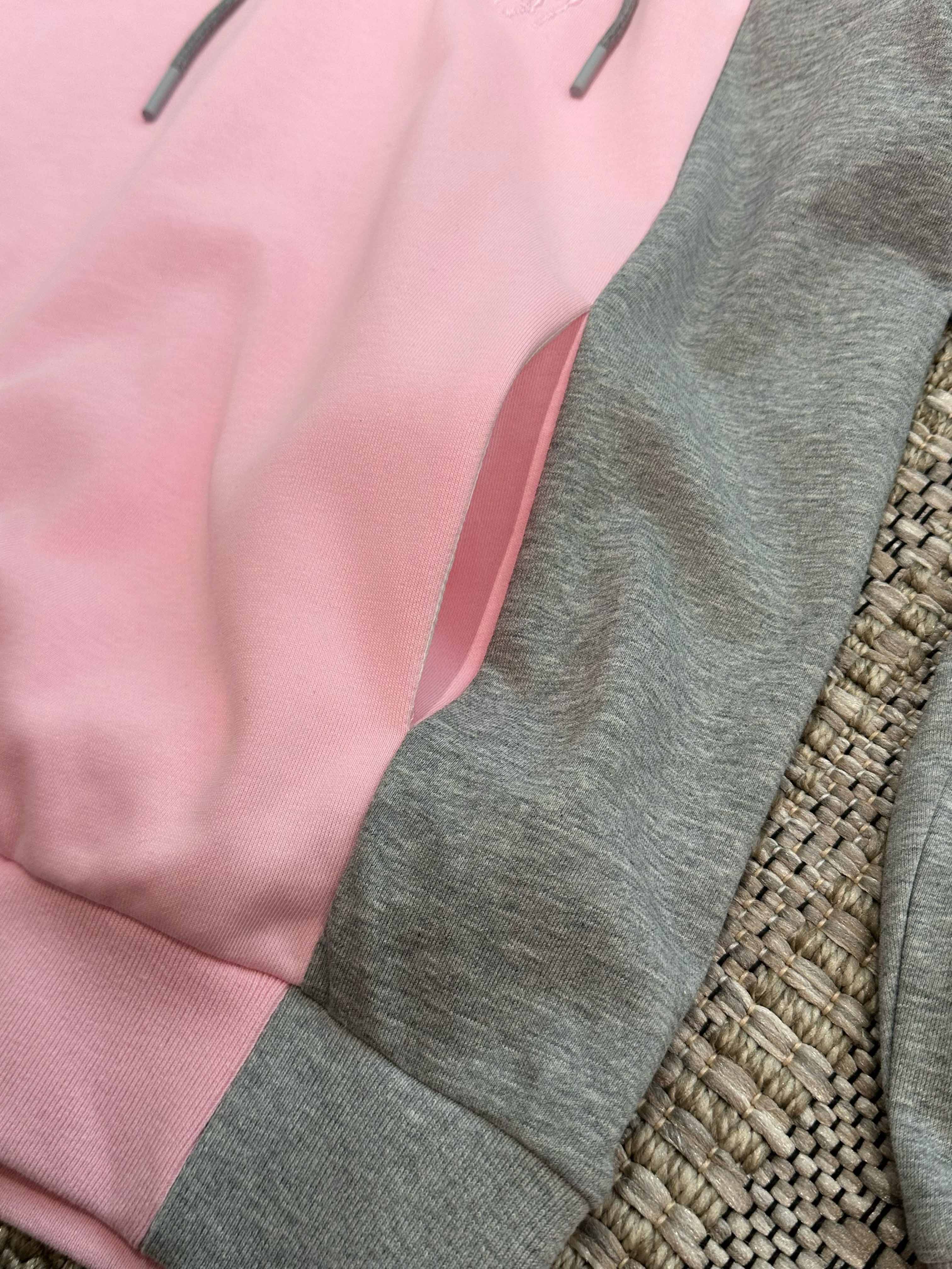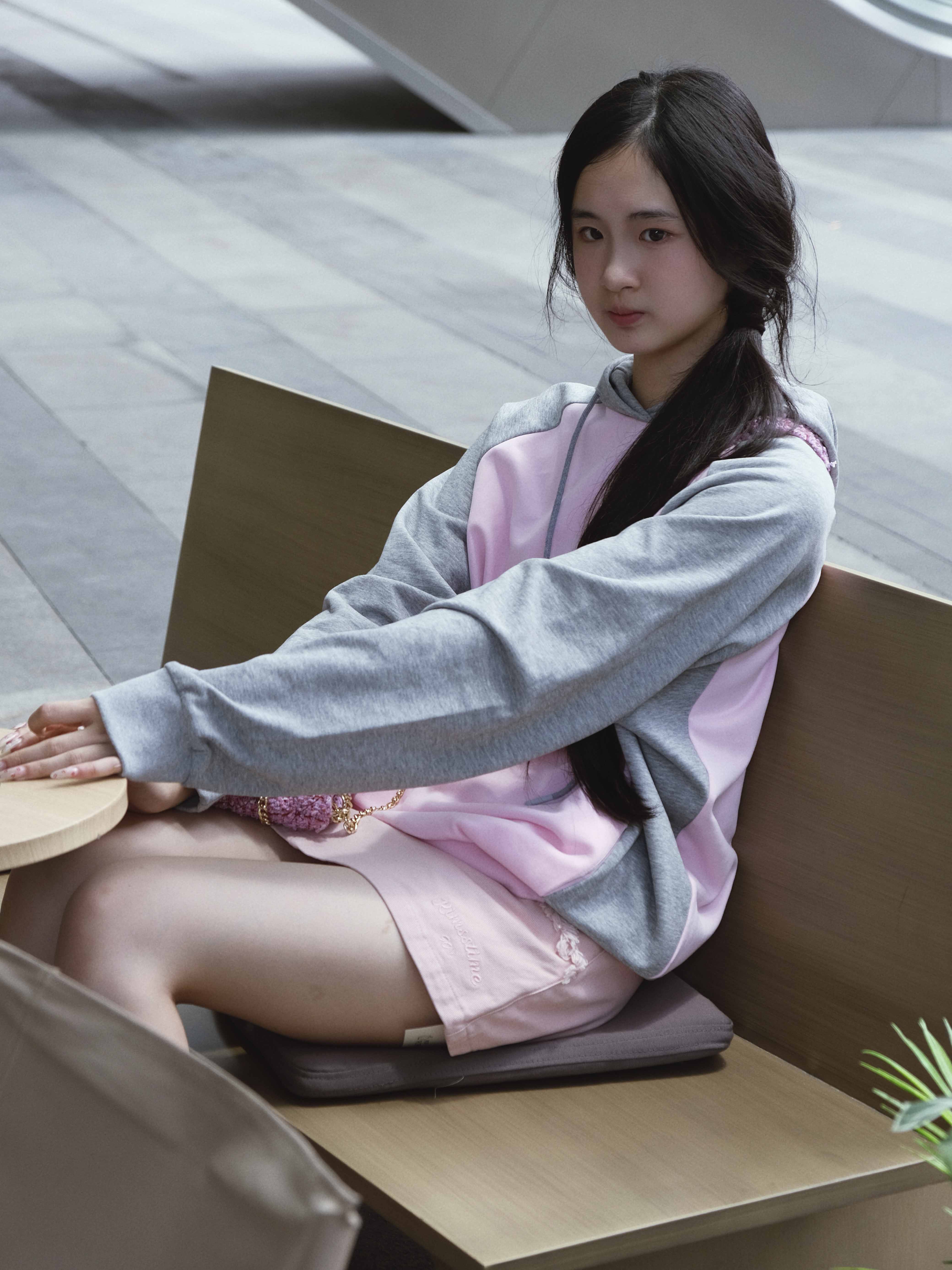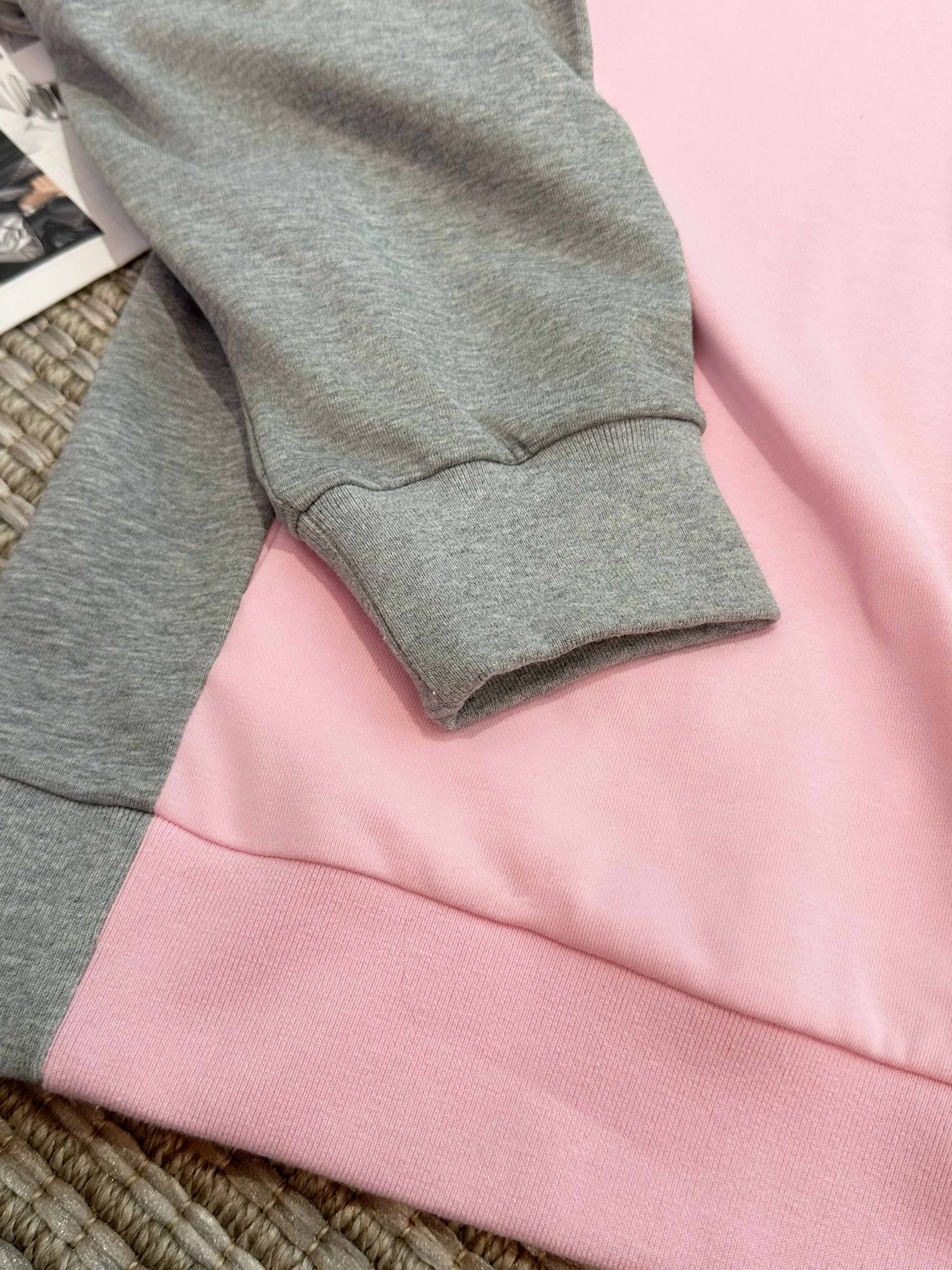 顺丰包邮33202洛诗琳粉花灰拼色绣花长款纯棉连帽卫衣女150278