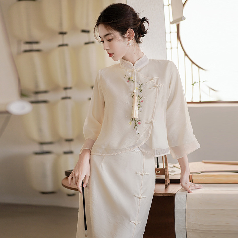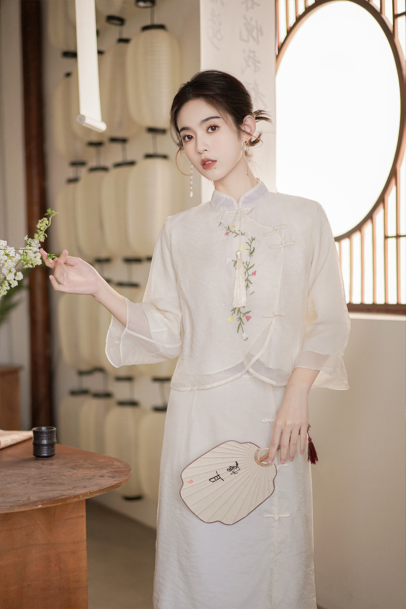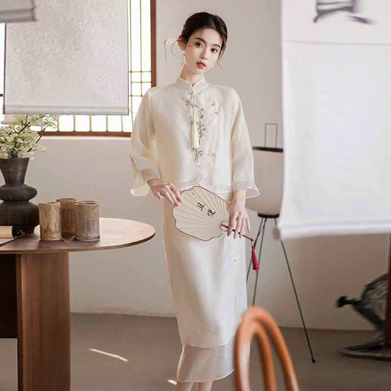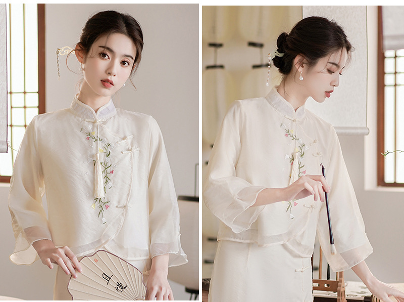 NRJ-110-8167新中式国风女装汉服改良版禅意穿搭汉元素古装上衣半身裙两件套