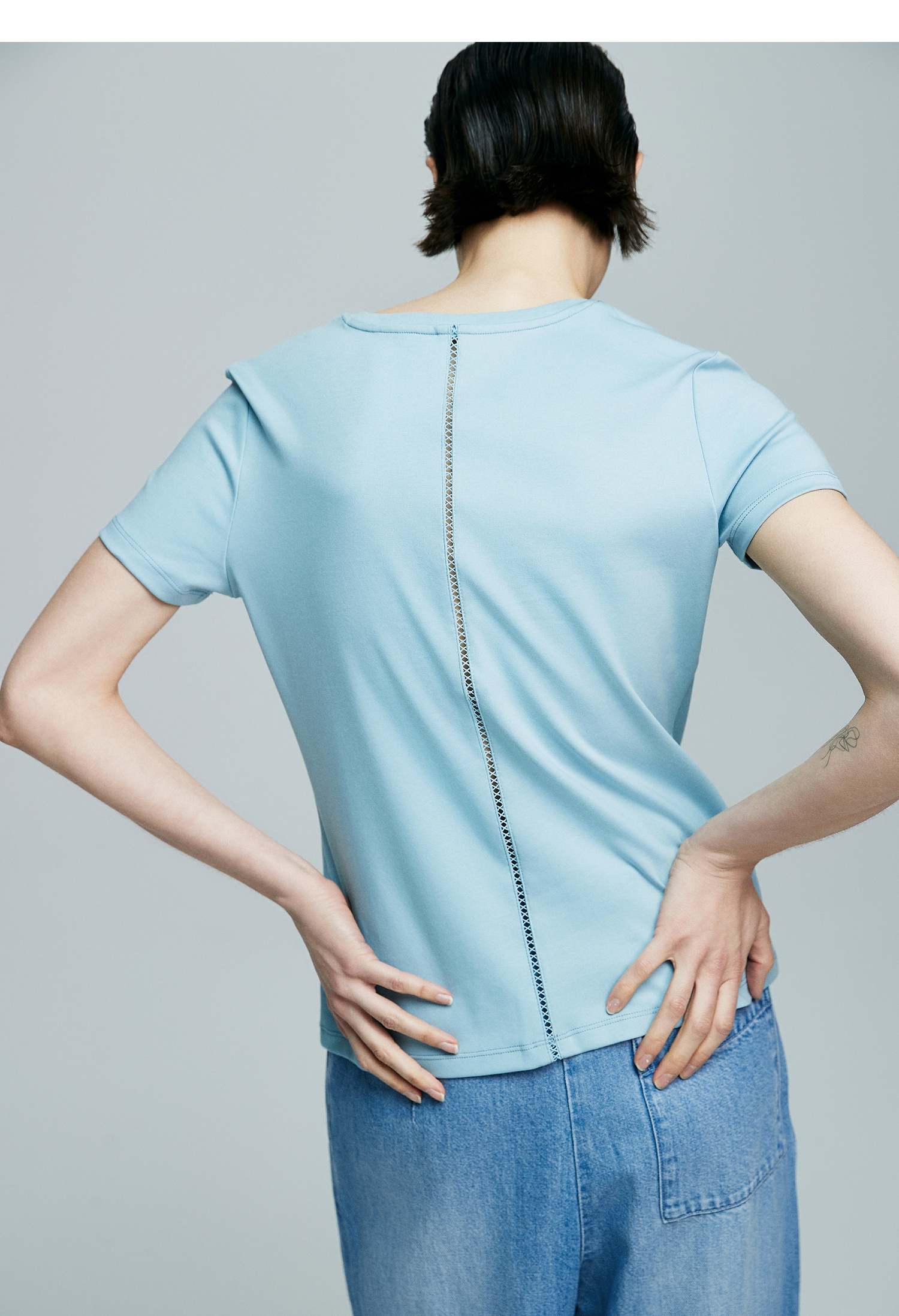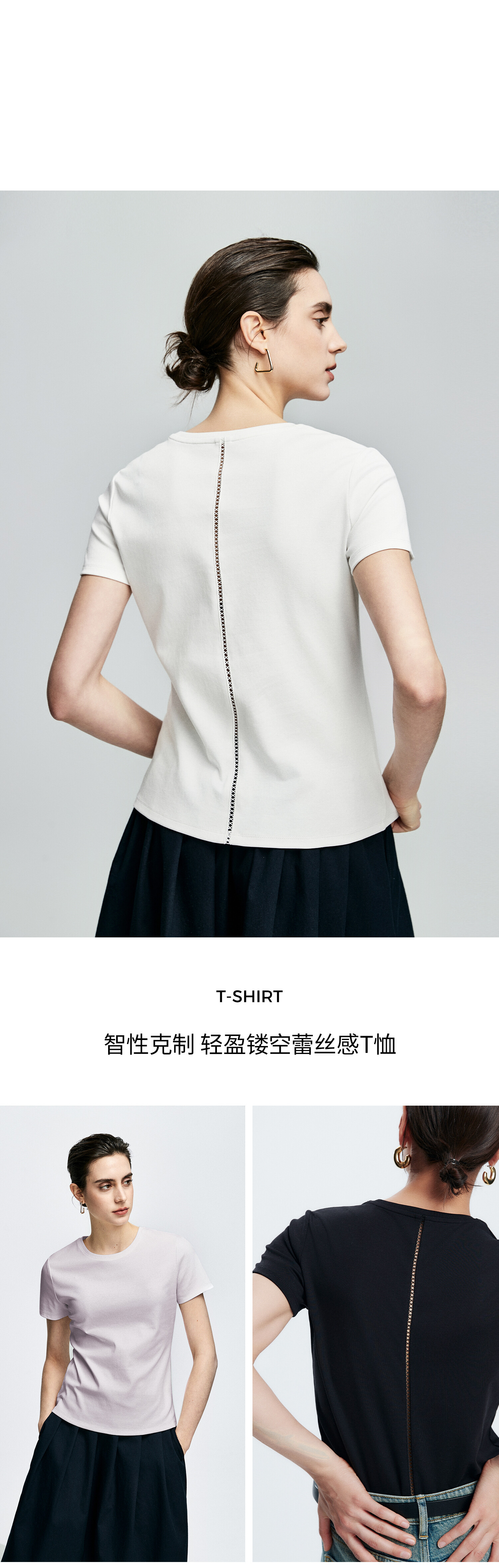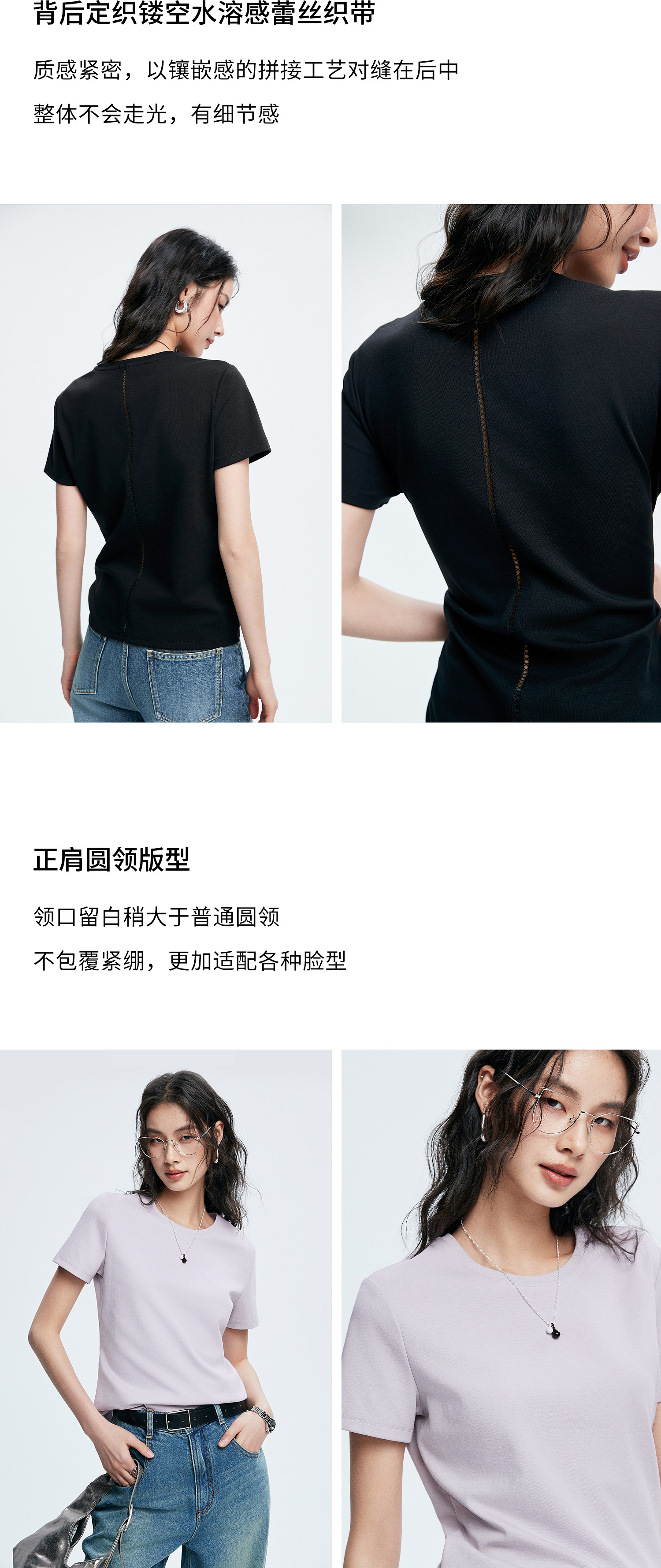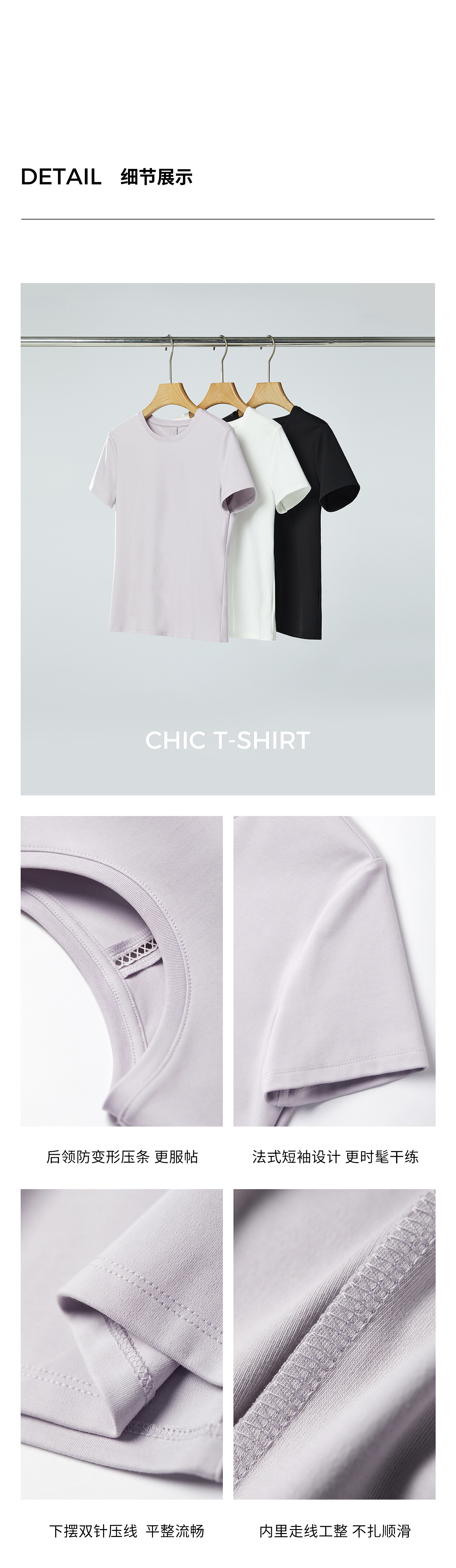 初棉正肩短袖T恤女后背花针设计362601002