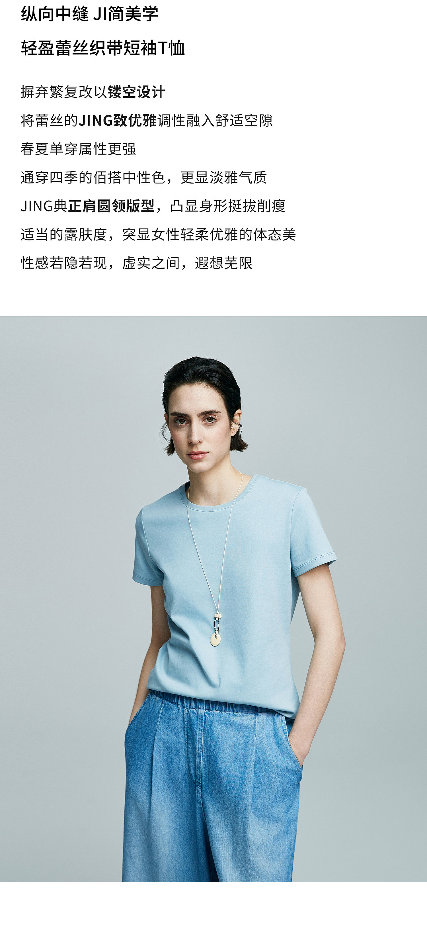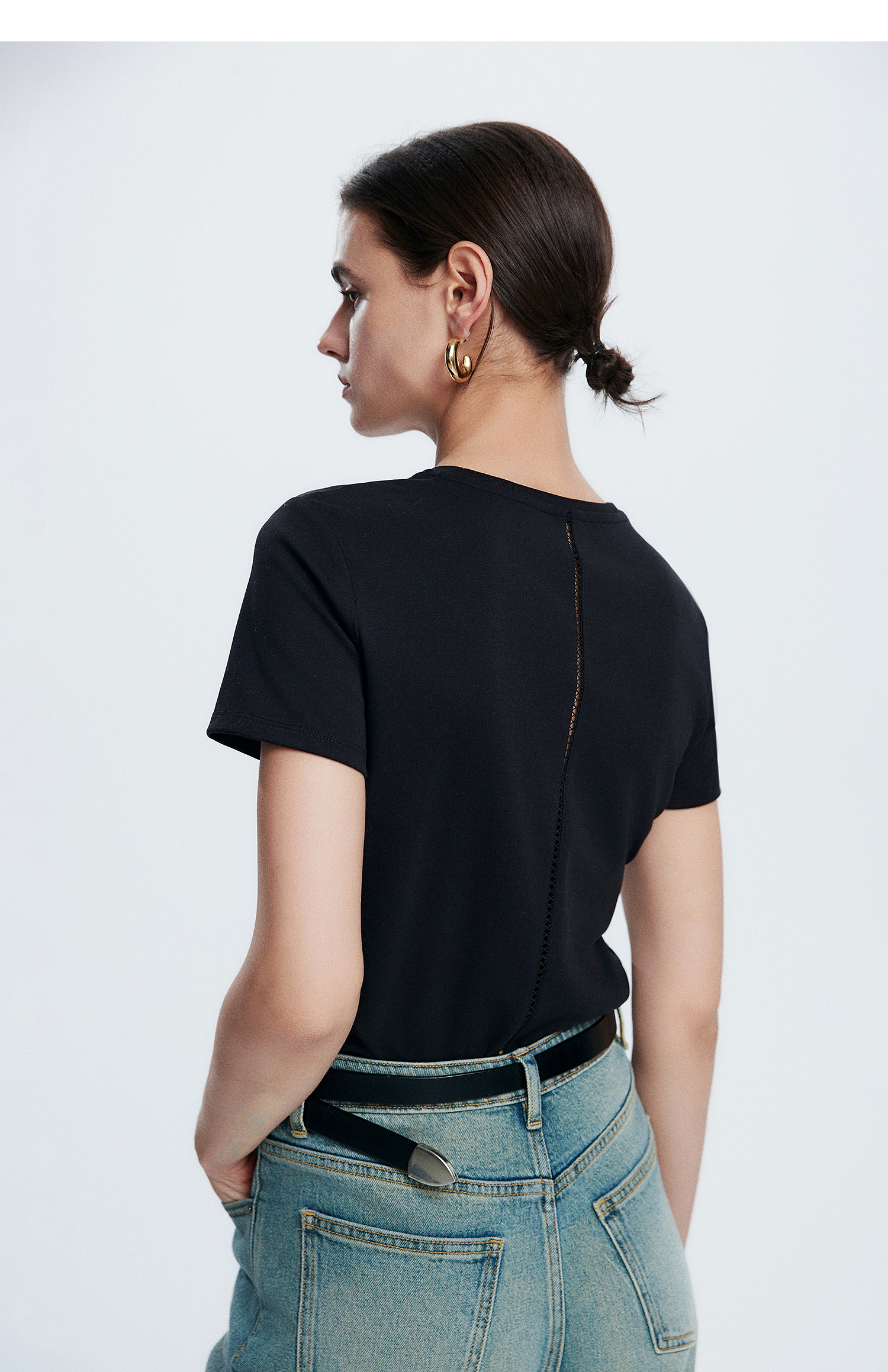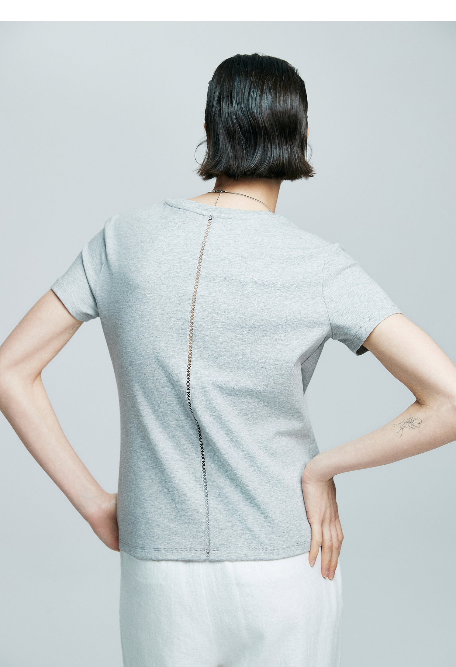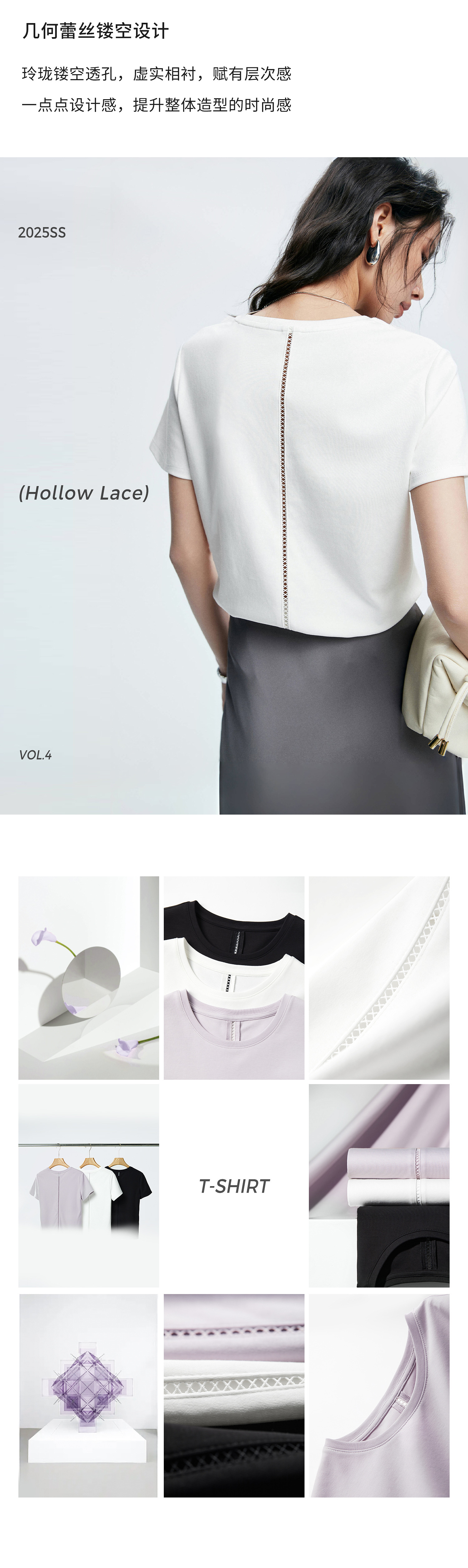 初棉正肩短袖T恤女后背花针设计362601002