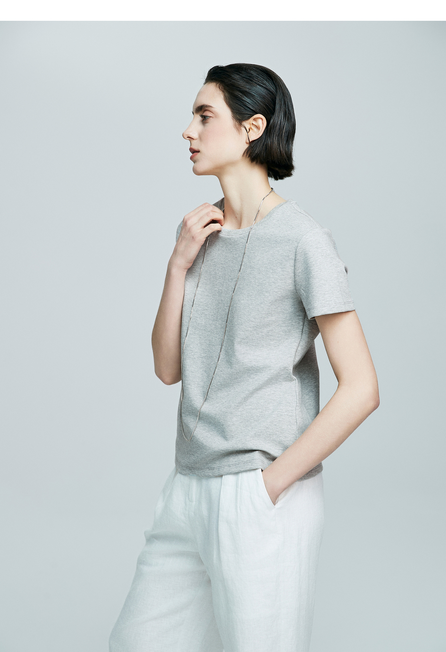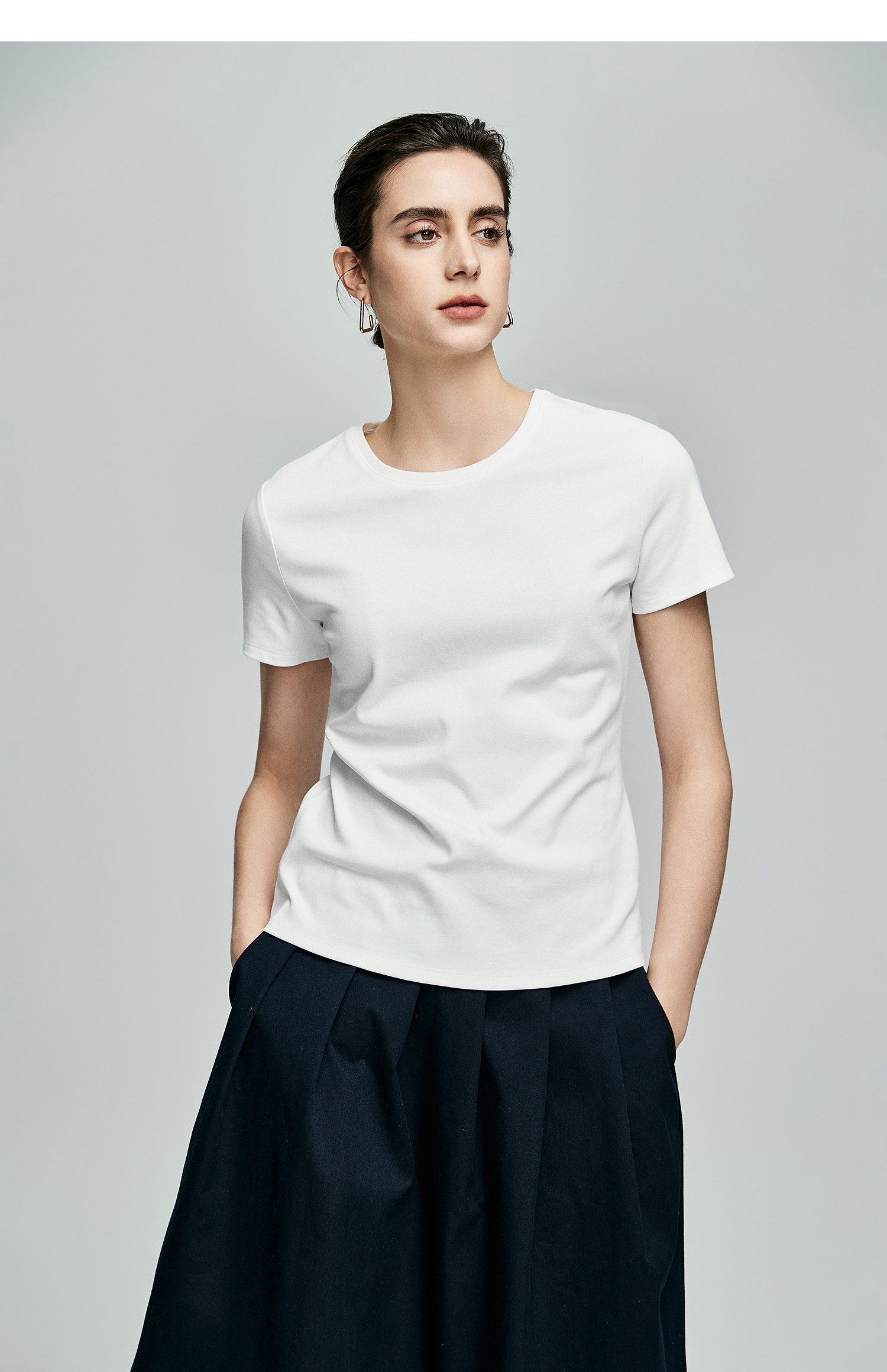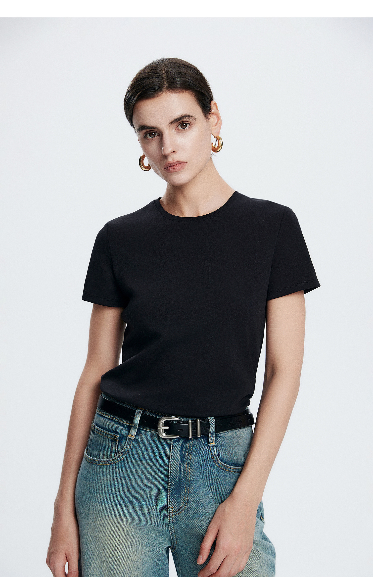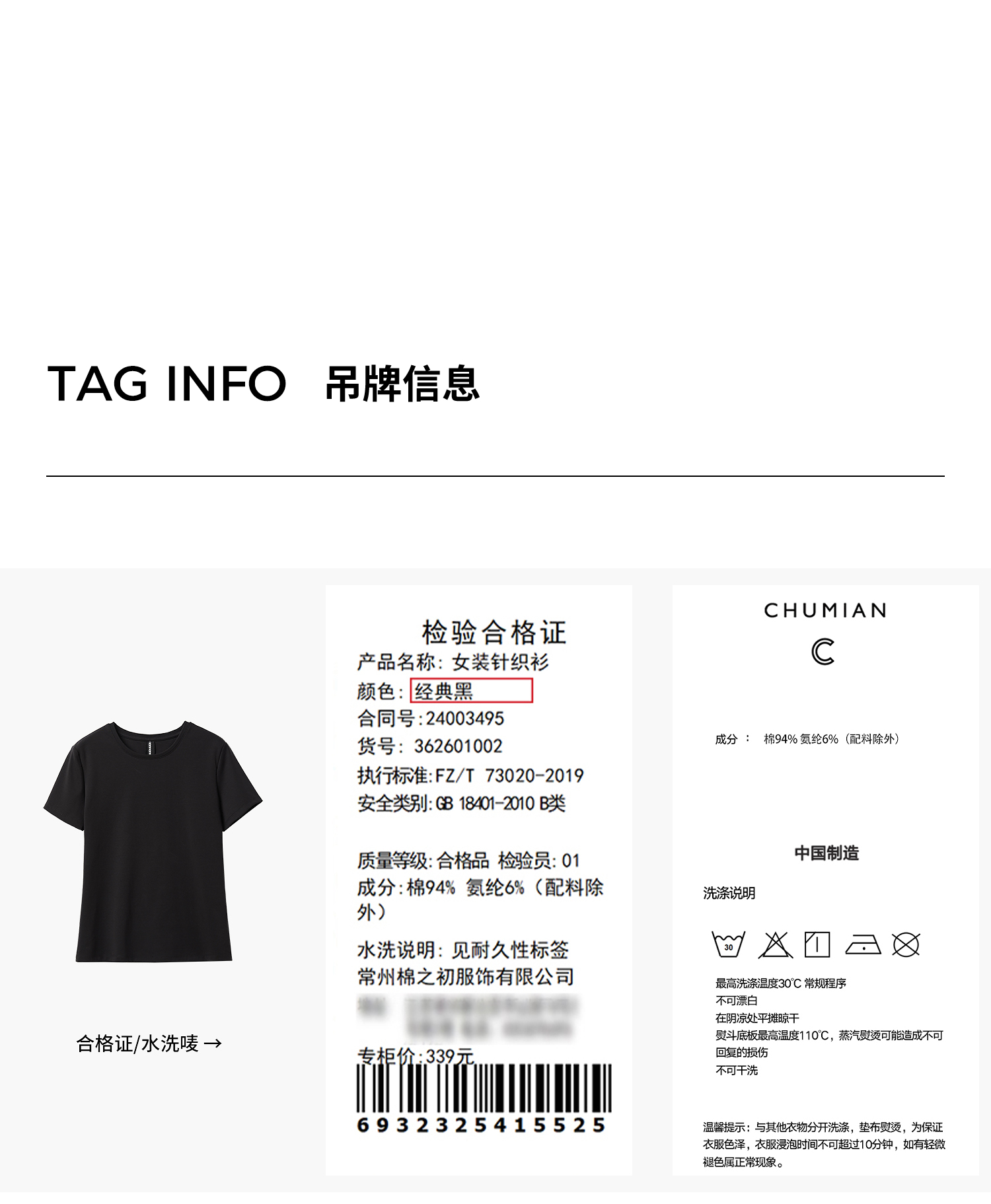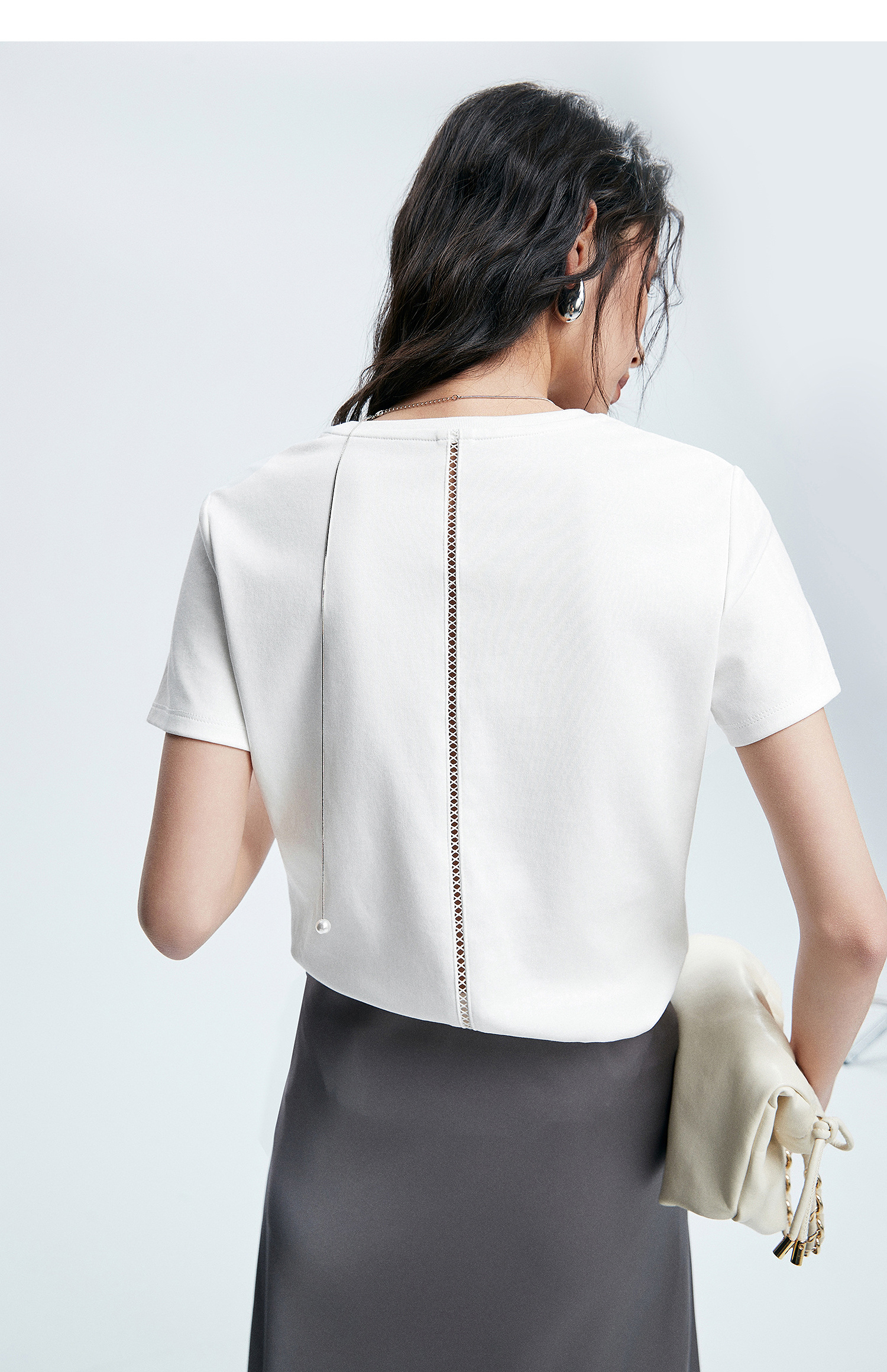 初棉正肩短袖T恤女后背花针设计362601002